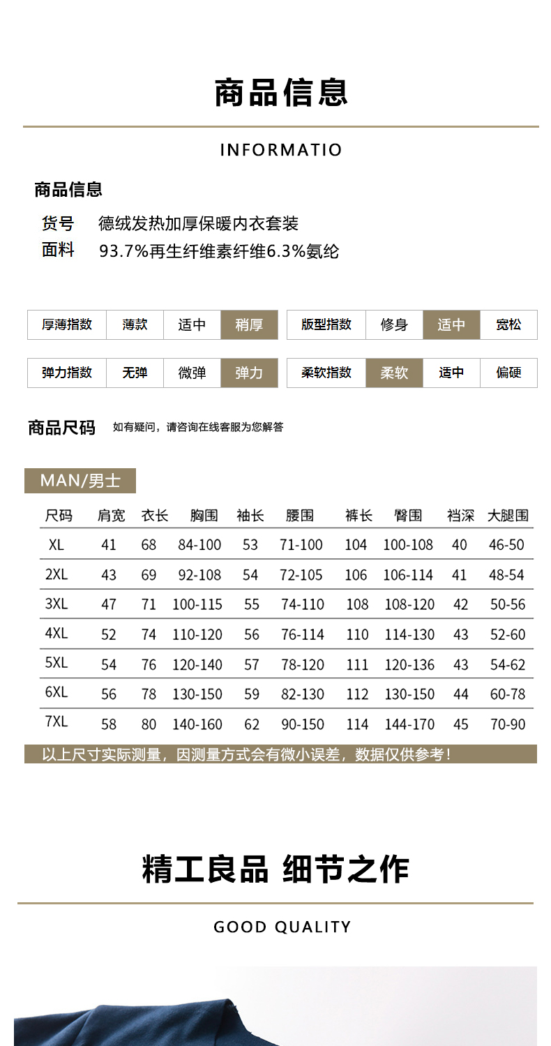 【德绒保暖套装】大依优型大码男装保暖内衣套装加肥加大号宽松肥佬德绒无痕秋衣秋裤