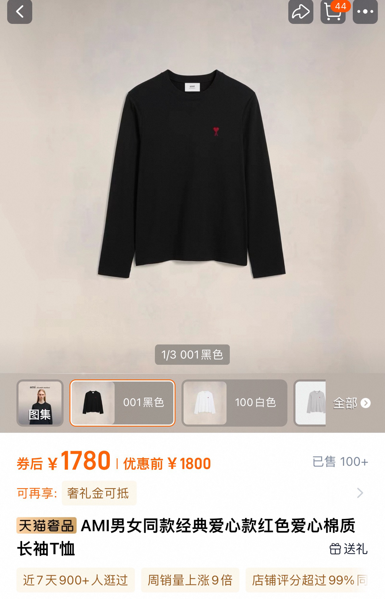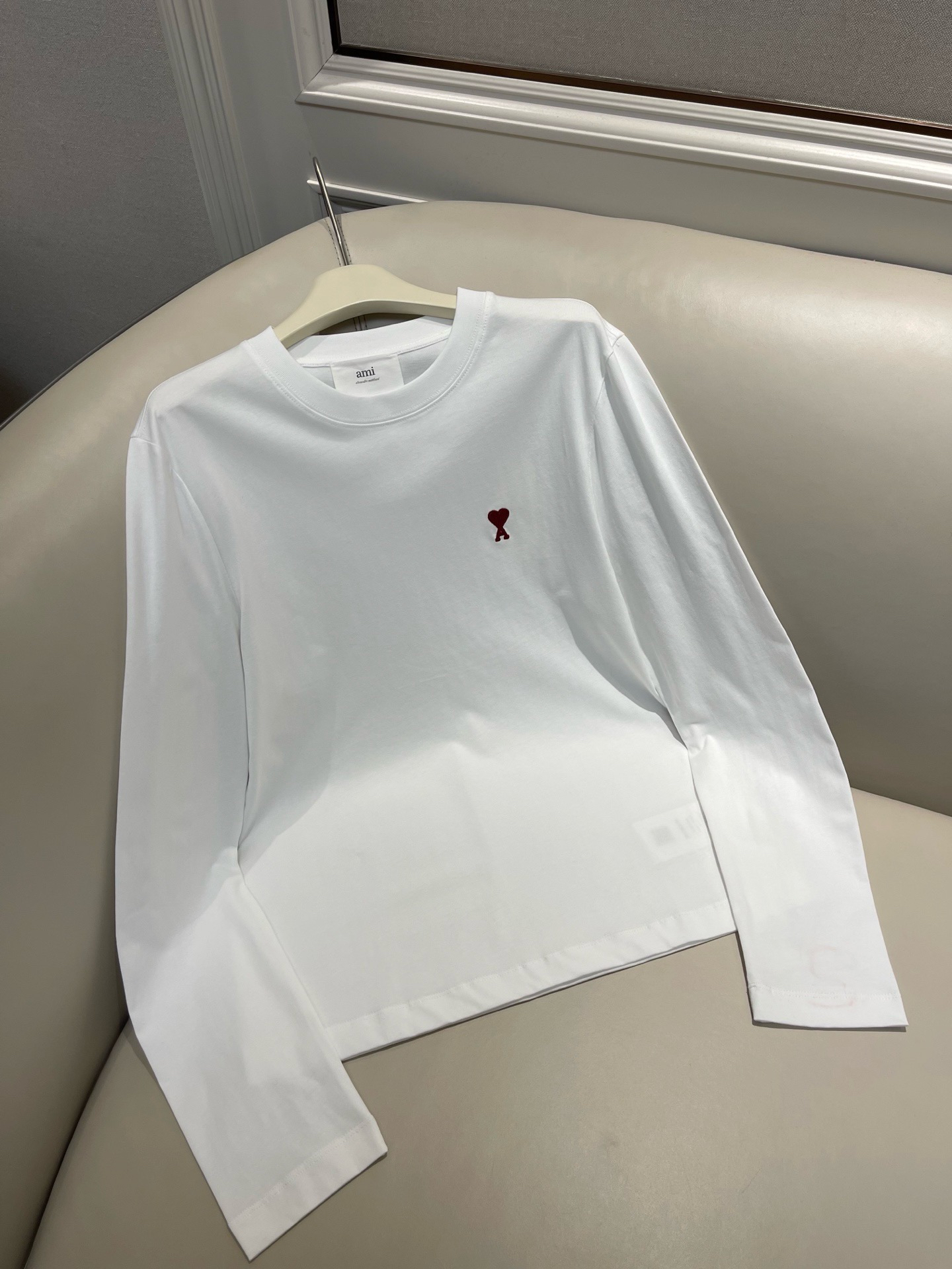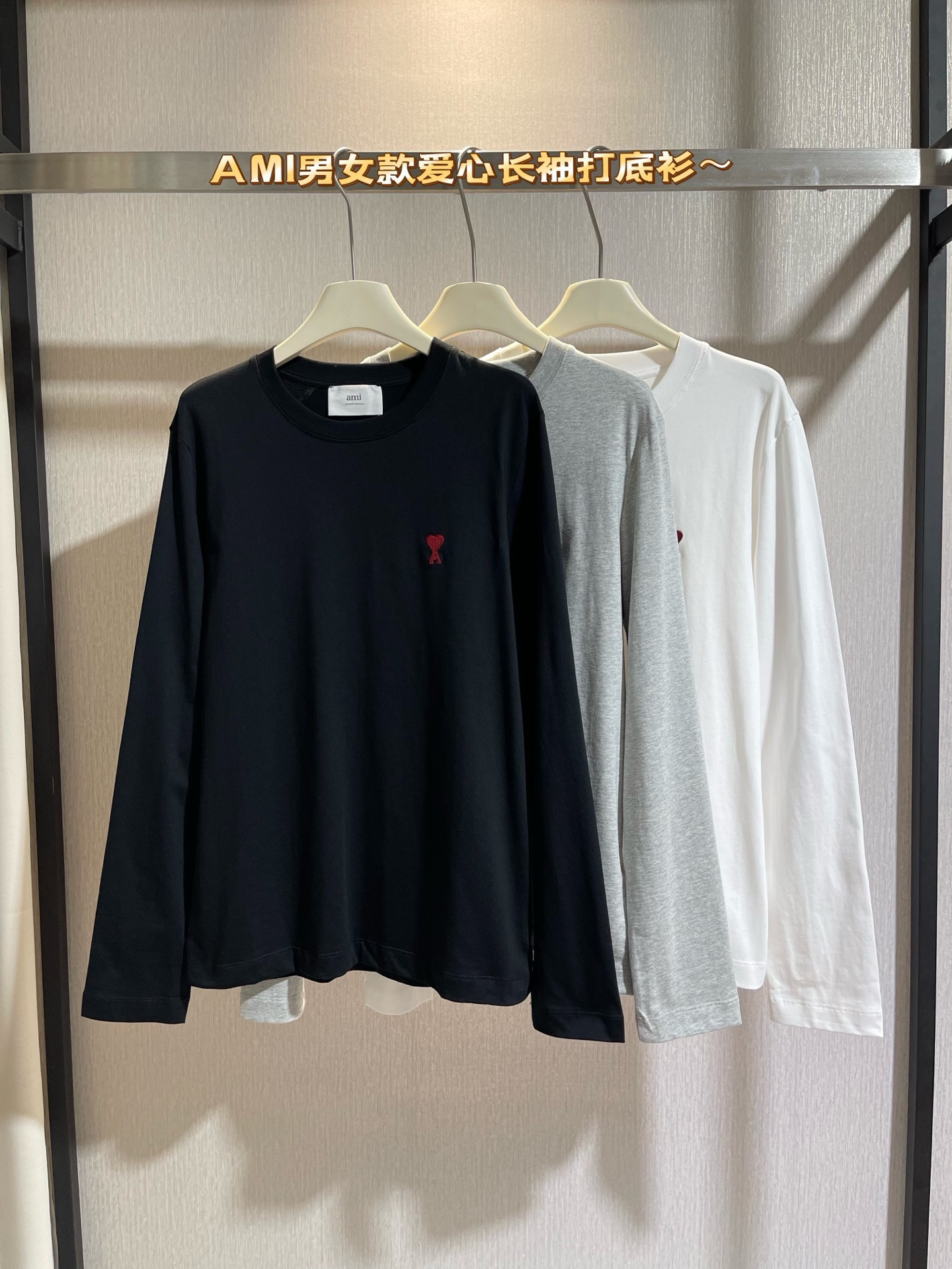 国内代工厂回货 极致性价比 AM*男女款刺绣爱心长袖打底衫~官网在售1800 同步三色 标牌齐全 推荐自留 可直接送人!