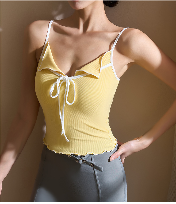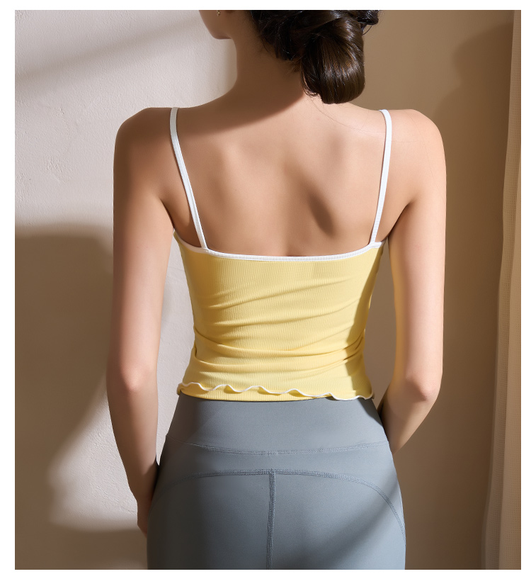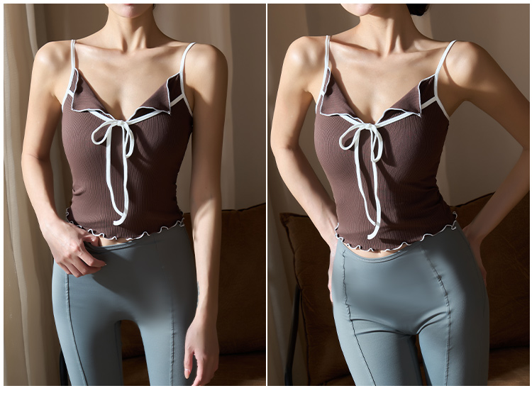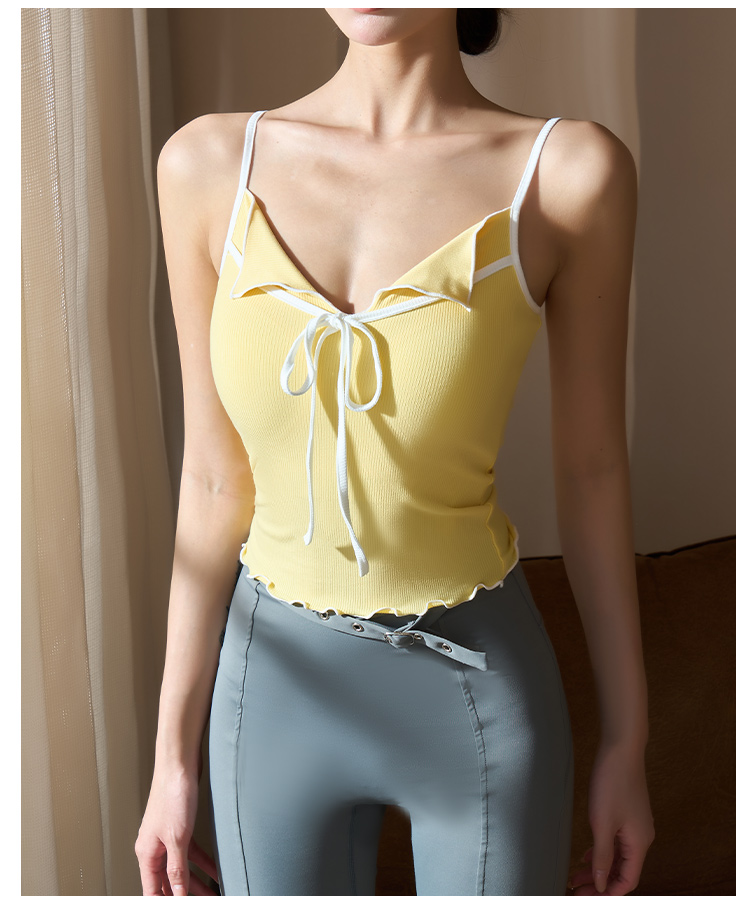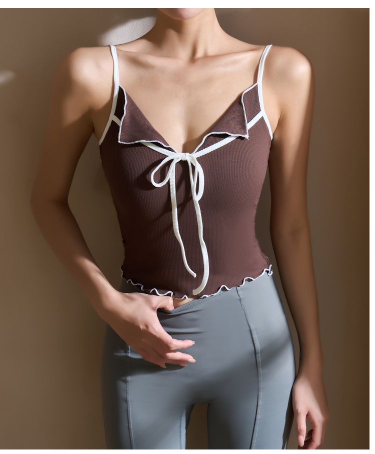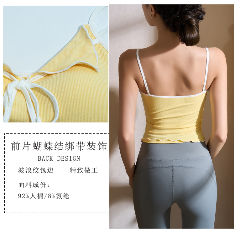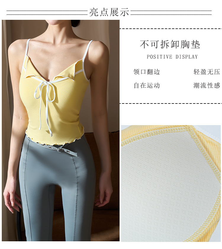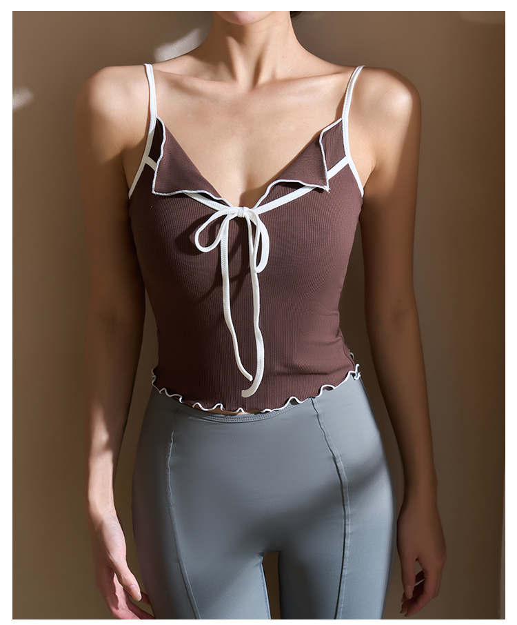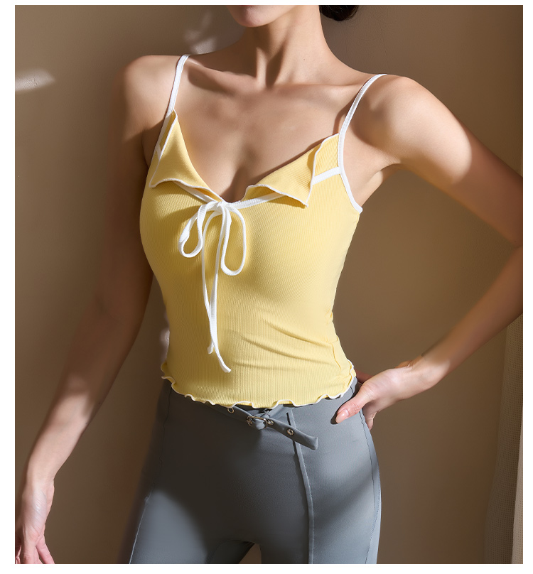 跃牌【美西西系列】2025甜美木耳边蝴蝶结系带运动背心翻领吊带瑜伽服女WX-520