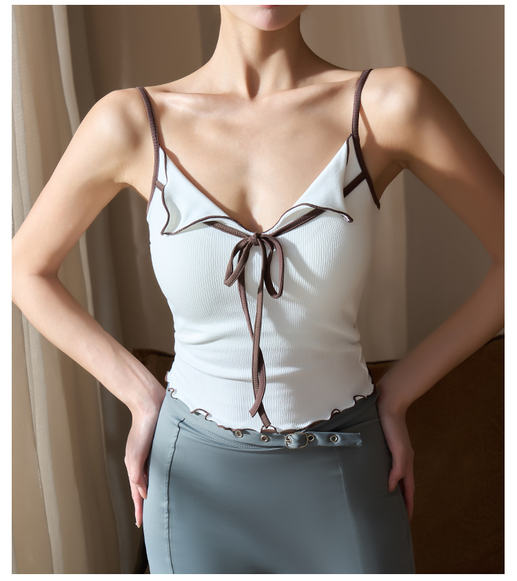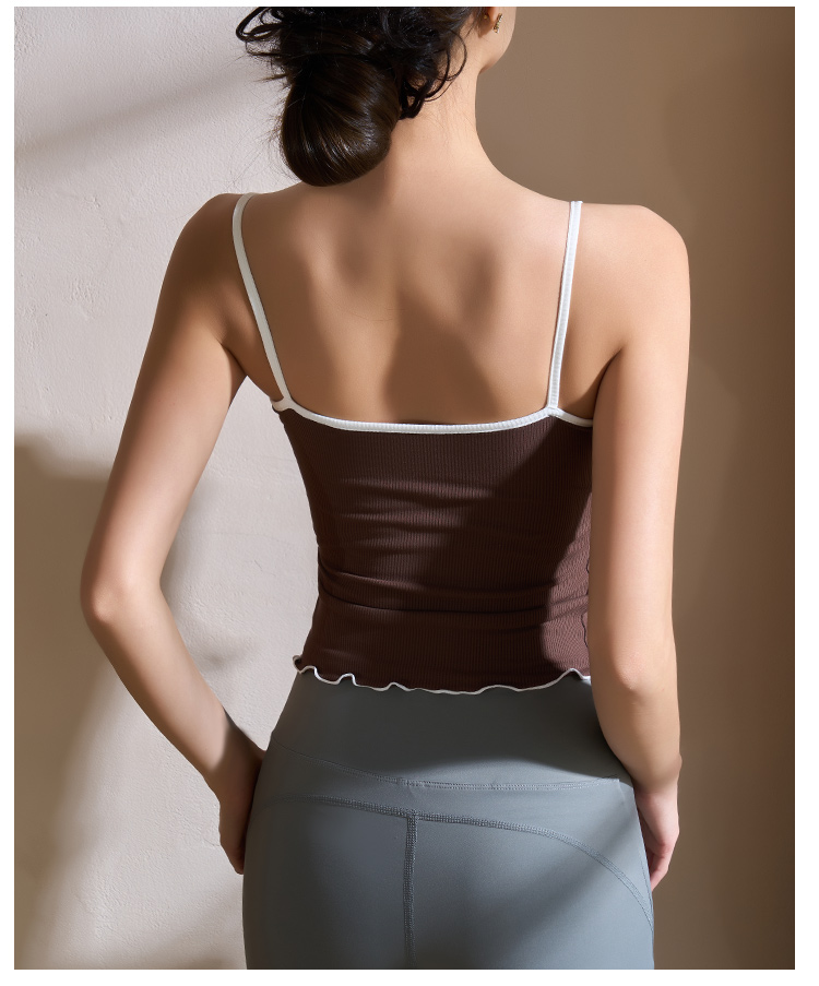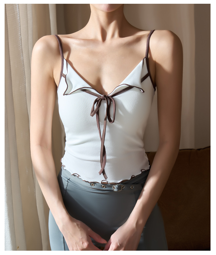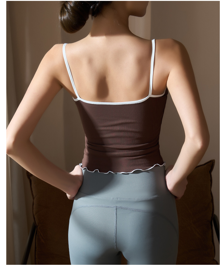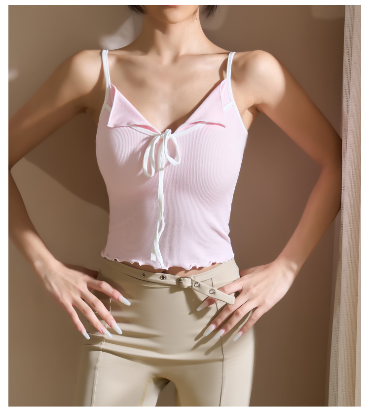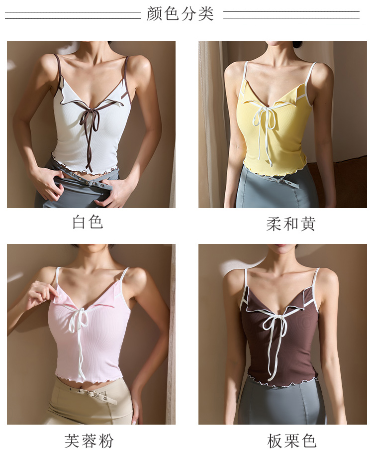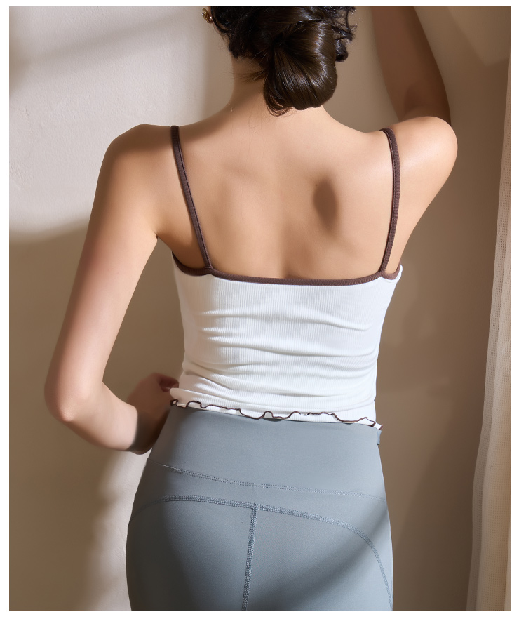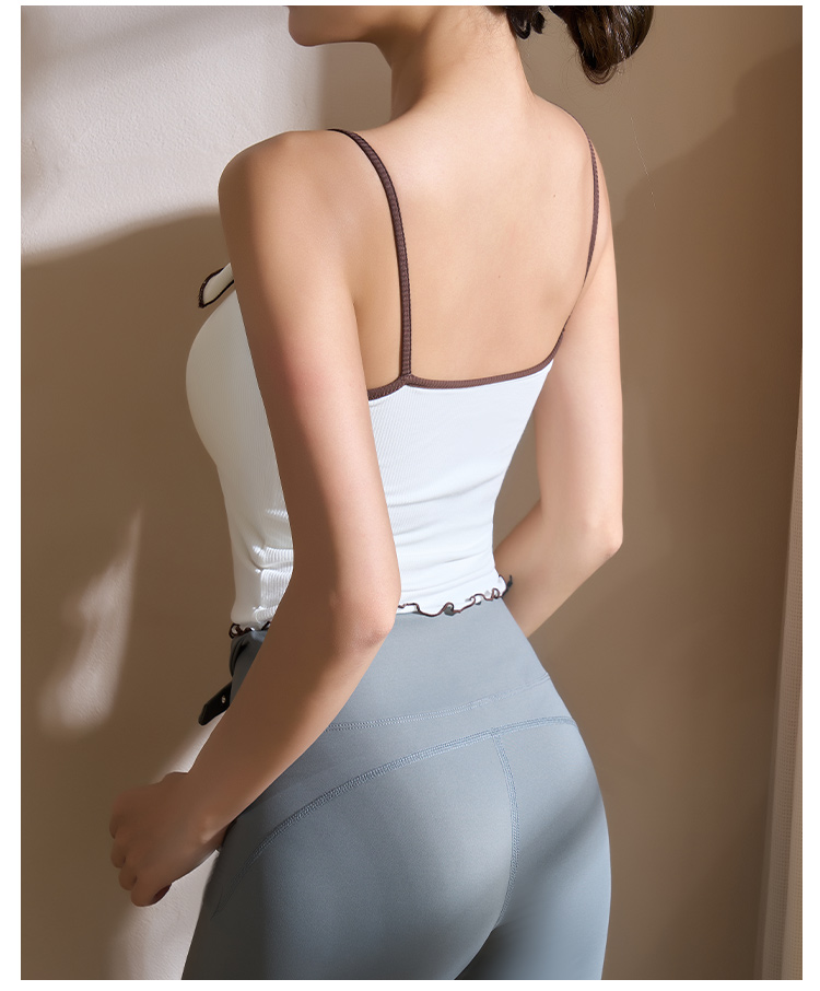 跃牌【美西西系列】2025甜美木耳边蝴蝶结系带运动背心翻领吊带瑜伽服女WX-520