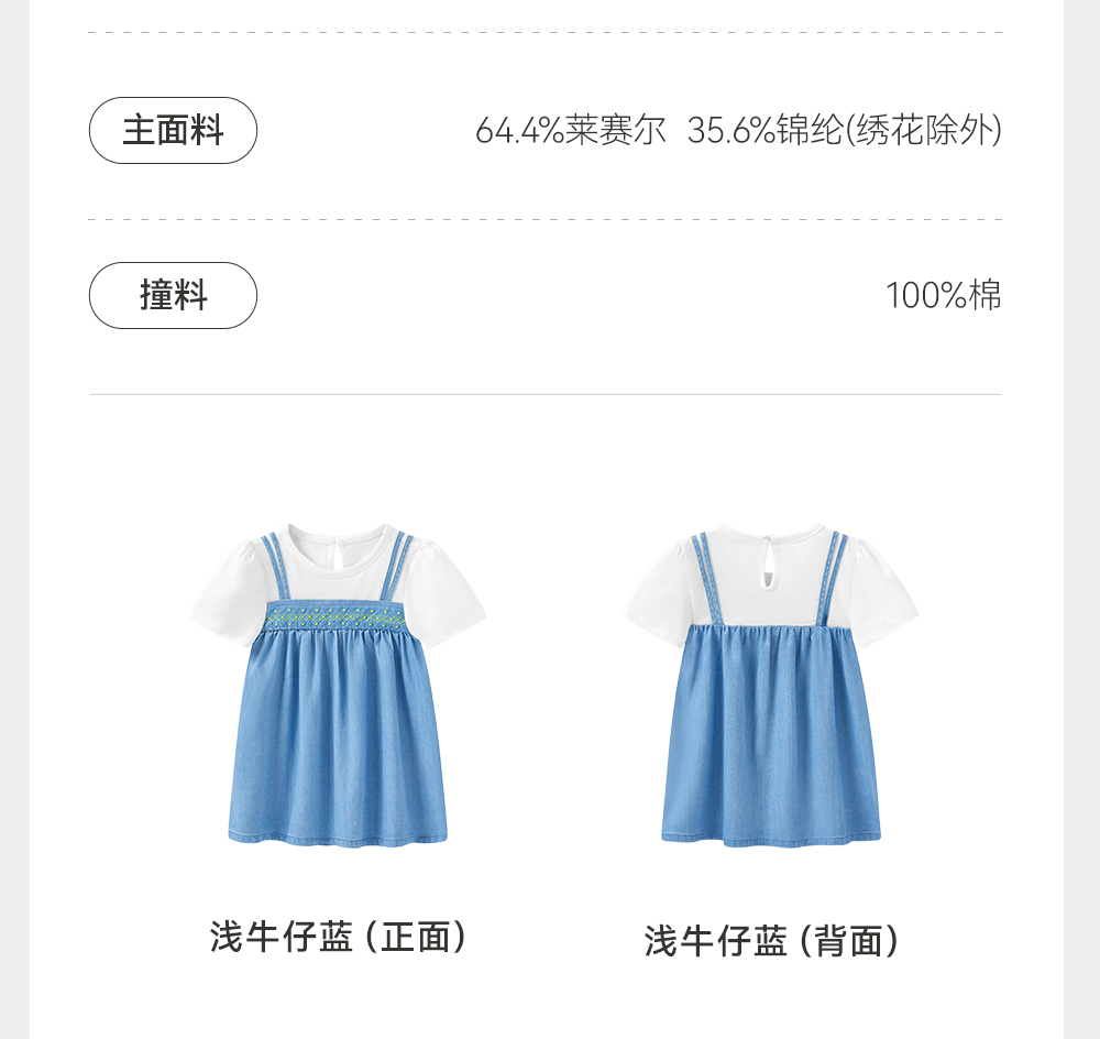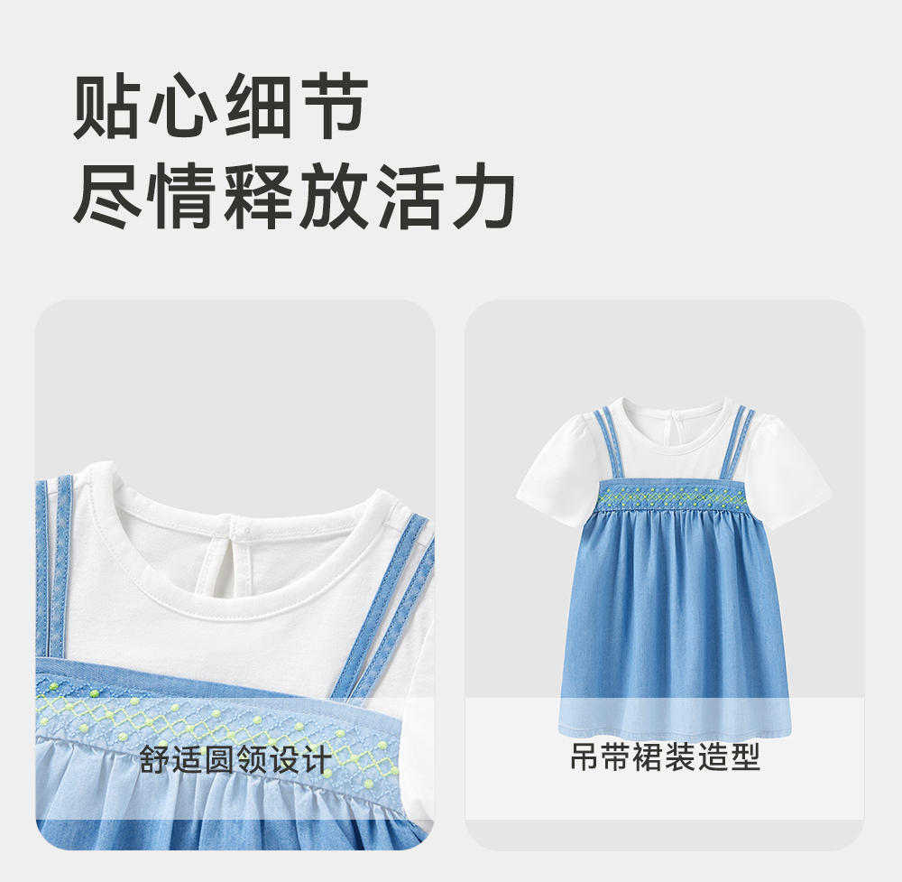【商场同款】英氏童装裙子春夏短袖透气女童可爱连衣裙新款