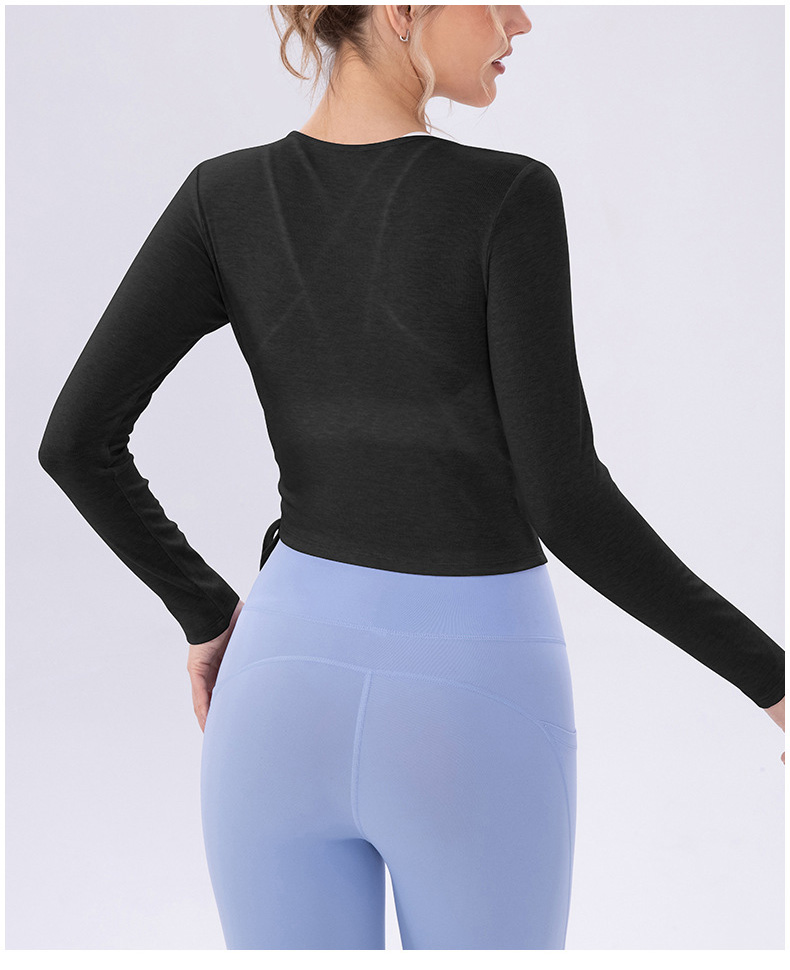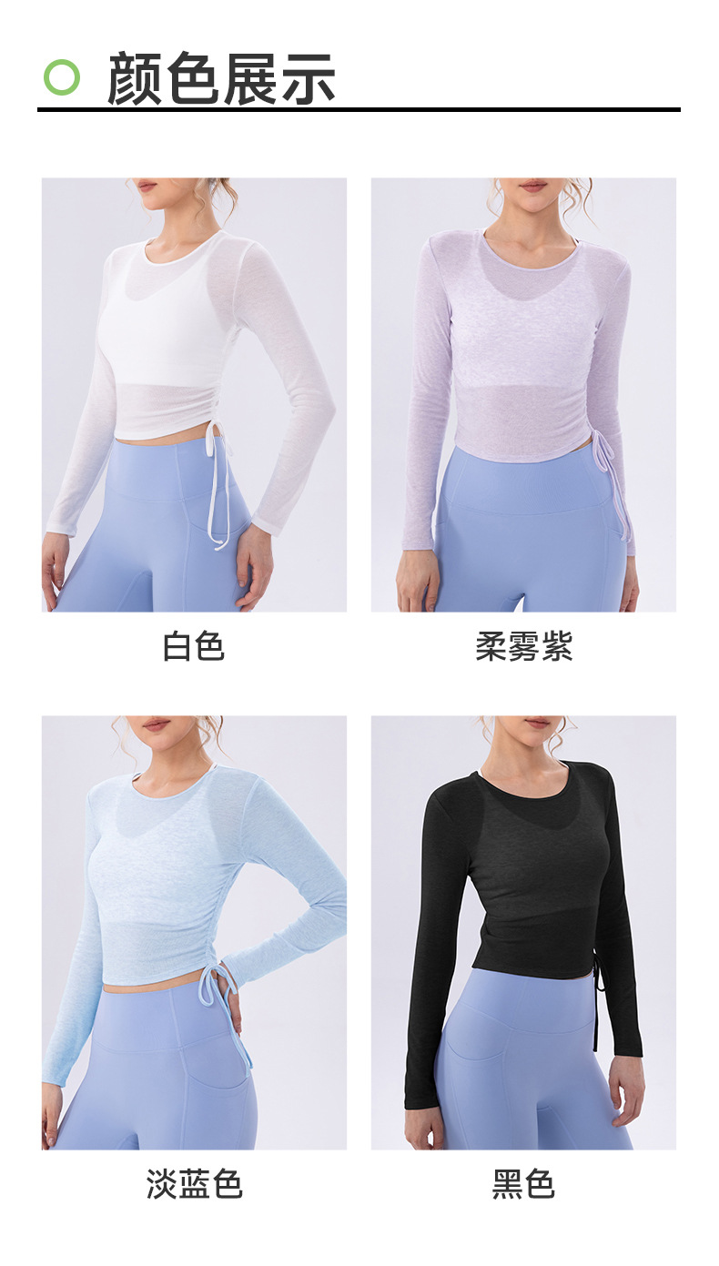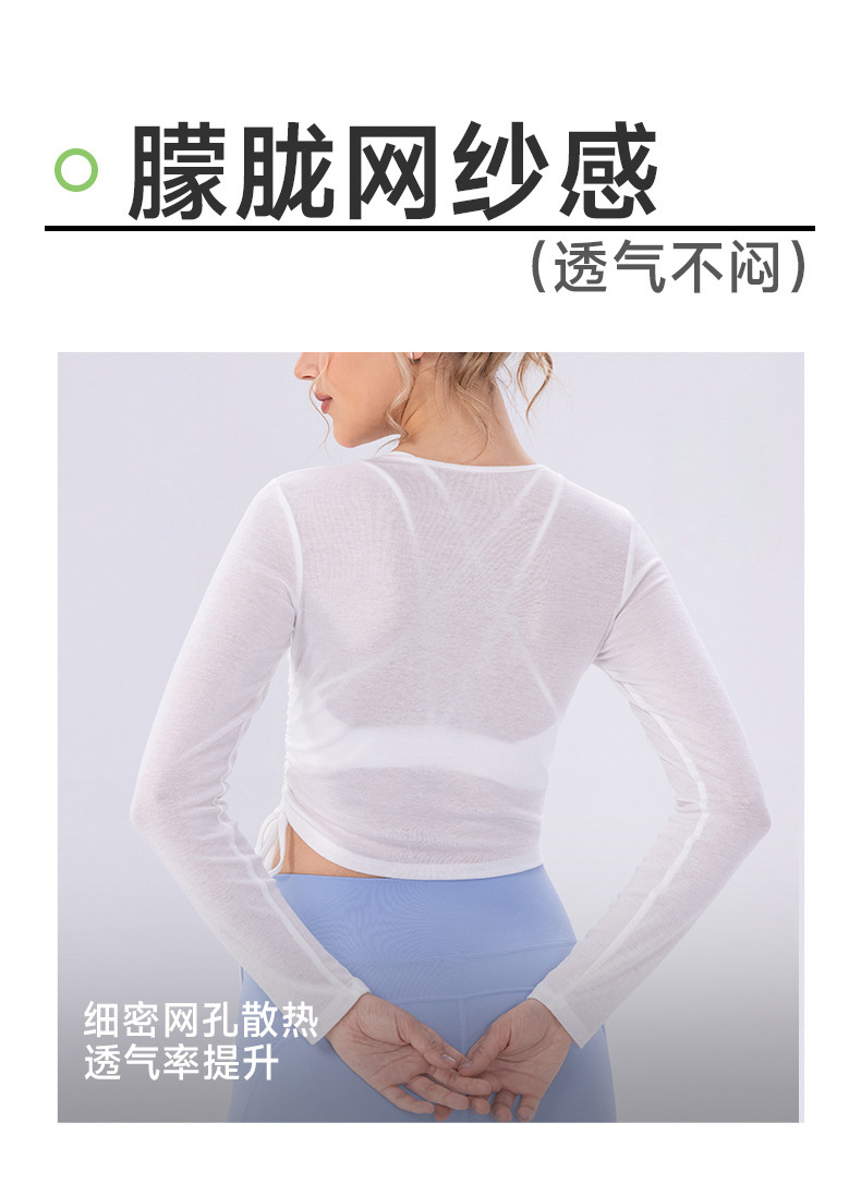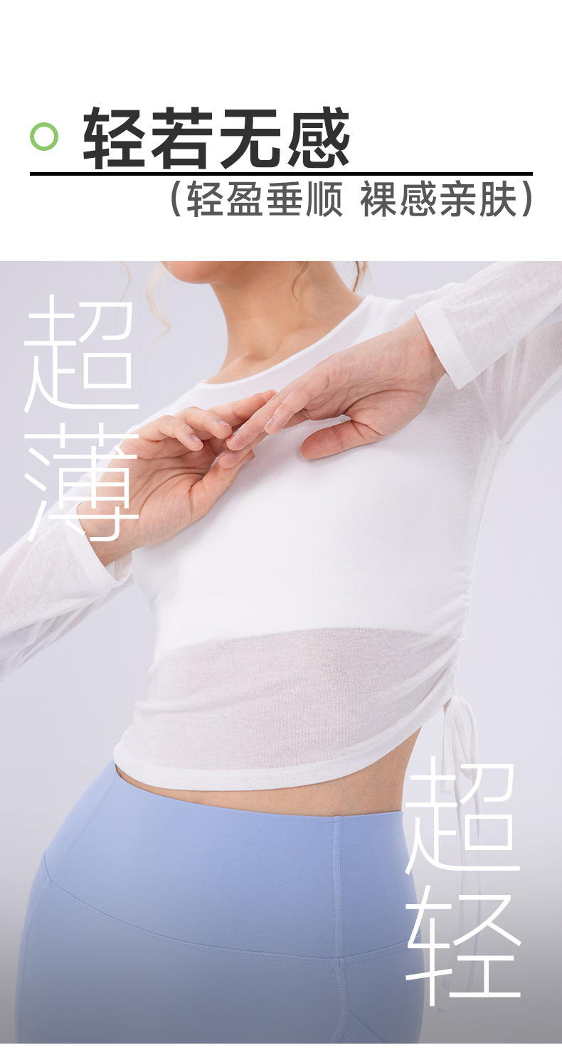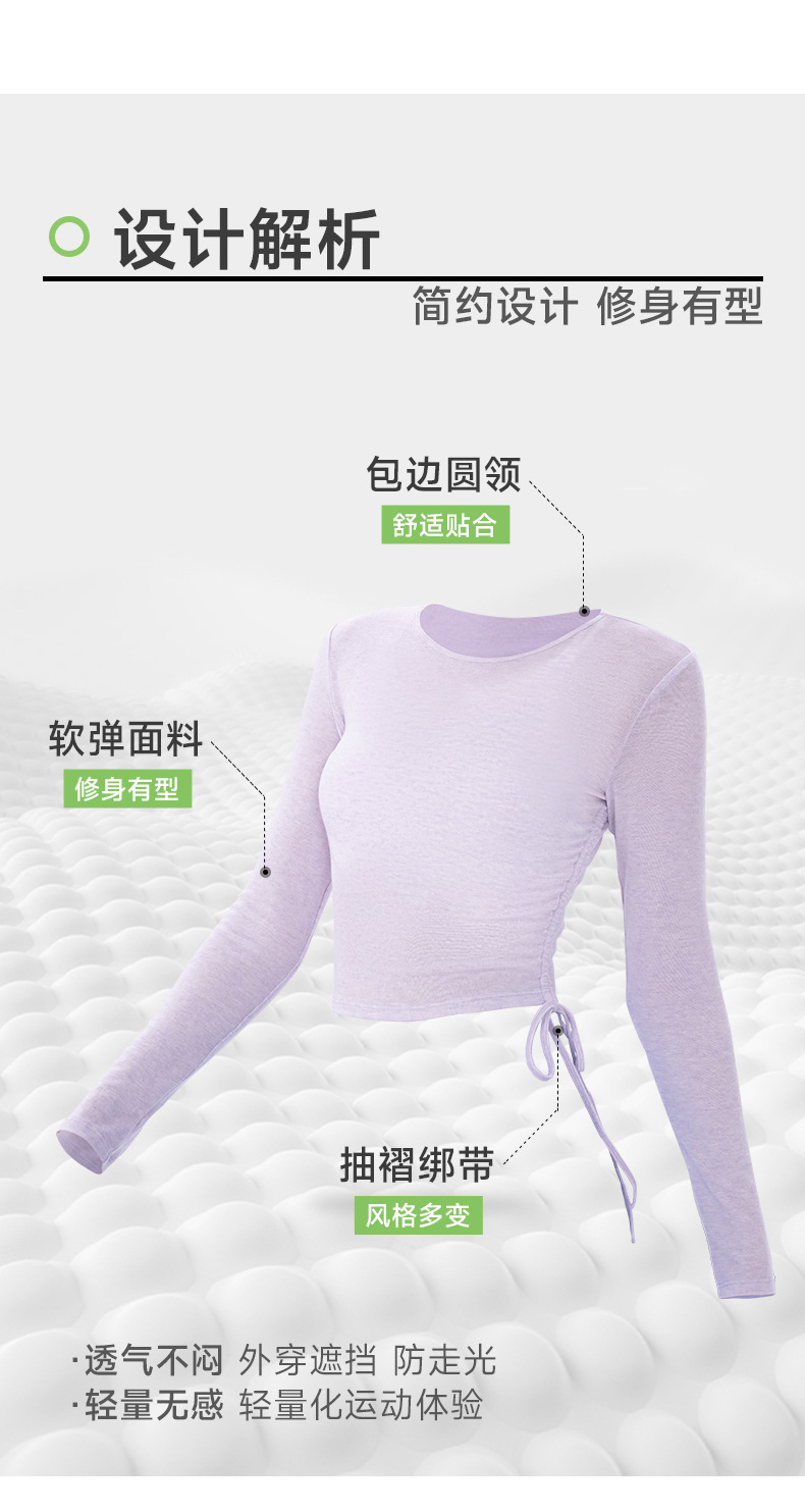 跃牌【欲动春风】系列 女夏轻薄透气瑜伽长袖t恤抽褶上衣速干修身健身普拉提运动罩衫52562