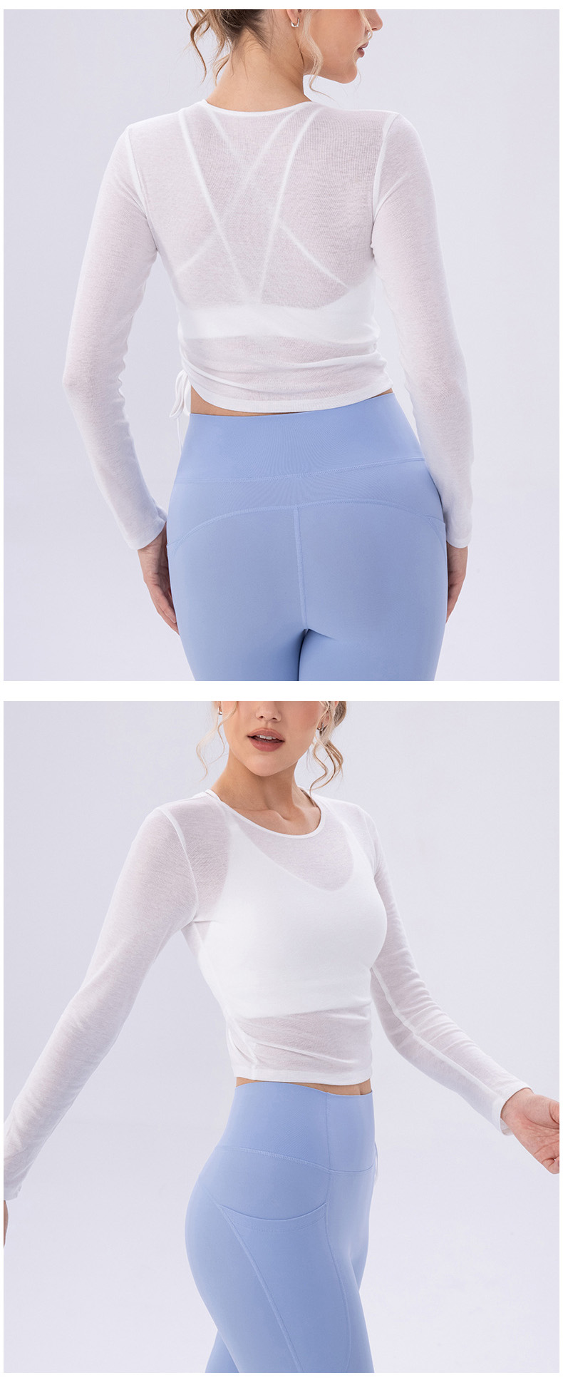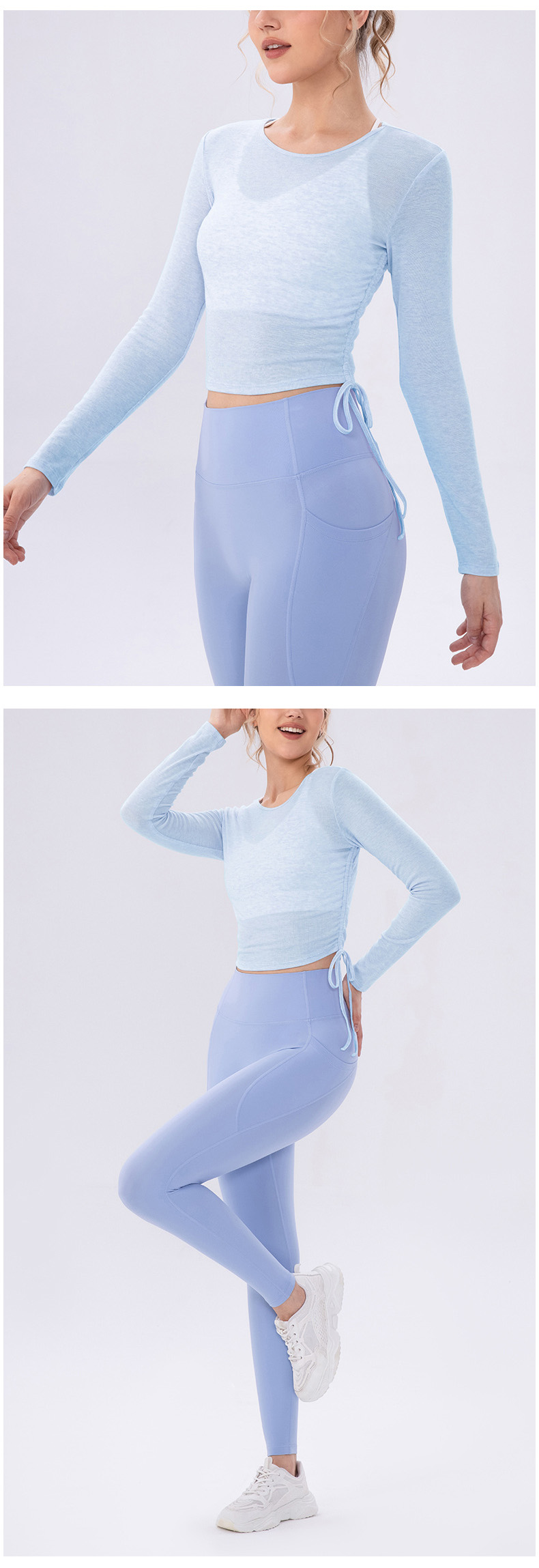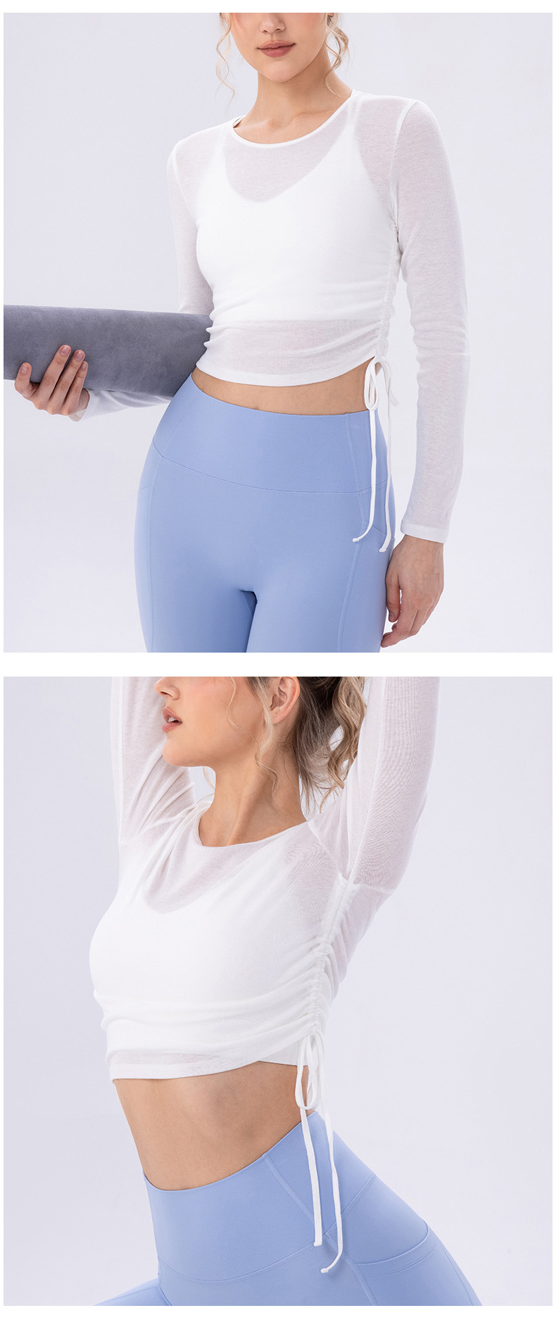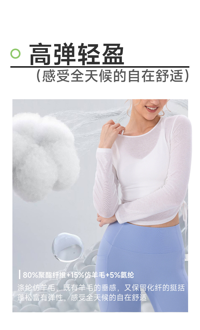 跃牌【欲动春风】系列 女夏轻薄透气瑜伽长袖t恤抽褶上衣速干修身健身普拉提运动罩衫52562