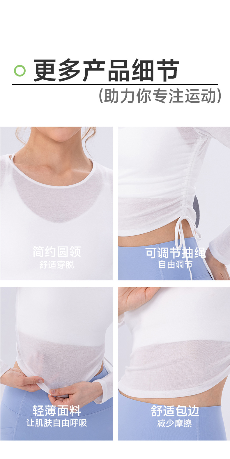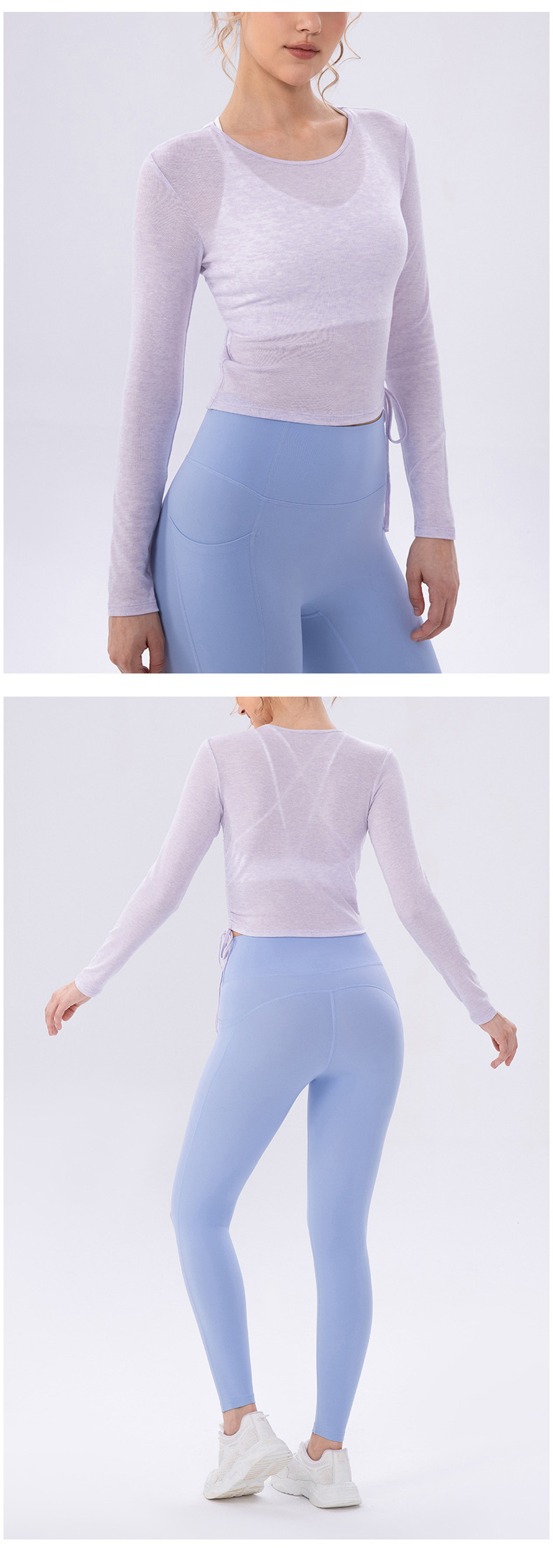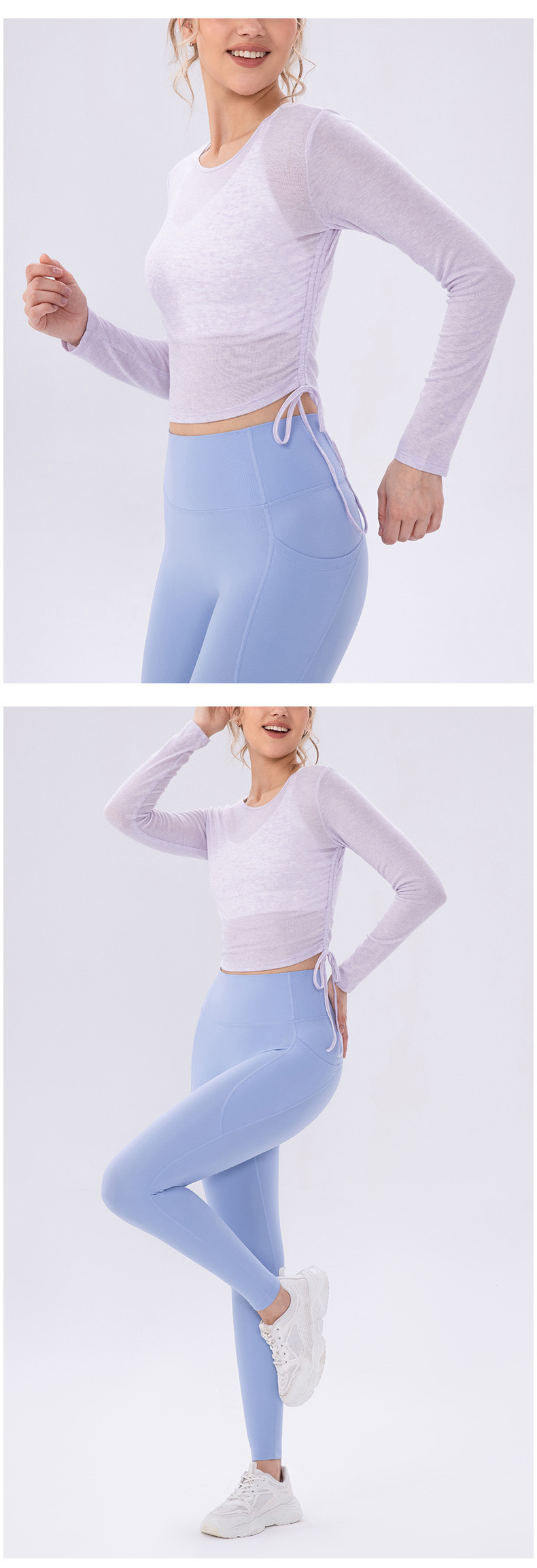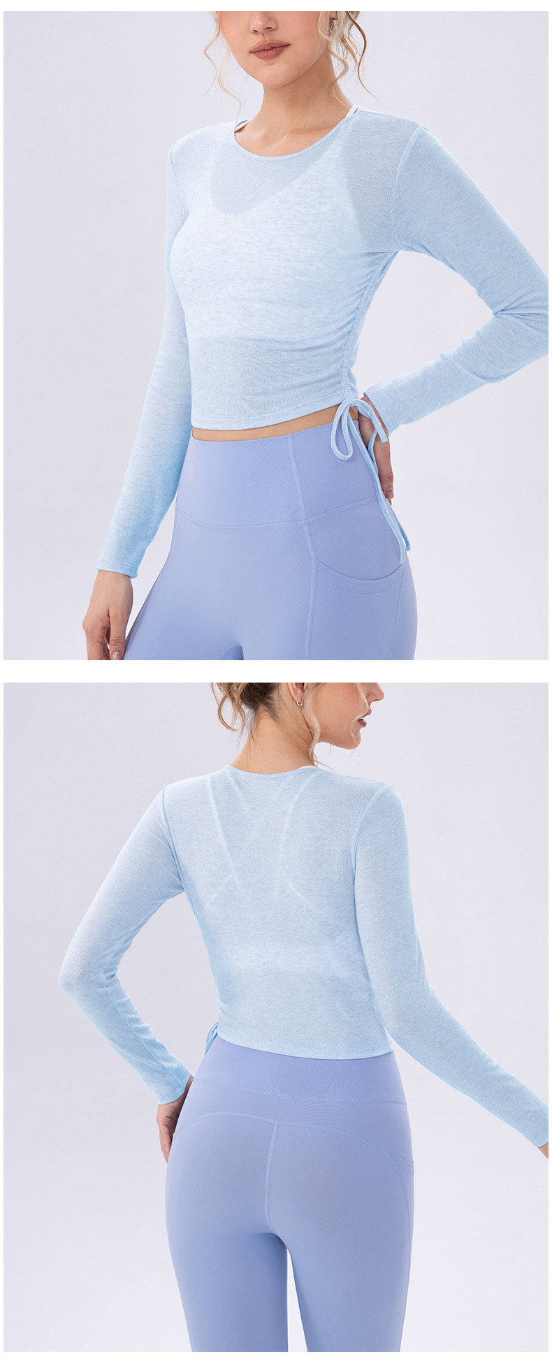 跃牌【欲动春风】系列 女夏轻薄透气瑜伽长袖t恤抽褶上衣速干修身健身普拉提运动罩衫52562