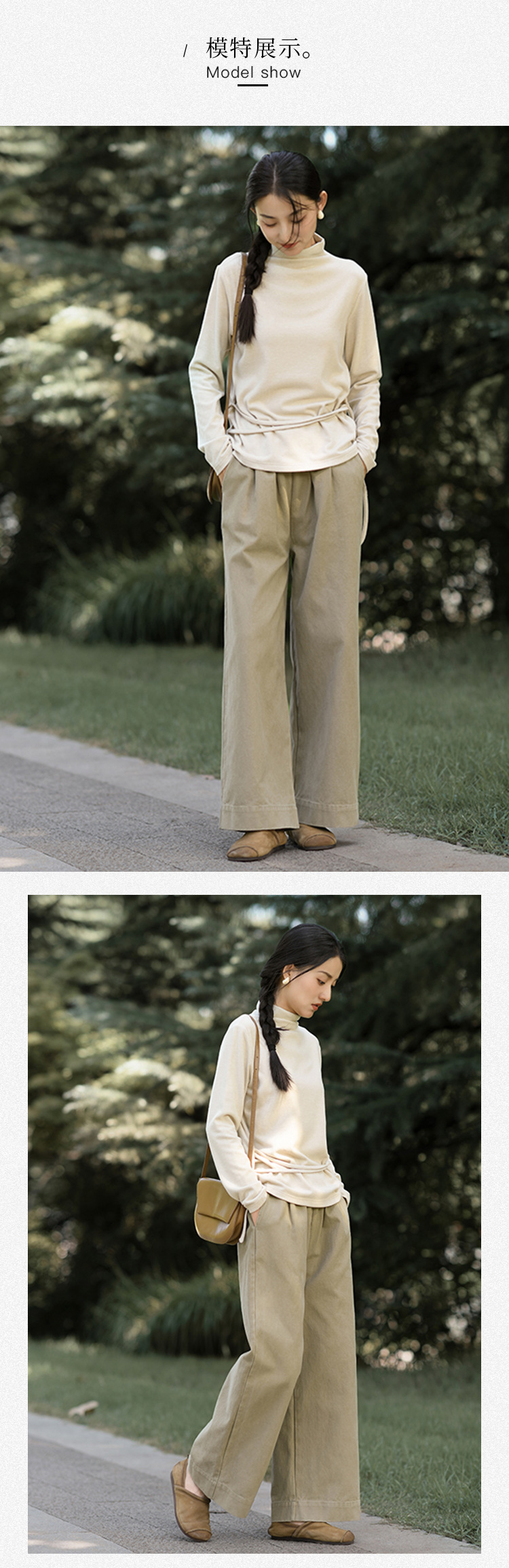 2025秋冬新款洗水棉休闲裤,松紧腰纯色直筒裤显瘦QM6576 商品图2