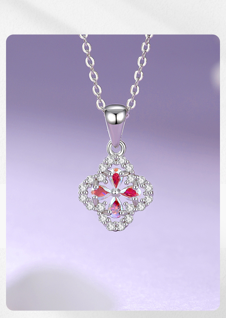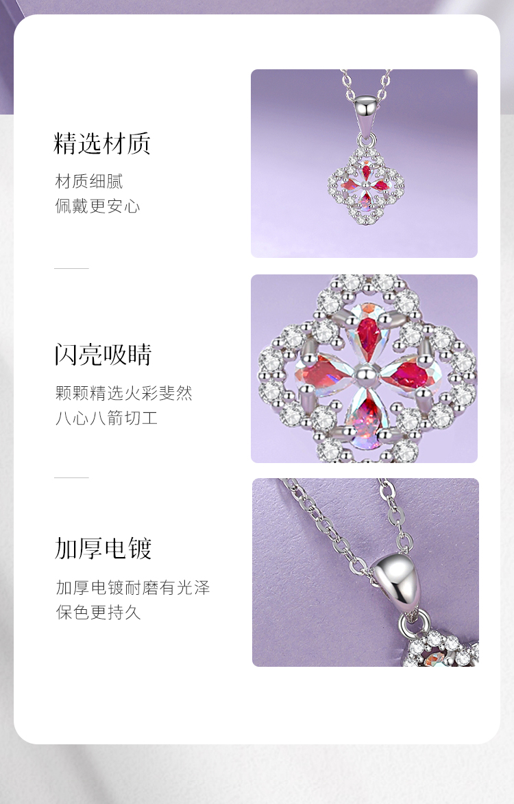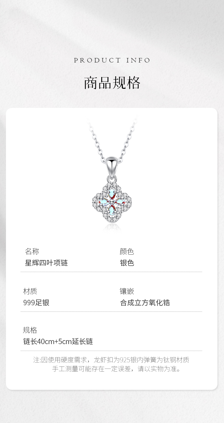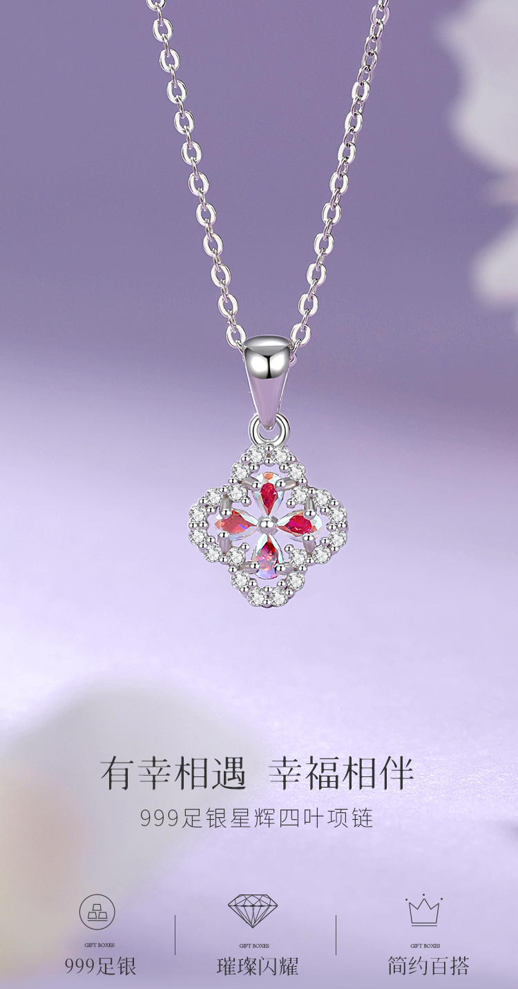 Winy999足银星辉四叶项链配证书送女友闺蜜节日礼物