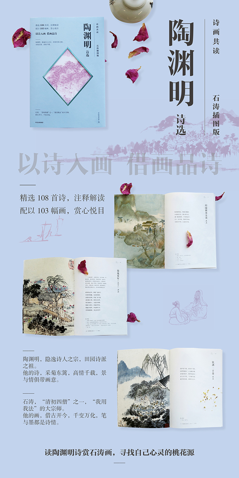 精选108首诗配103幅石涛名画,以诗入画,借画品诗。