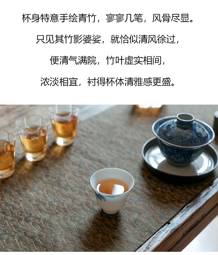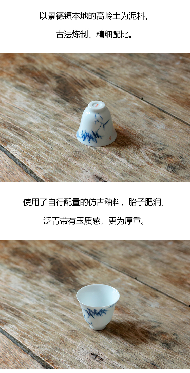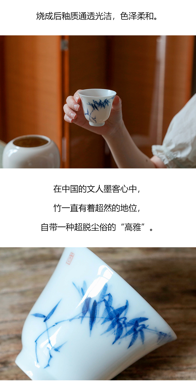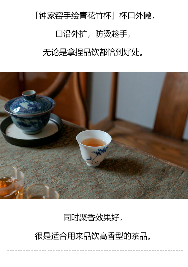 茶香记 钟家窑手绘青花竹杯 手绘青花 清秀典雅 文人气足 雅致灵动 小巧品杯 持握舒适