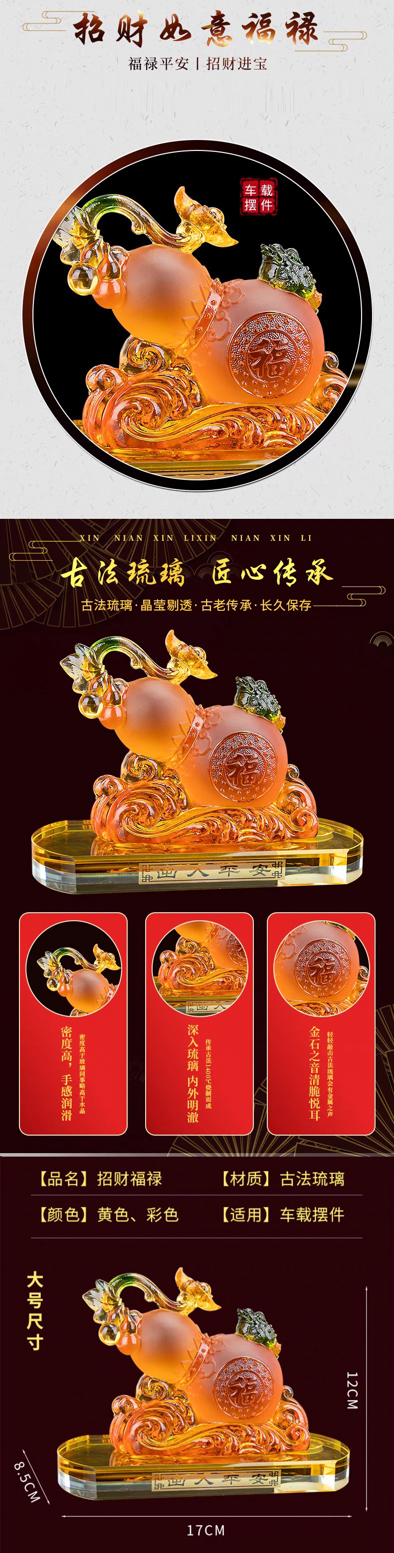 元吉【古法琉璃葫芦】车载摆件车用饰品