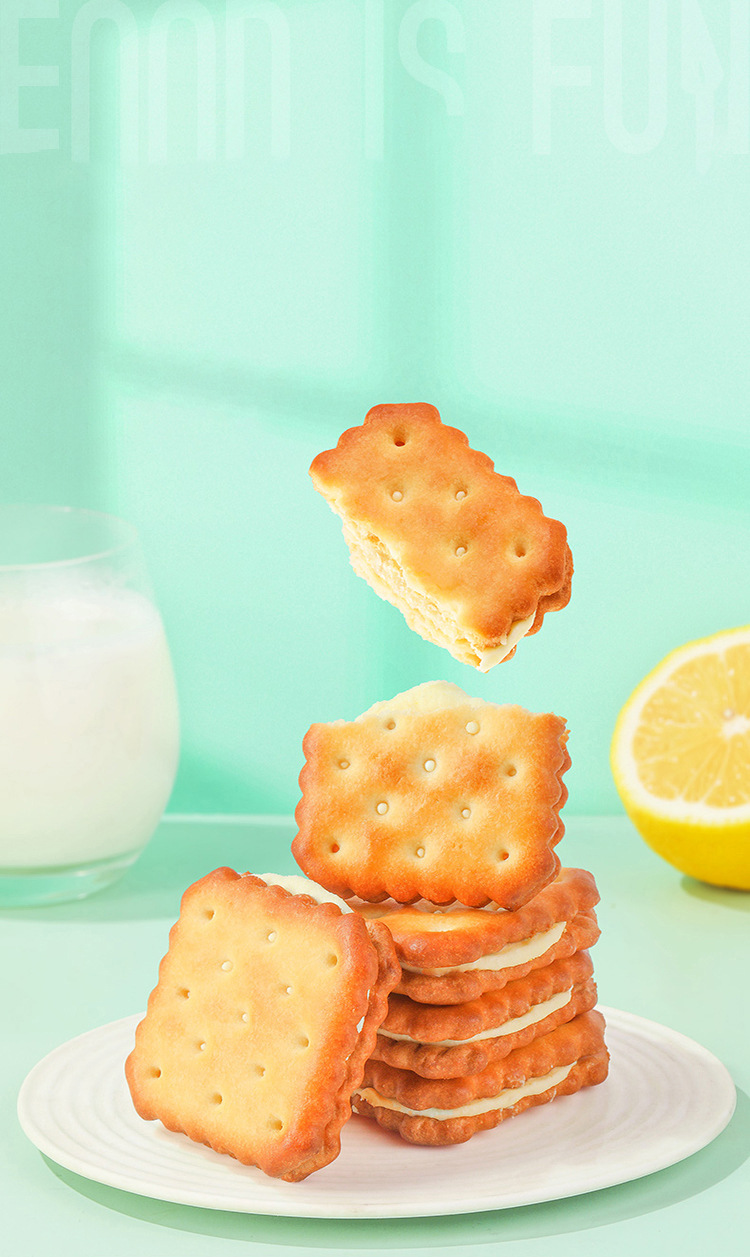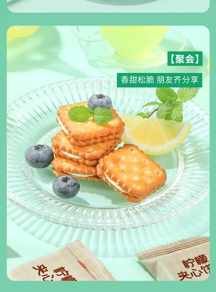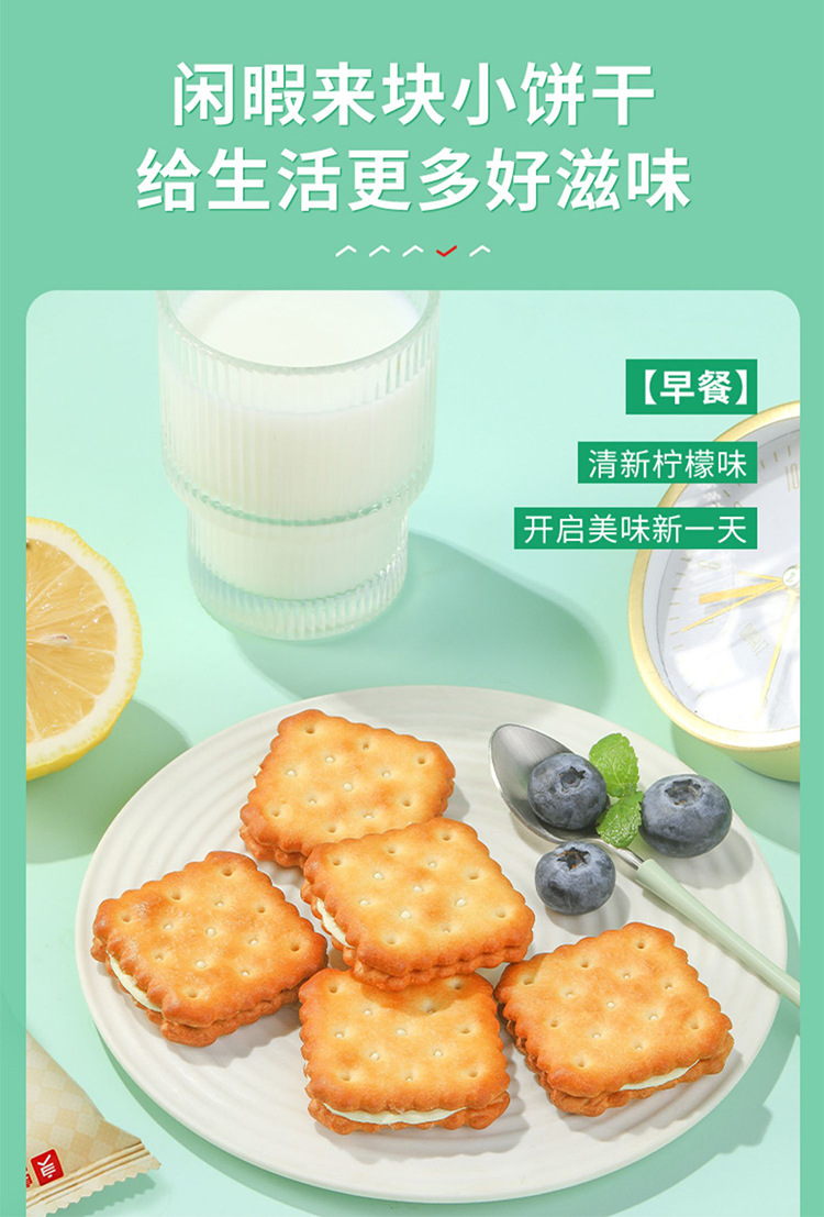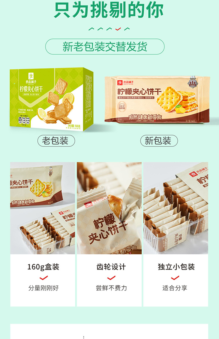 【清新柠檬!独立包装】良品铺子柠檬夹心饼干160g箱规16包装酥脆小饼干解馋小吃独立包装。xa