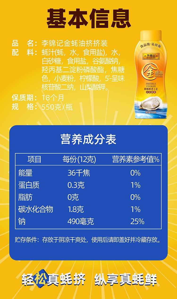 T李锦记550g挤挤装金蚝油
