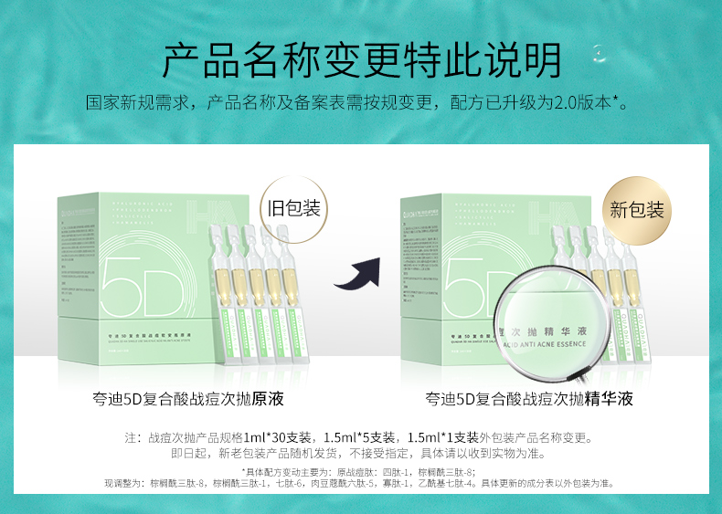 华熙生物夸迪5D复合酸战痘次抛补水保湿水杨酸面部精华