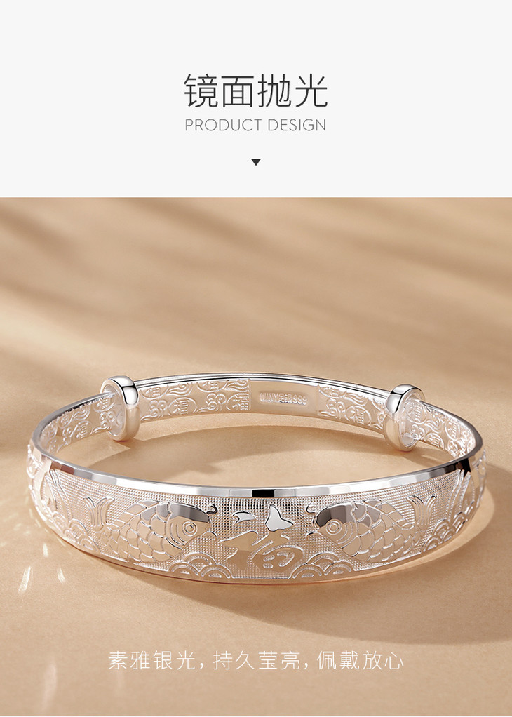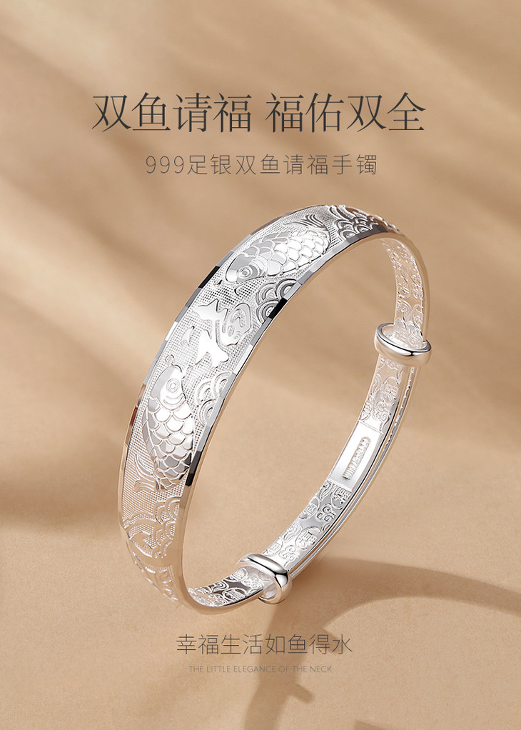 Winy999足银双鱼请福手镯送女友闺蜜节日生日礼物