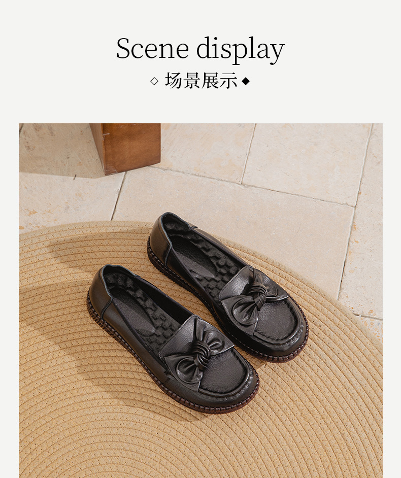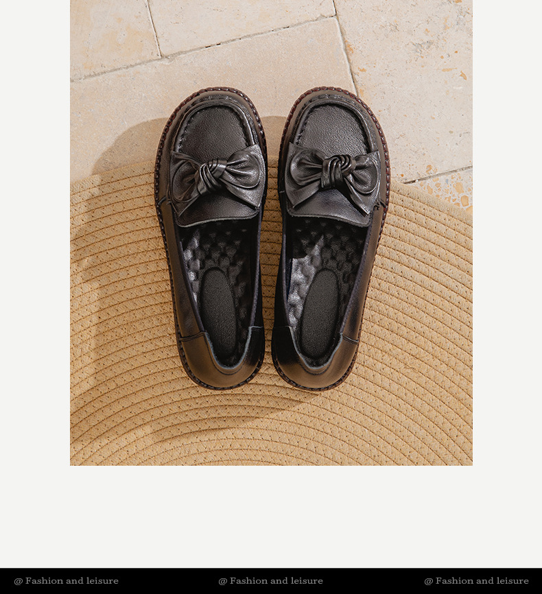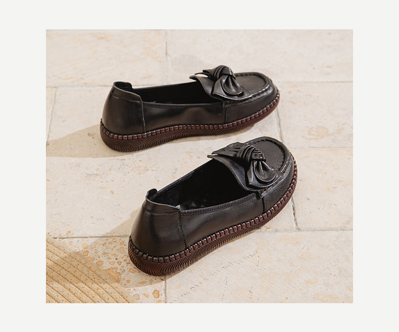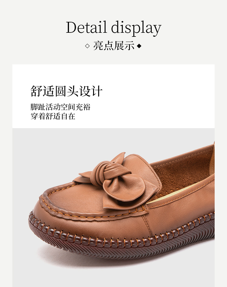 百搭蝴蝶结豆豆鞋,软底圆头平跟休闲中老年女鞋MLD-2385
