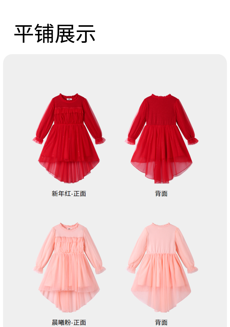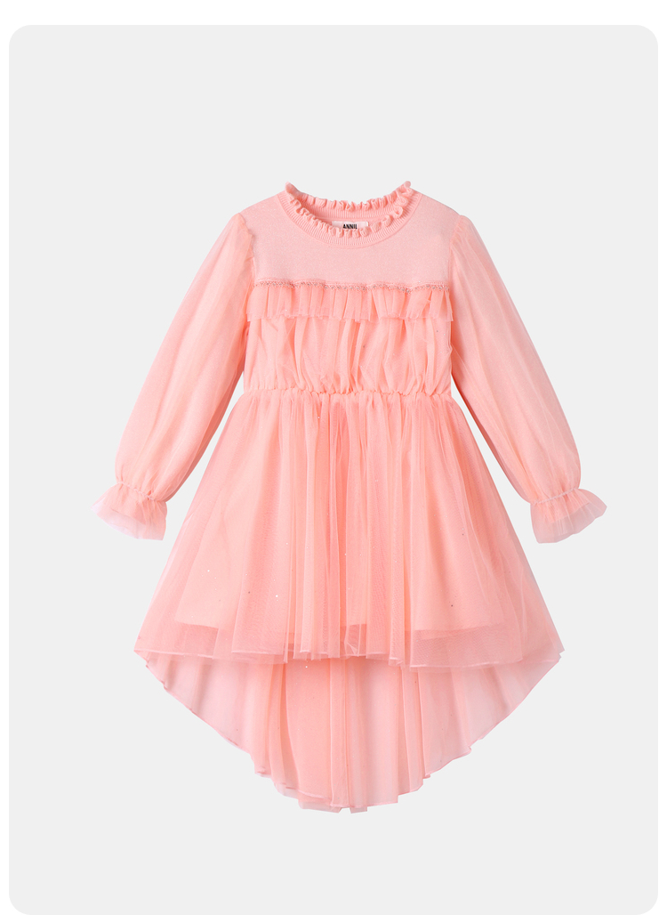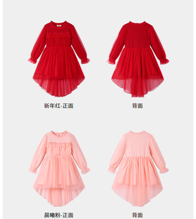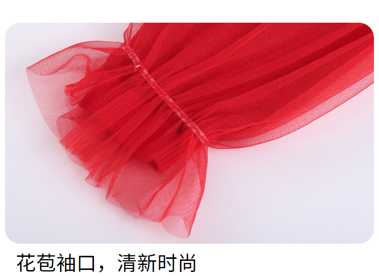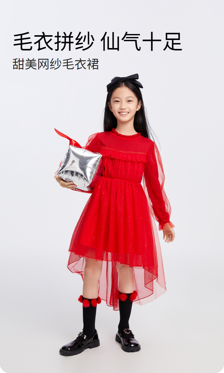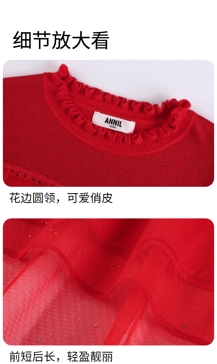【新年红】女童甜美洋气时尚宽松网纱长袖连衣裙安奈儿童装EG344173