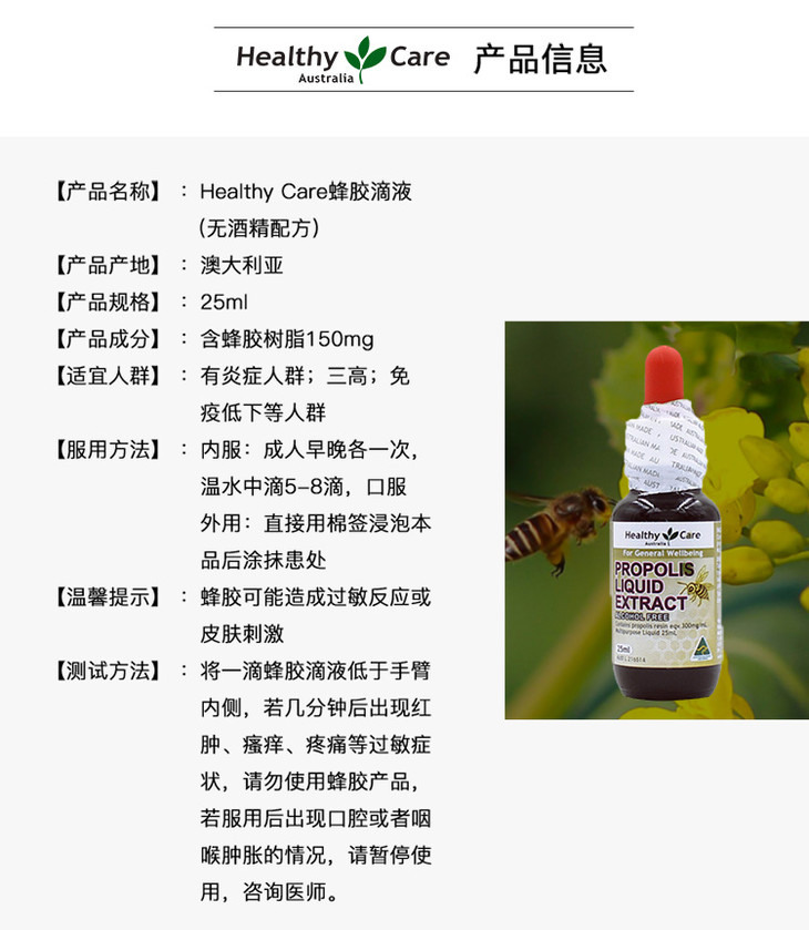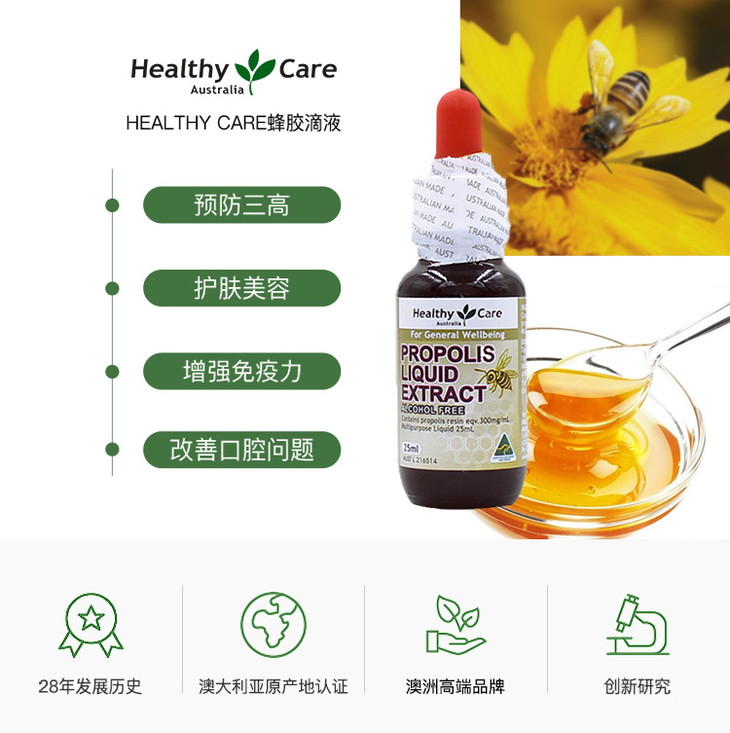 【缓解口腔溃疡】澳州 Healthy Care 天然蜂胶滴剂 25ml