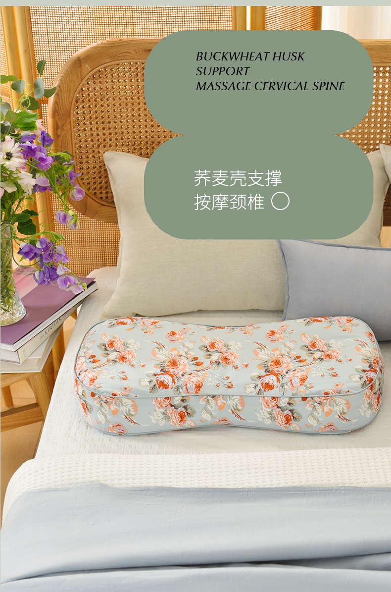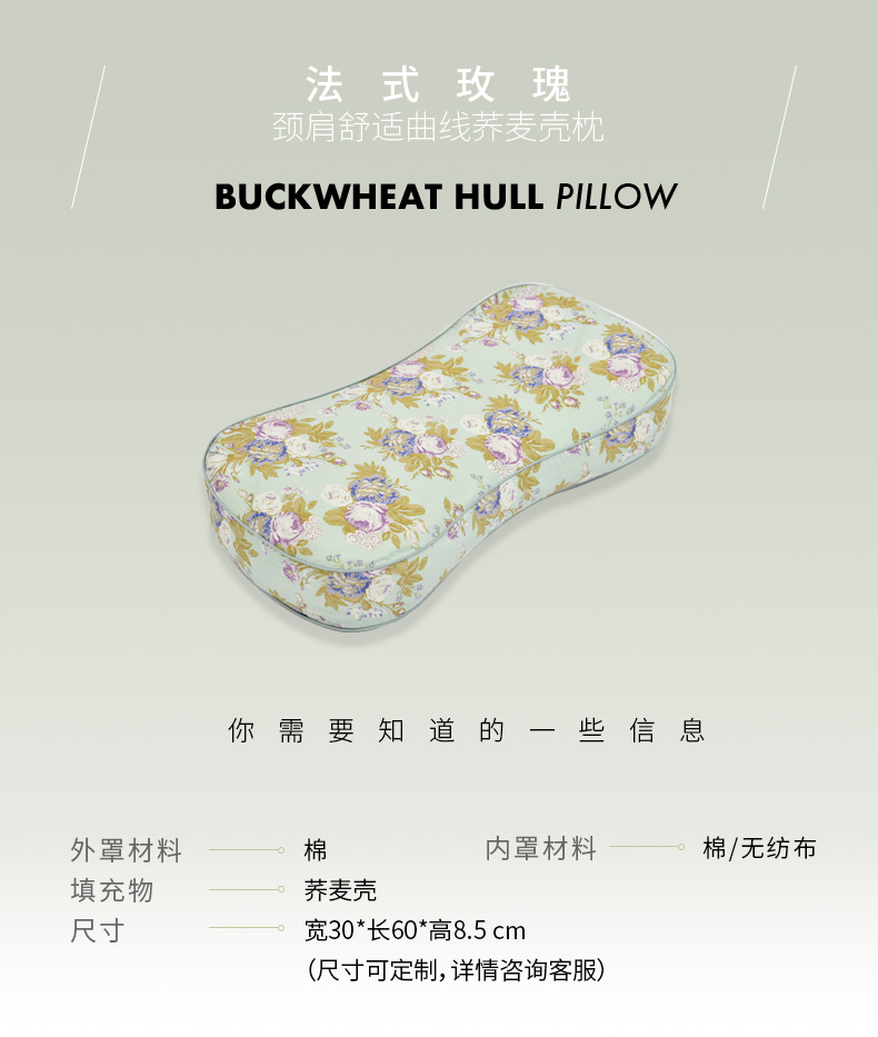 法式玫瑰系列曲线枕荞麦壳枕头护颈椎病荞麦皮睡眠四季