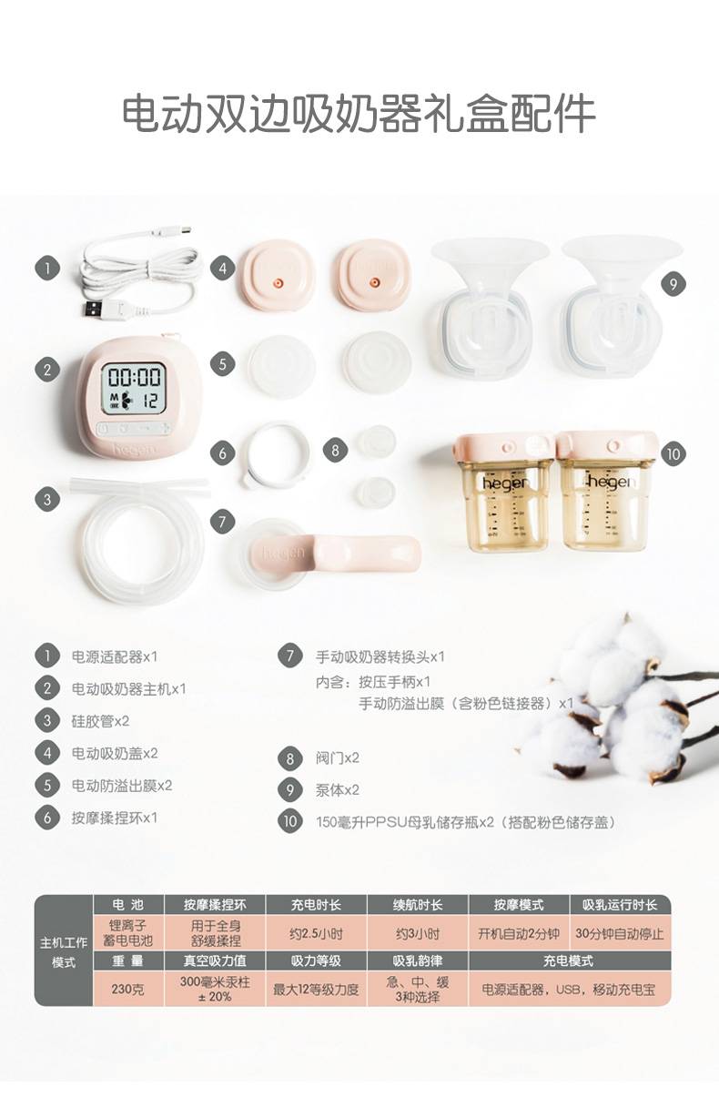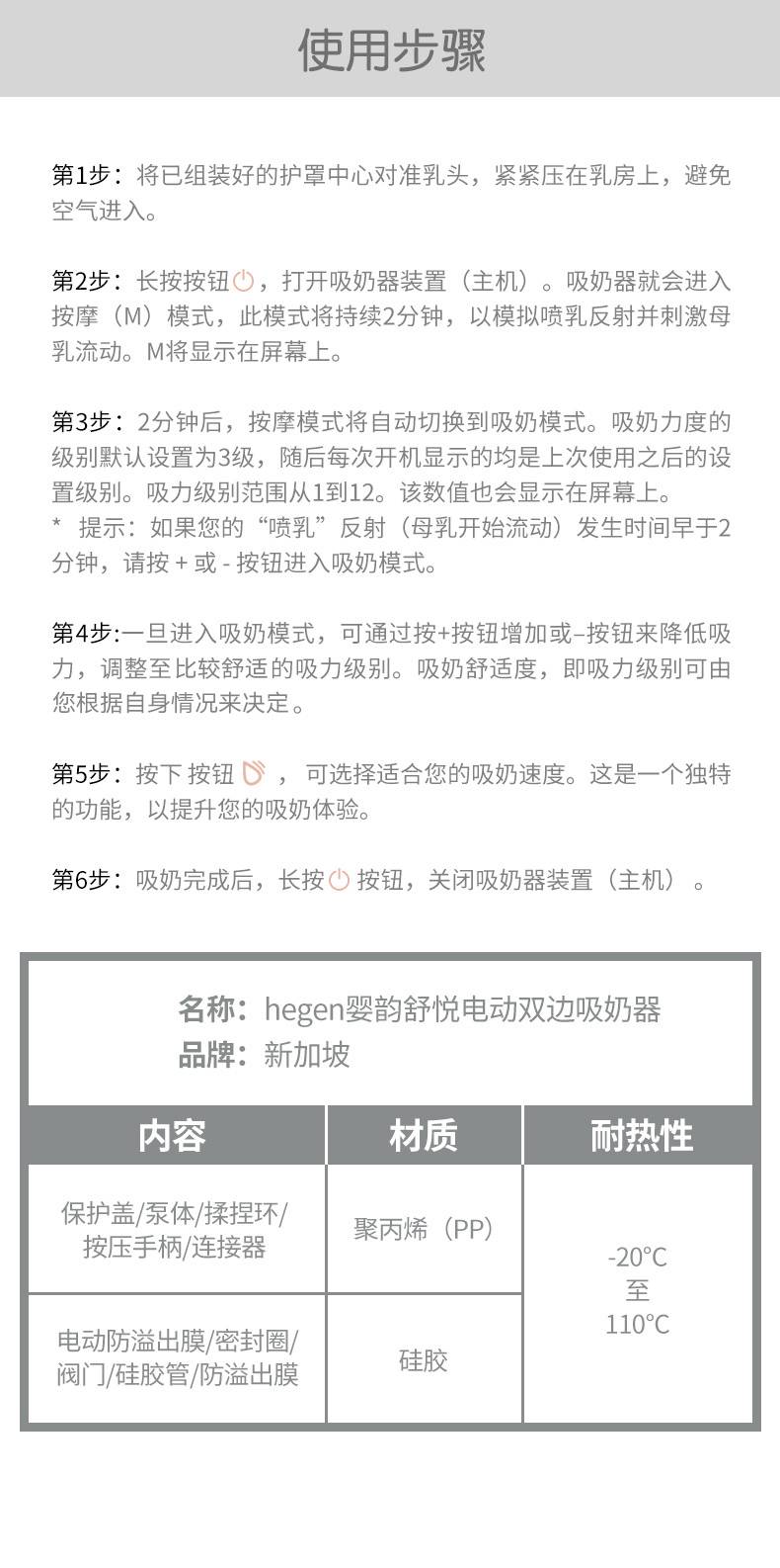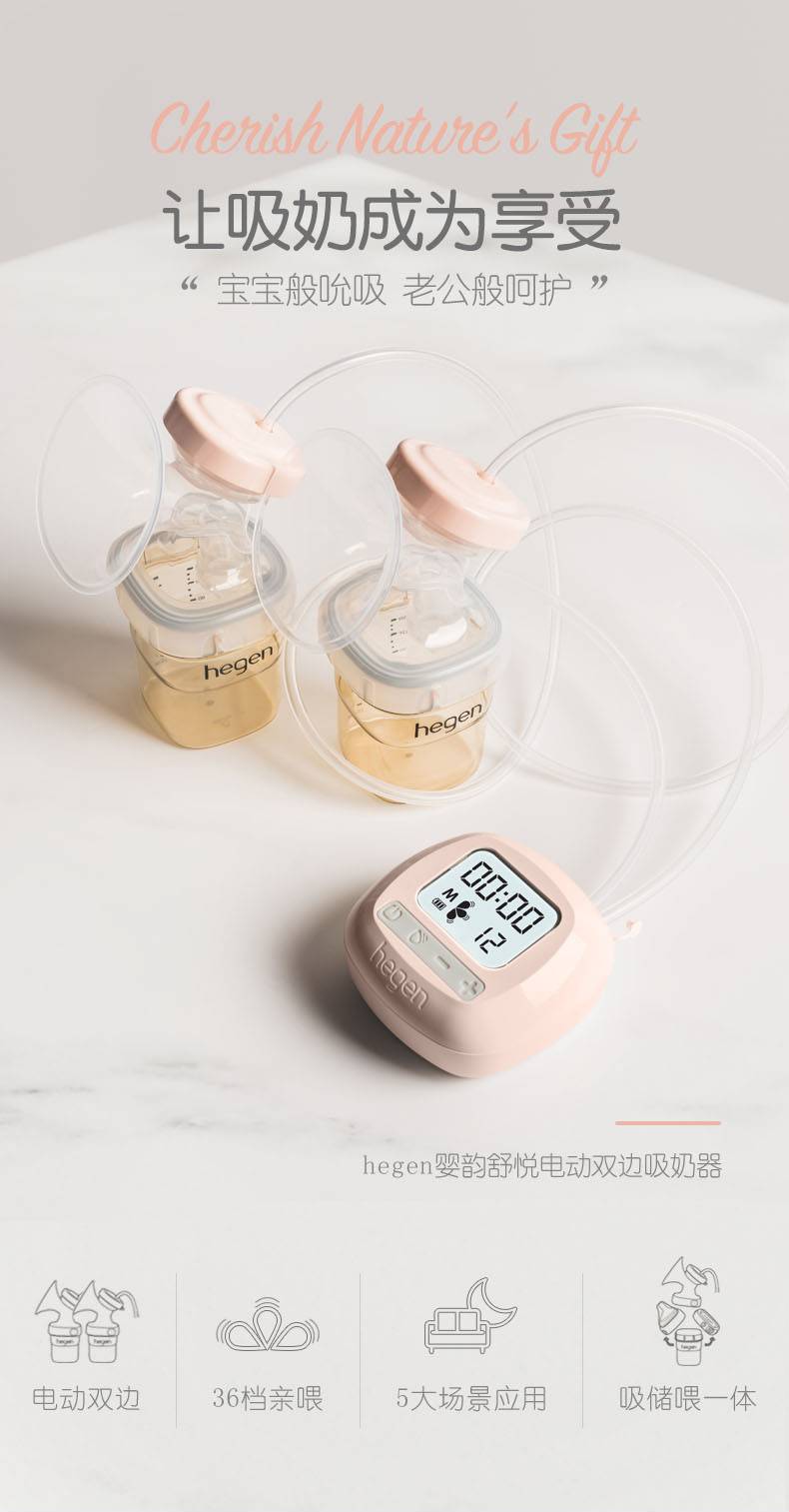 hegen新加坡原装进口智能双边电动吸奶器孕产妇集乳器吸力大8886476100138