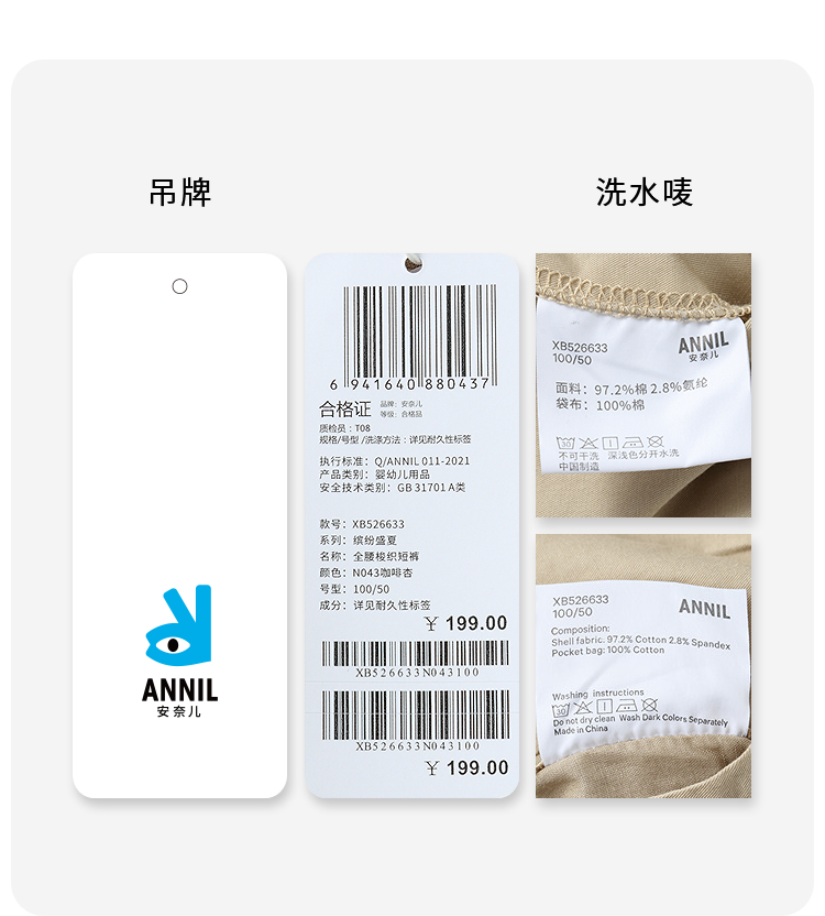 【实体店同款】男童全腰梭织短裤夏季新款安奈儿童装XB526633