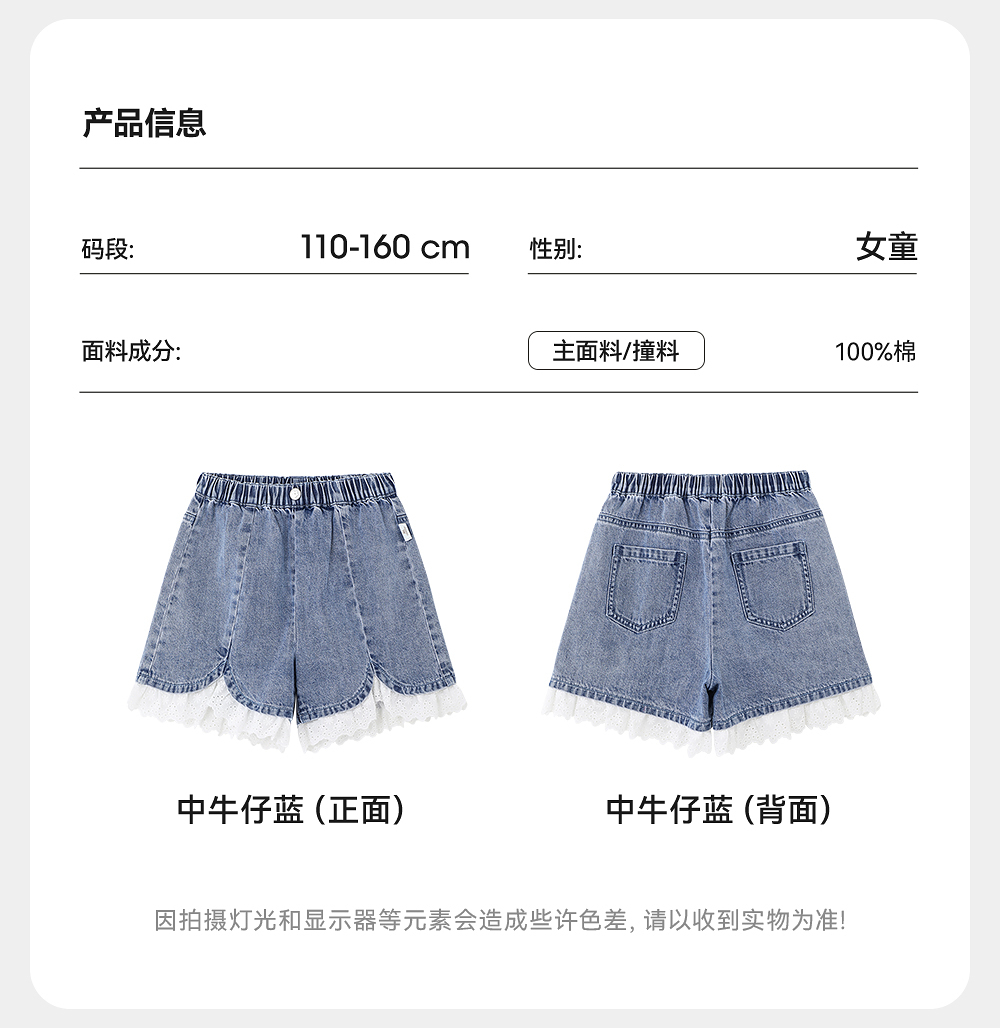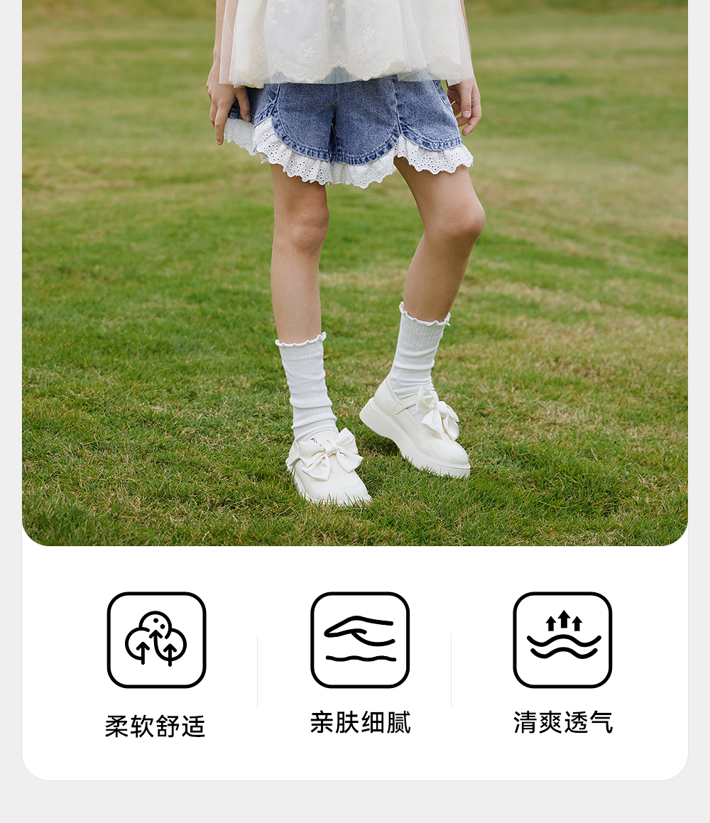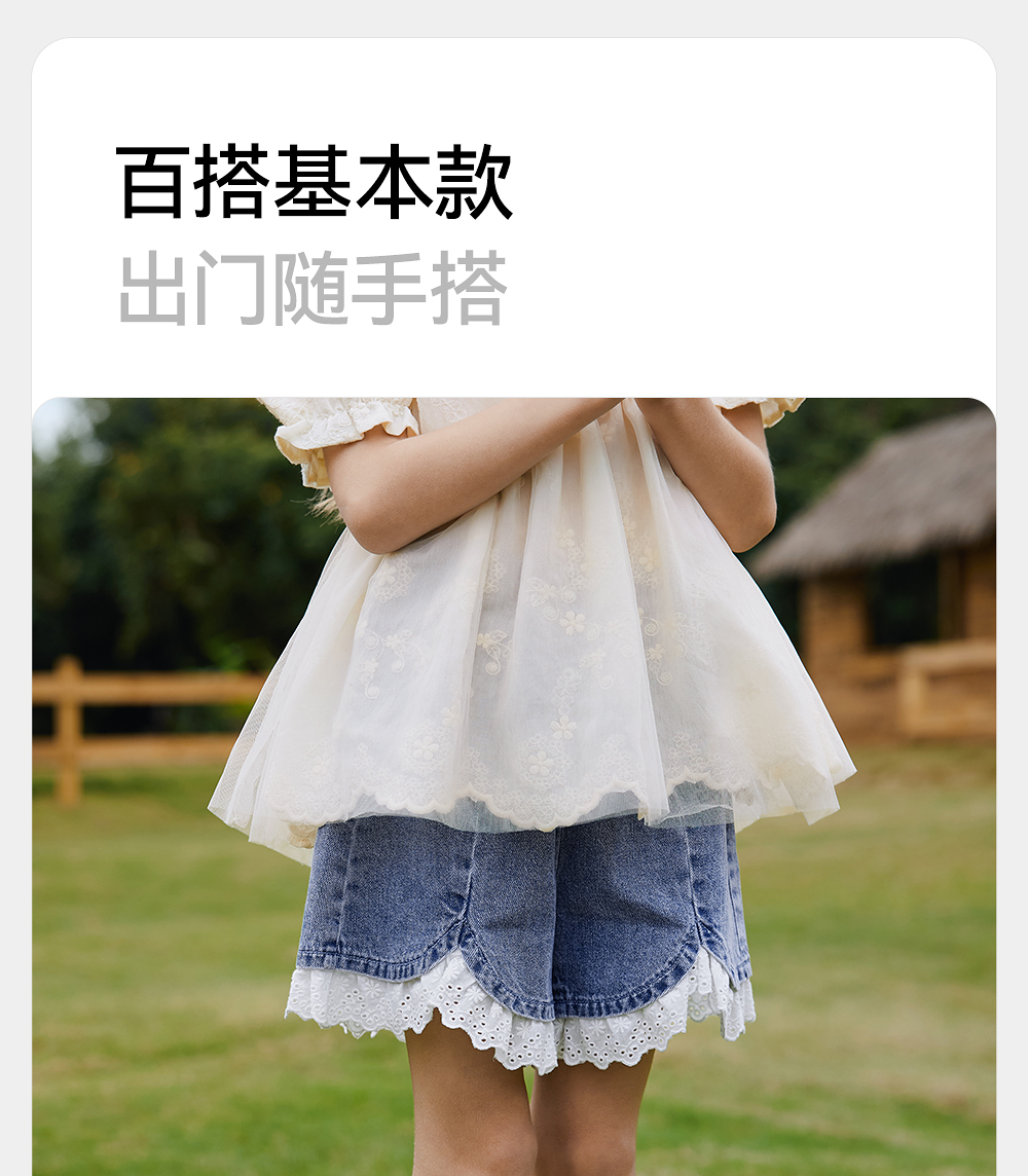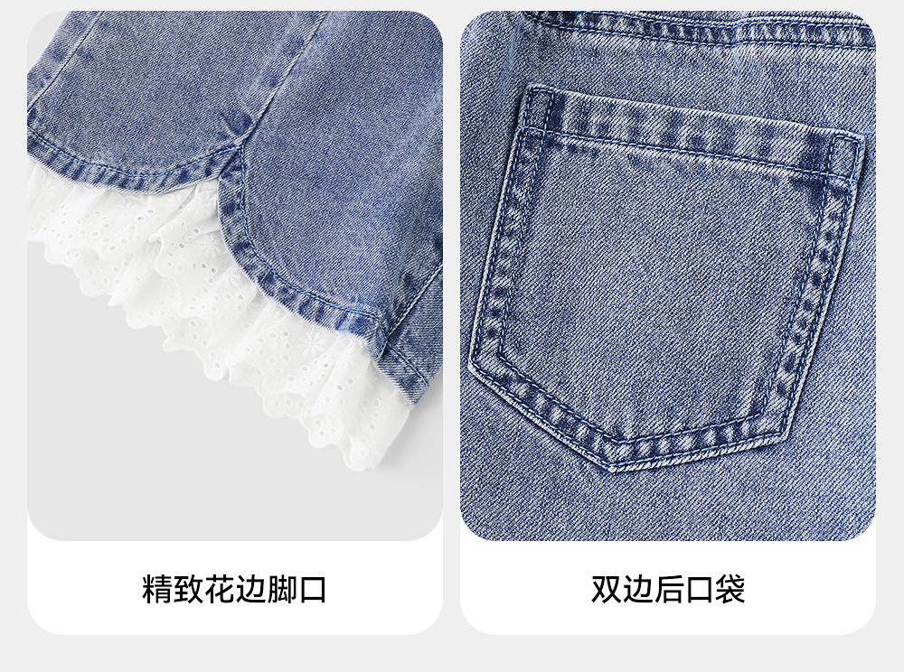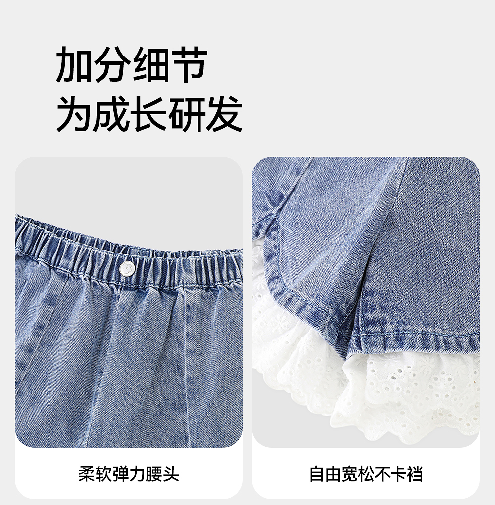 英氏儿童裤子夏季宽松纯棉牛仔裤中大童短裤透气女童裤子2025新款