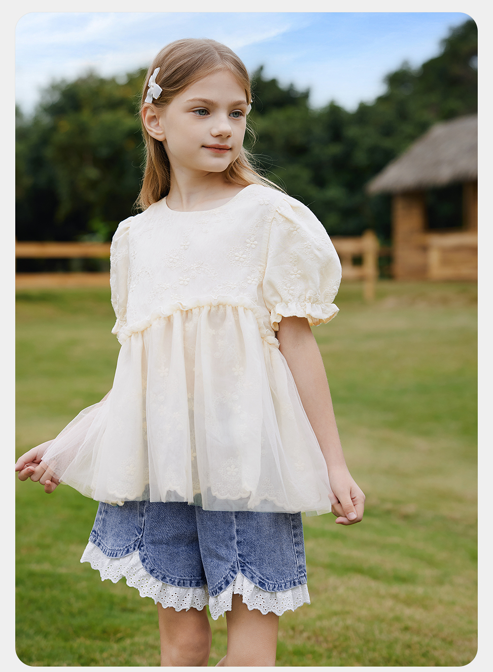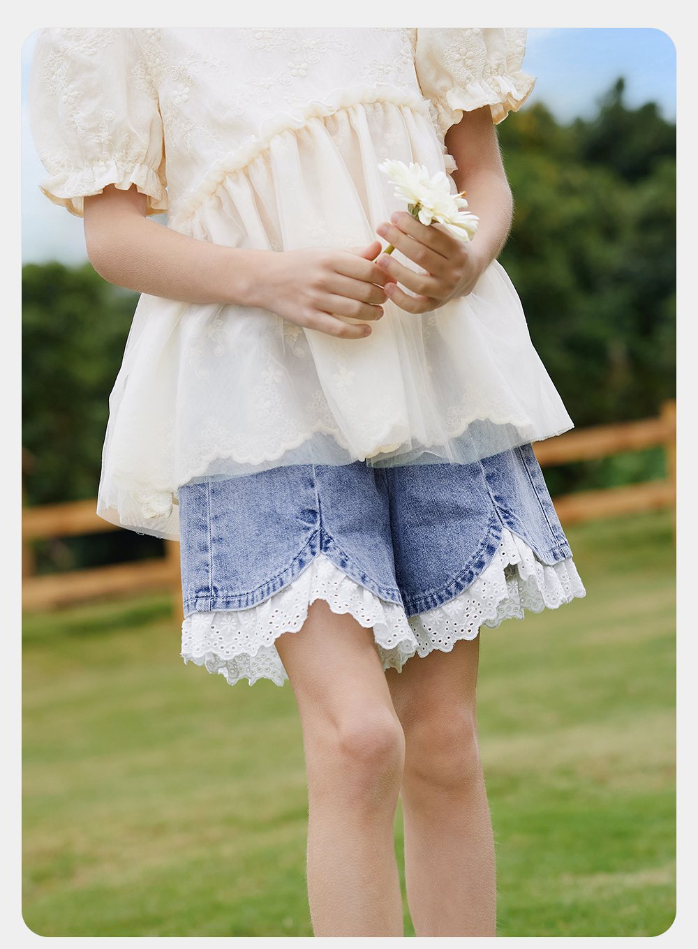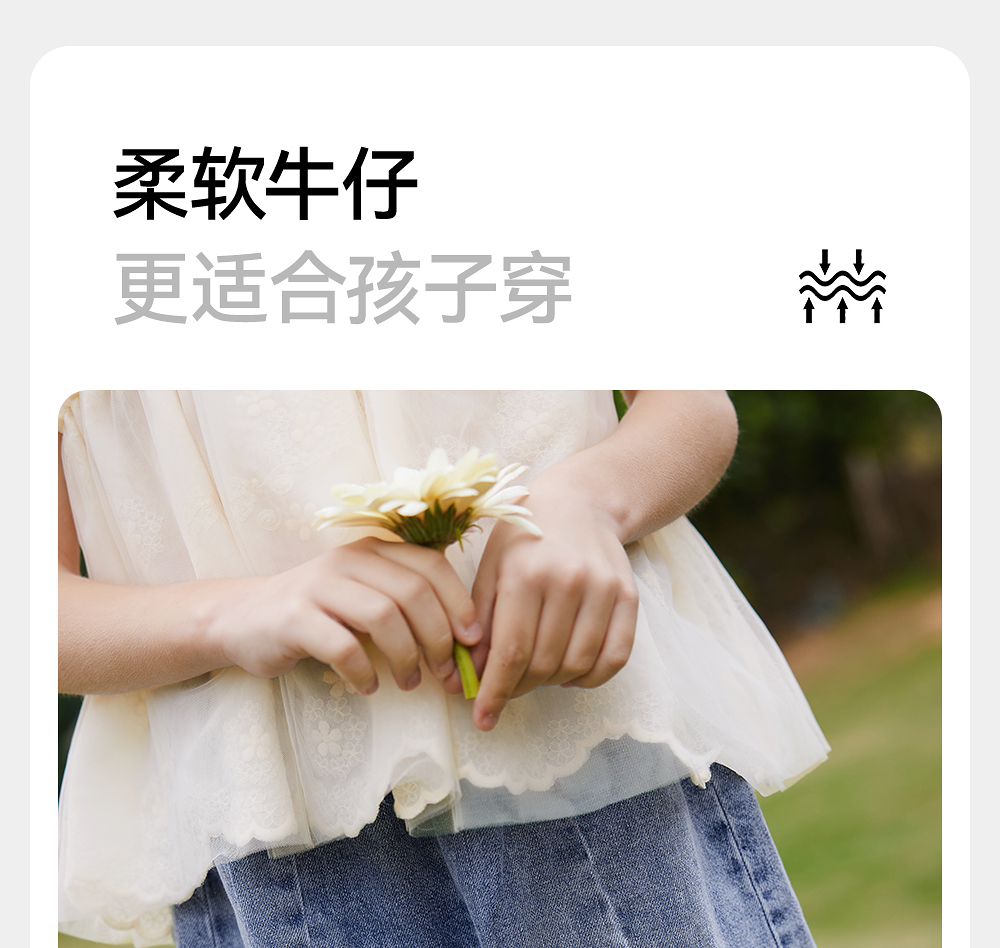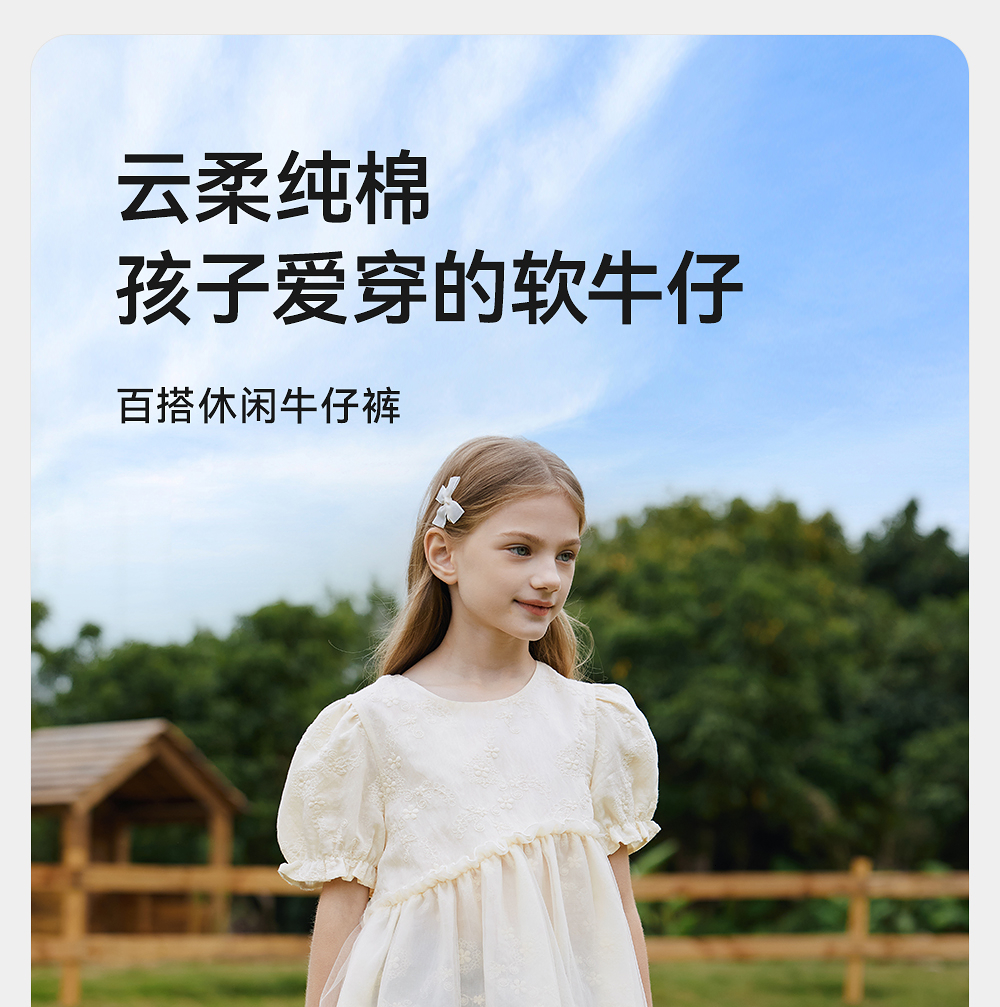英氏儿童裤子夏季宽松纯棉牛仔裤中大童短裤透气女童裤子2025新款