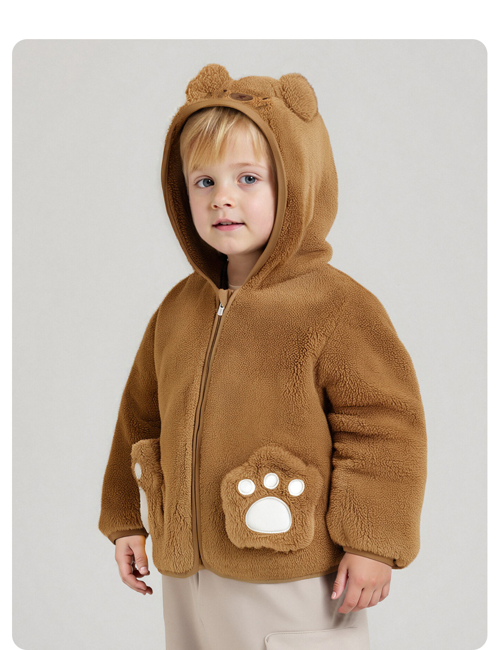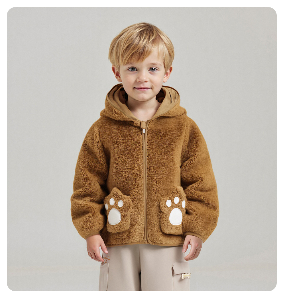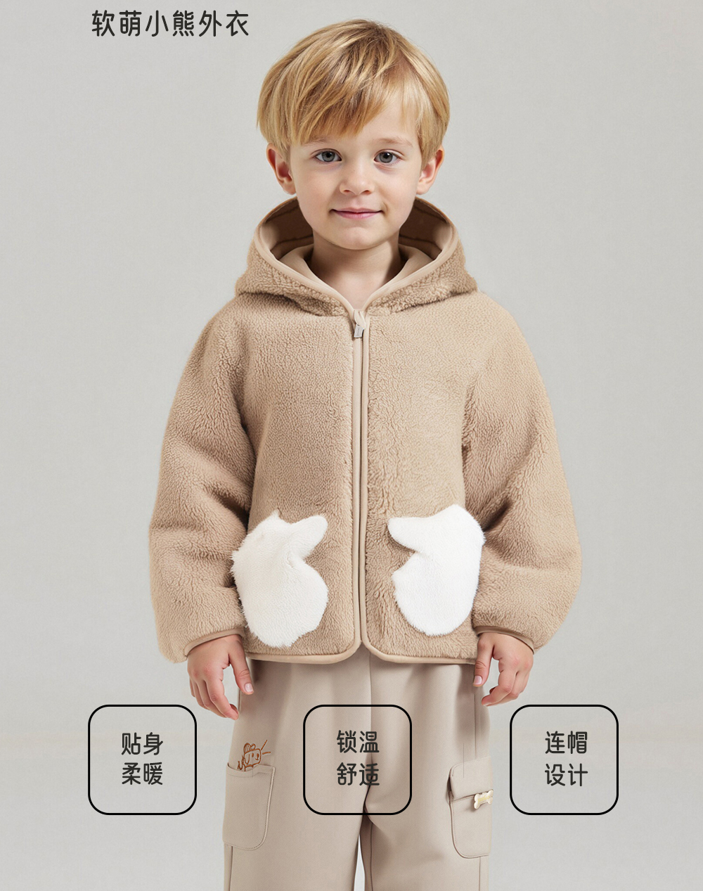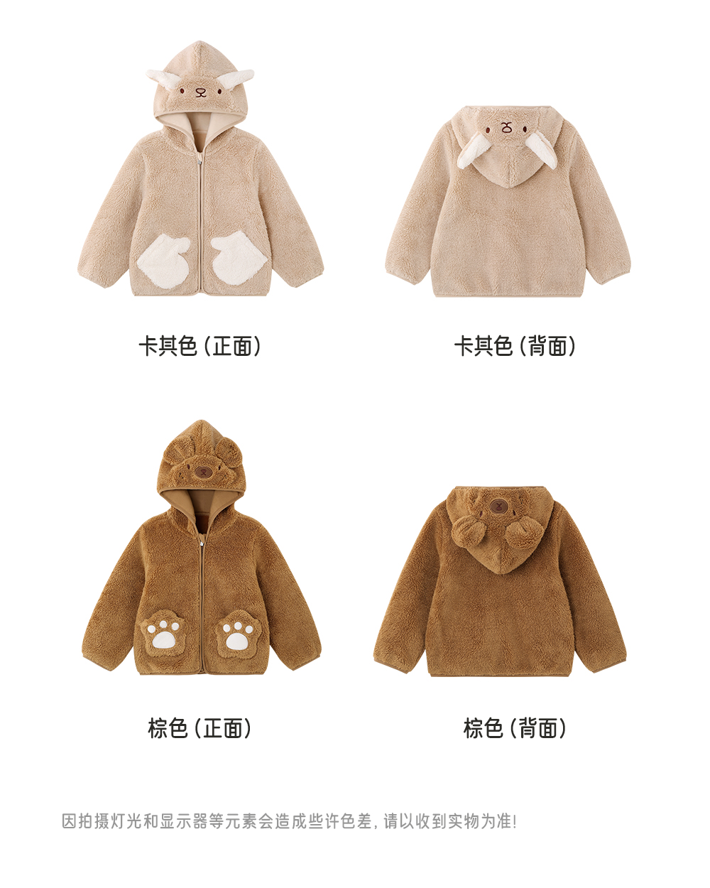 英氏儿童外套秋冬新款保暖加绒男女童连帽外套可爱儿童摇粒绒外套