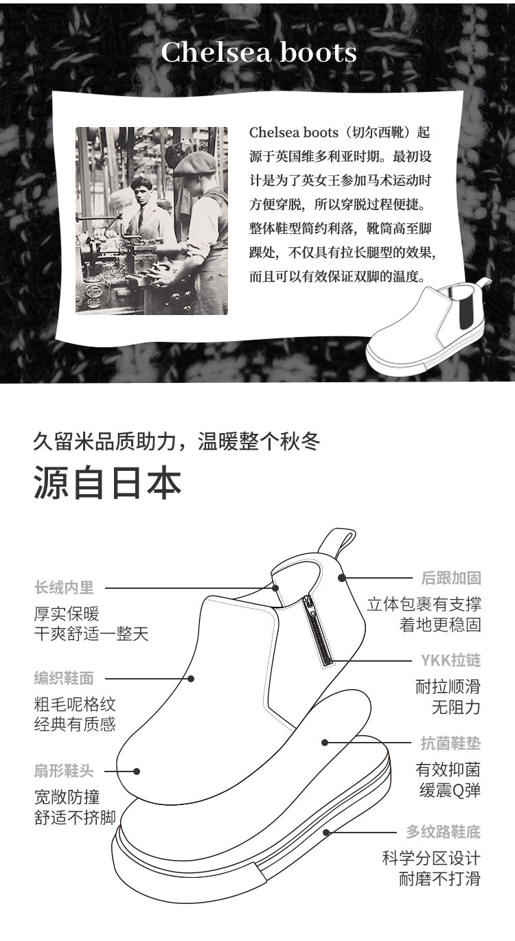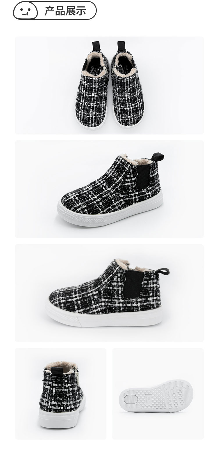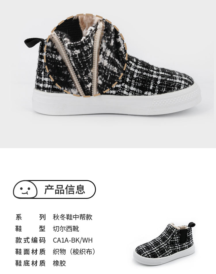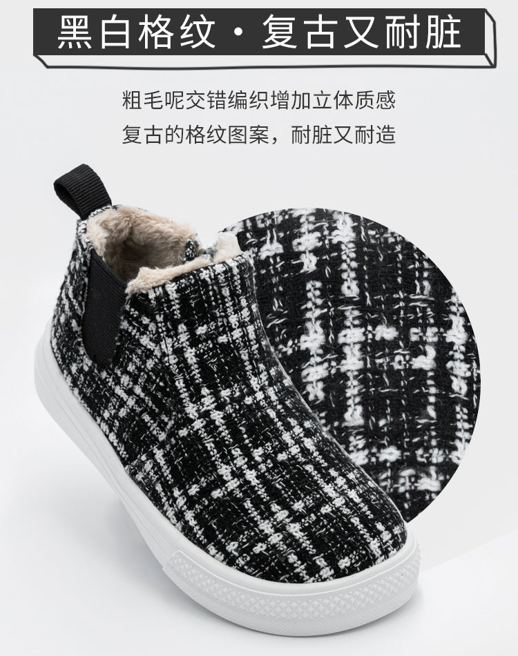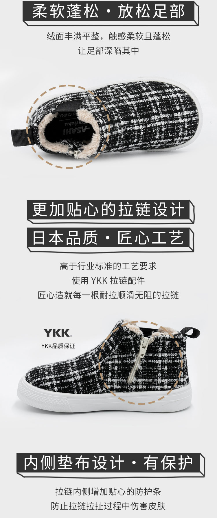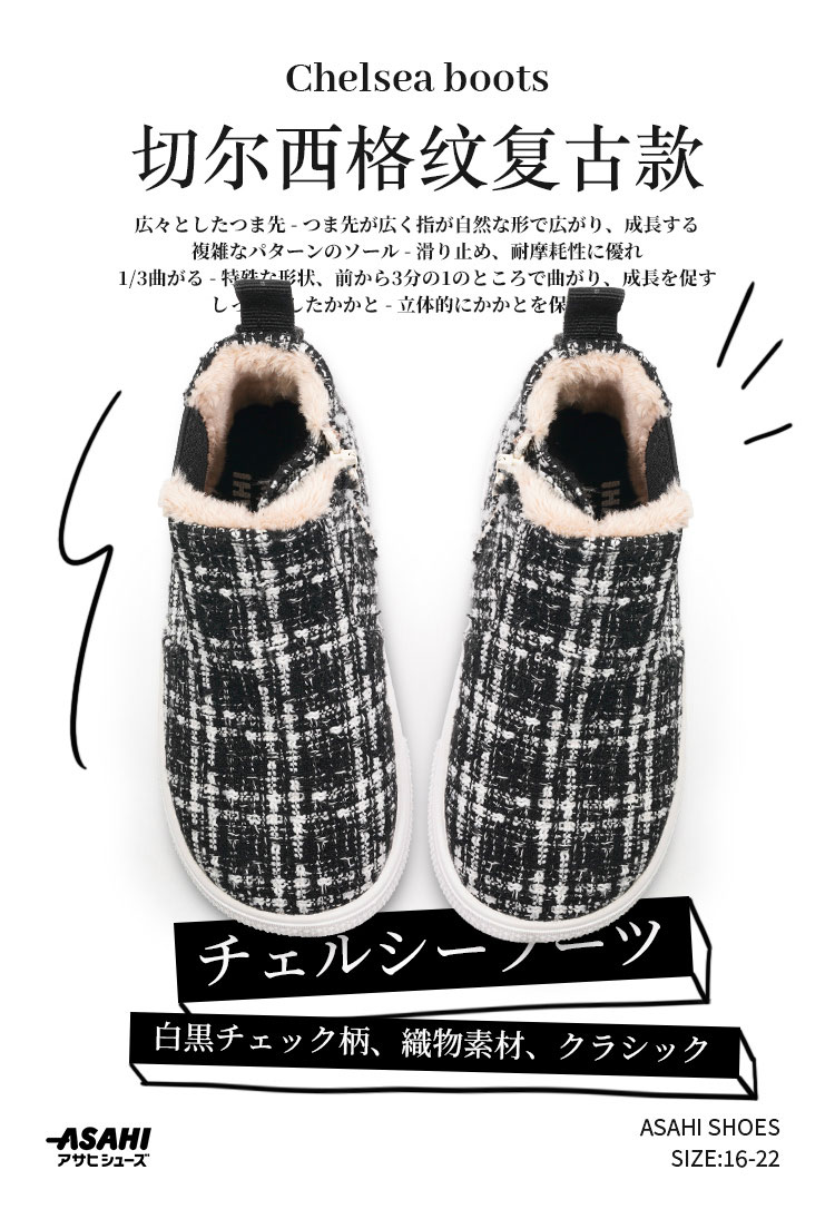 【特价抢购 非质量问题不退换】ASAHI朝日儿童秋冬鞋 编织格纹切尔西靴 黑白格纹