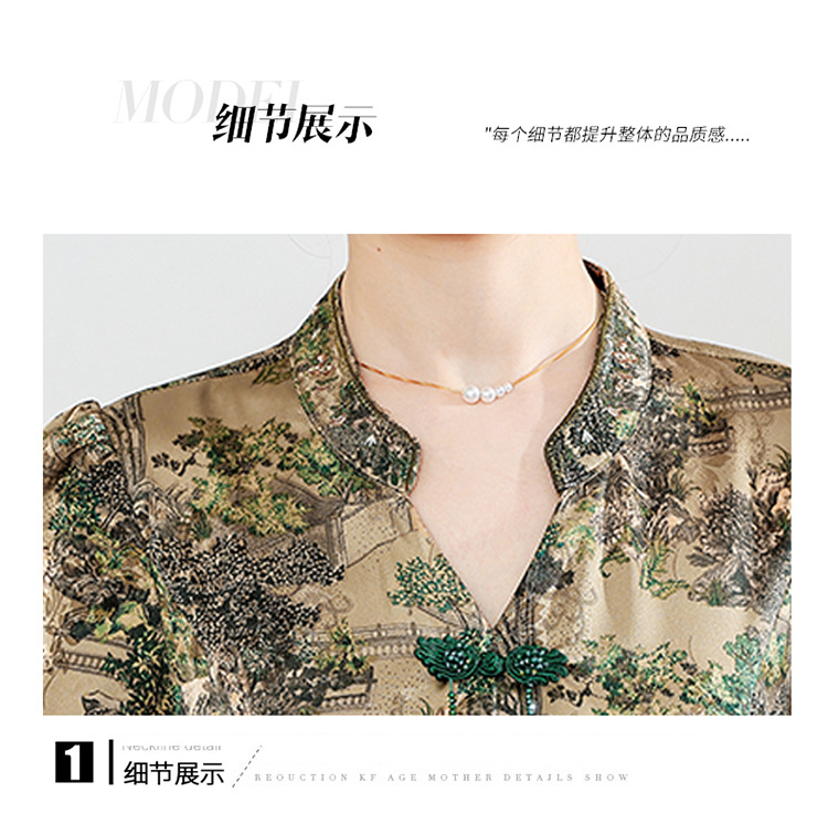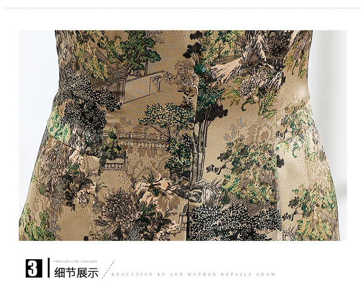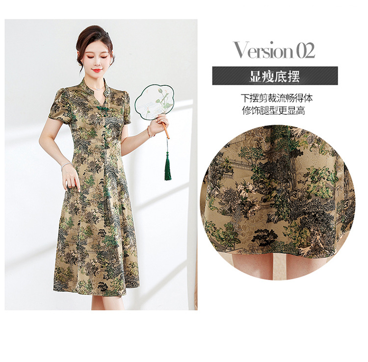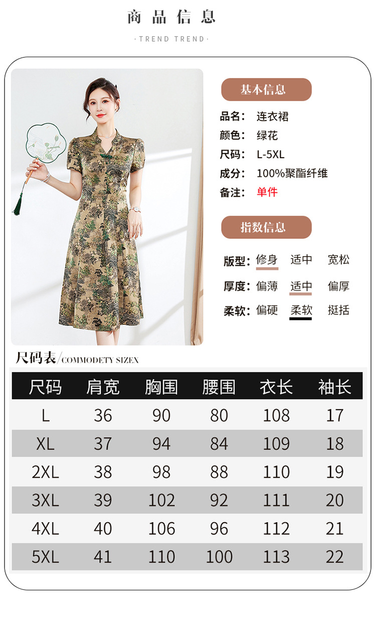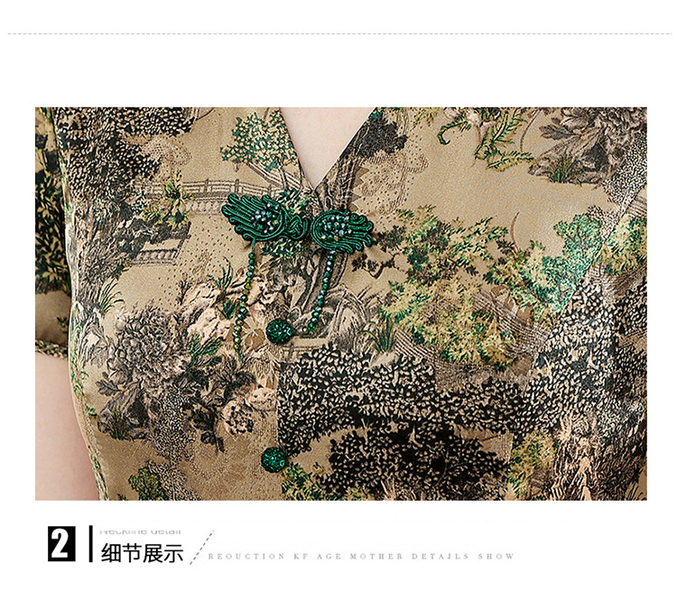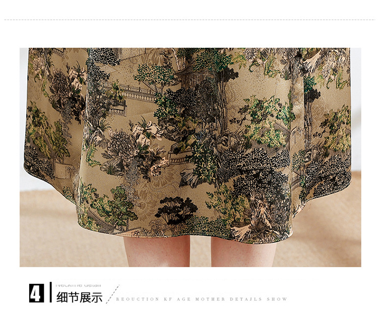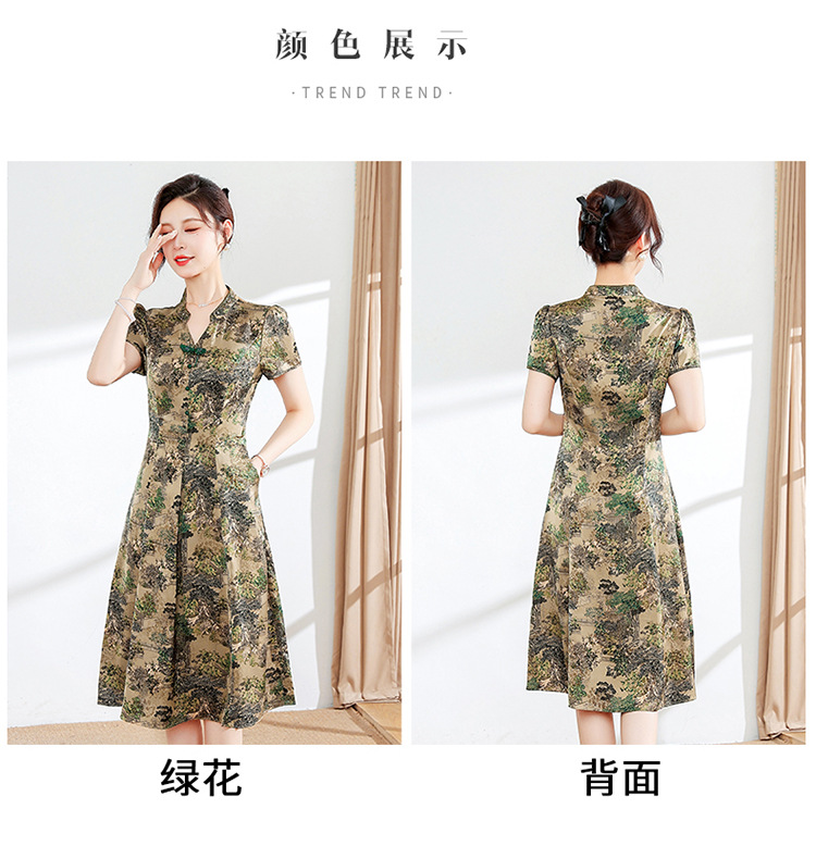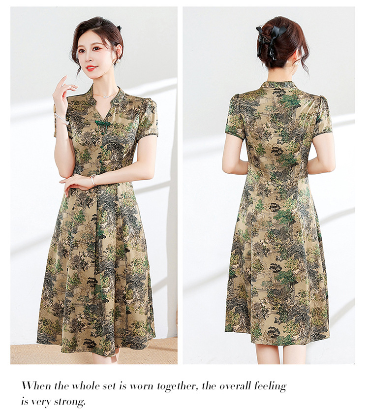 夏季印花,小V领短袖裙中年妈妈装气质中长裙复古旗袍裙QYM-YX-HY230139-Y