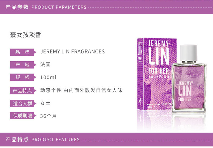 【保税仓】JEREMY LIN FRAGRANCES 林书豪香水 豪女孩香水 100ml