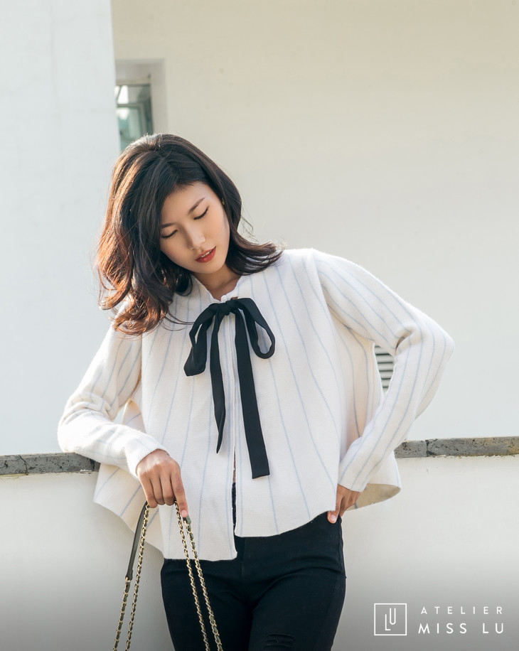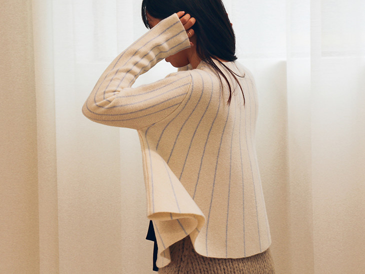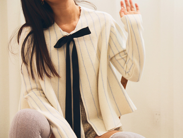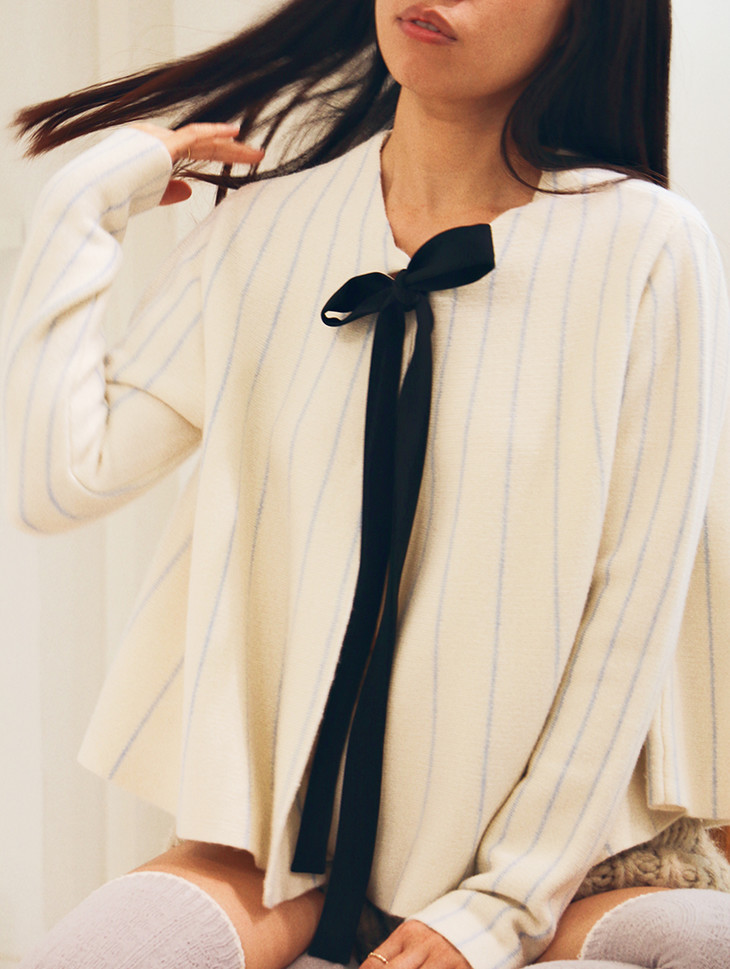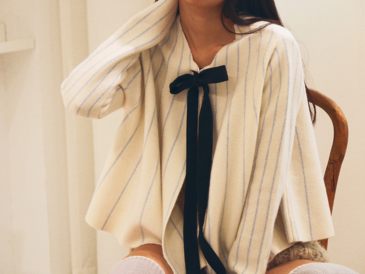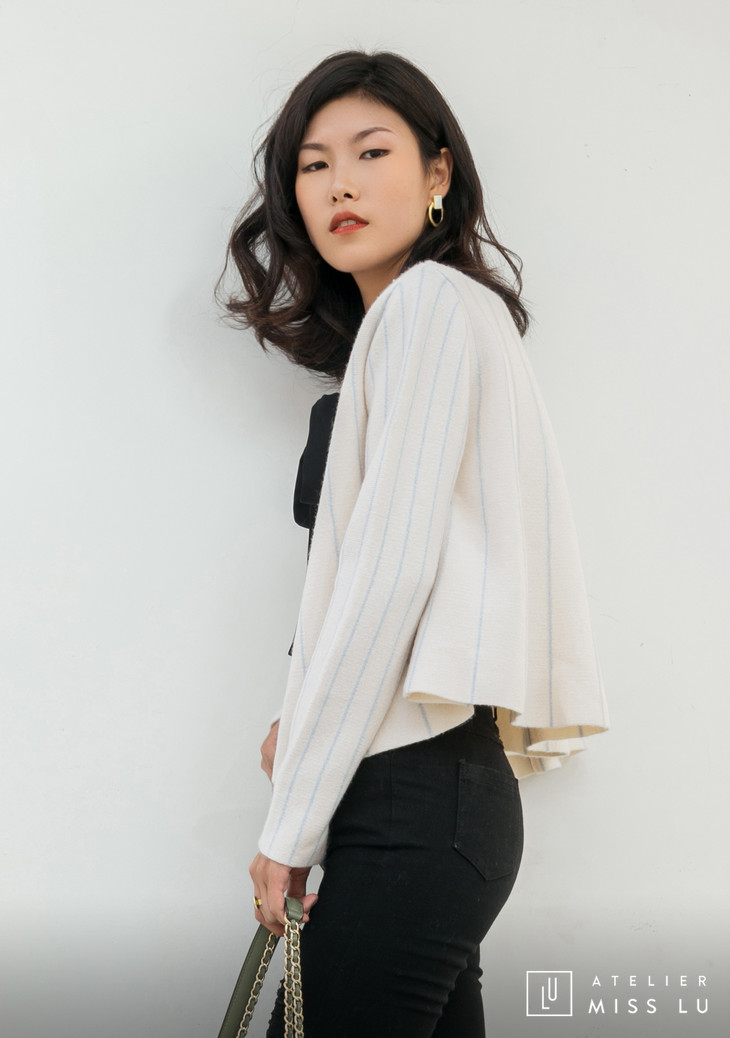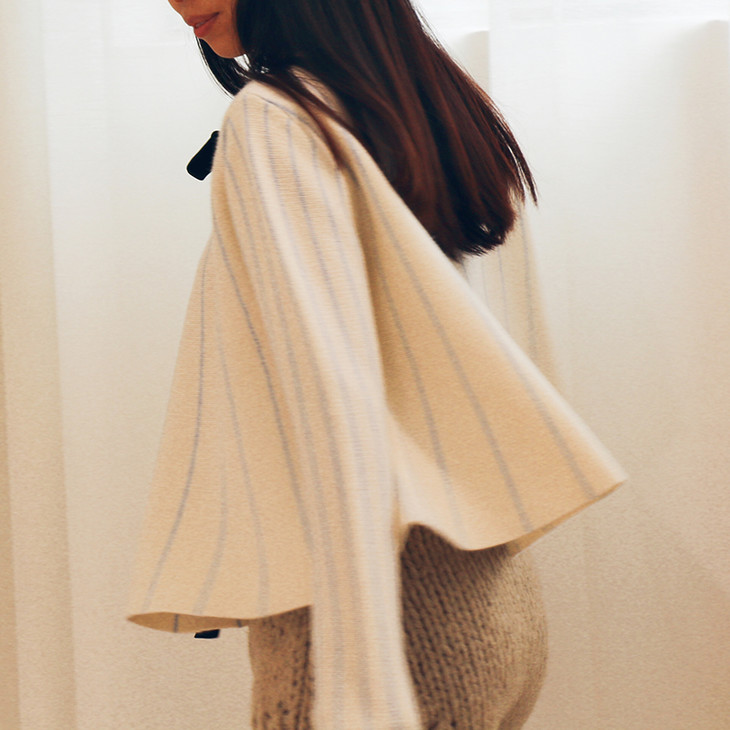 AtelierMissLu / Agnes 奶绵白前后两穿竖条扇形羊绒小斗篷