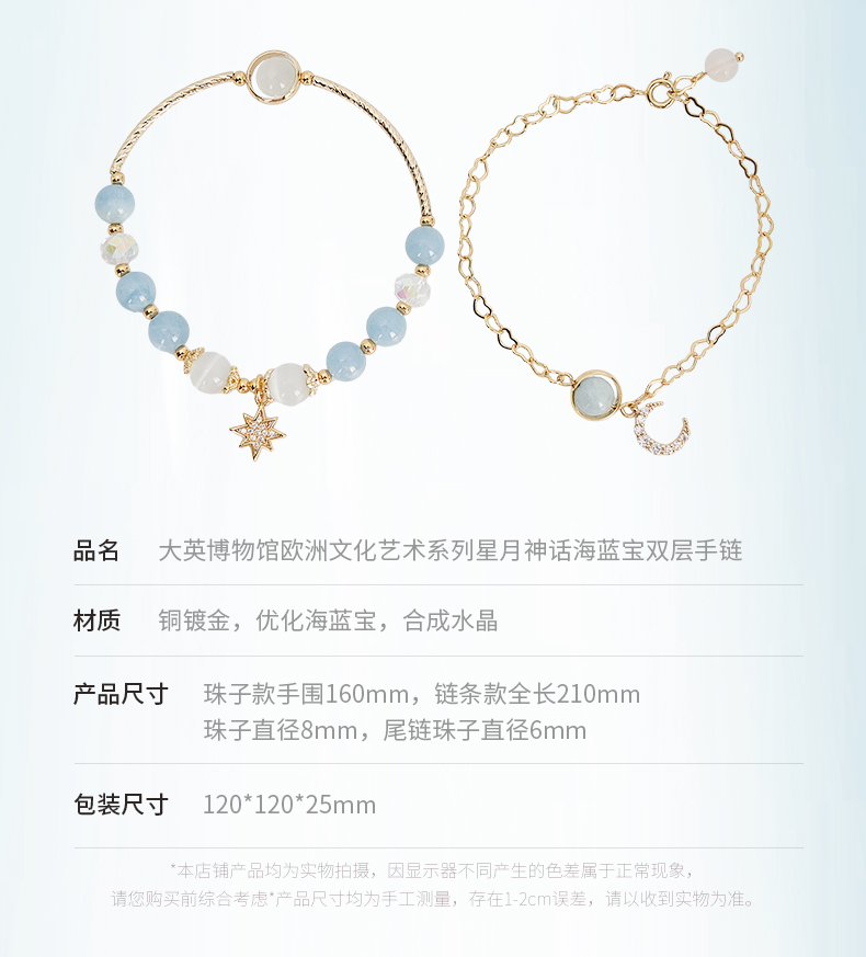 大英博物馆 欧洲文化艺术系列 星月神话海蓝宝 双层手链