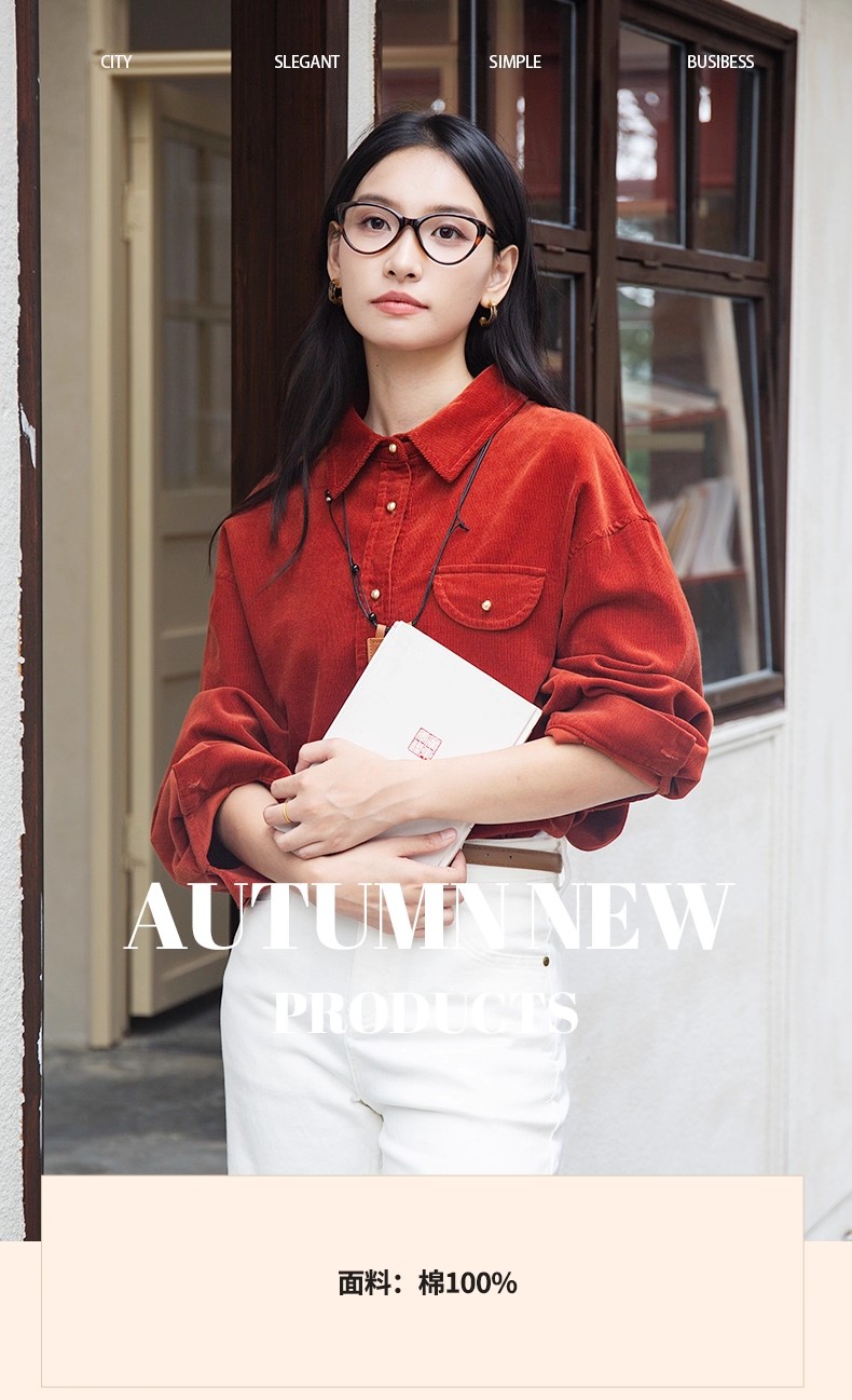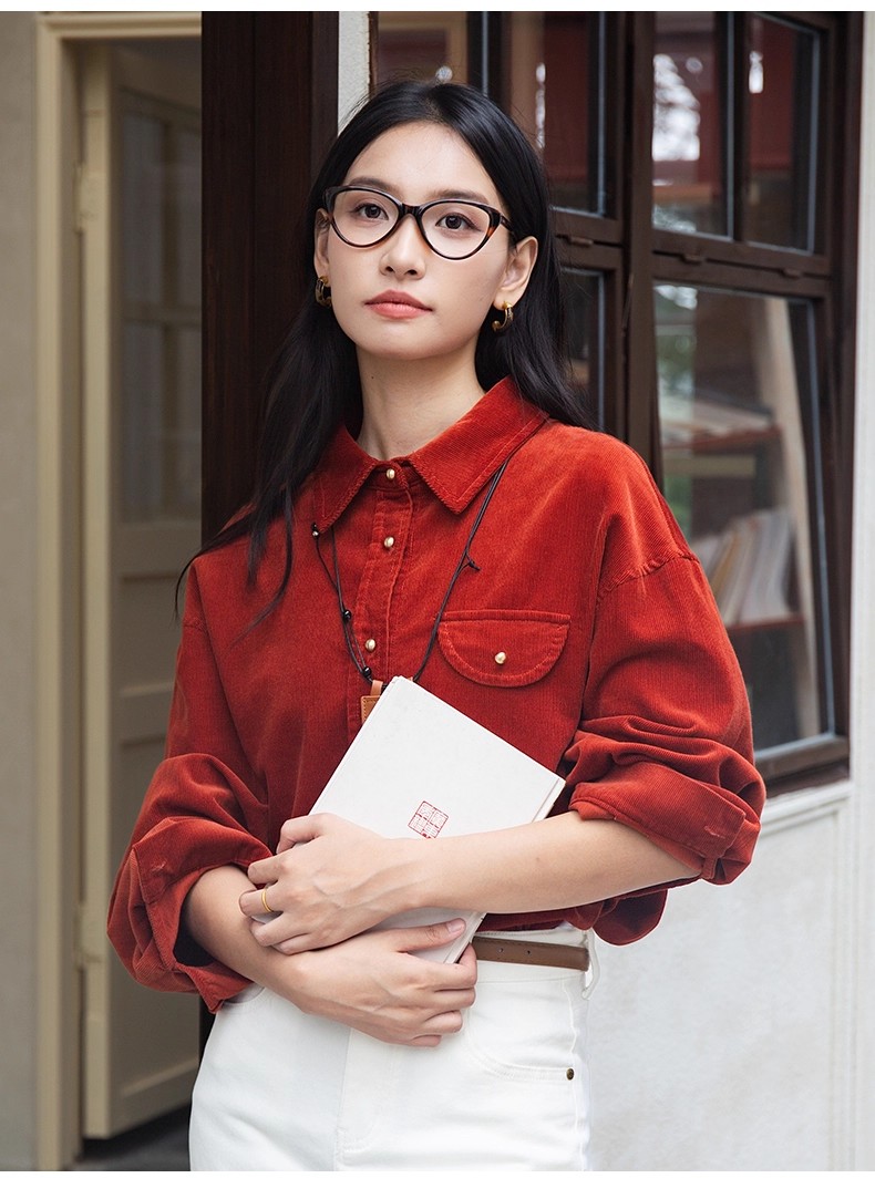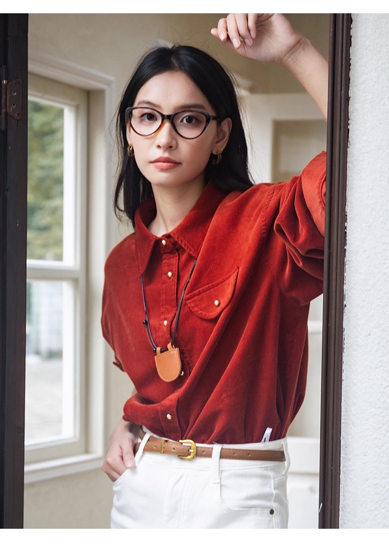 【门店同款】ENJOY冬季“暖冬知性”银扣灯芯绒衬衫 167294531