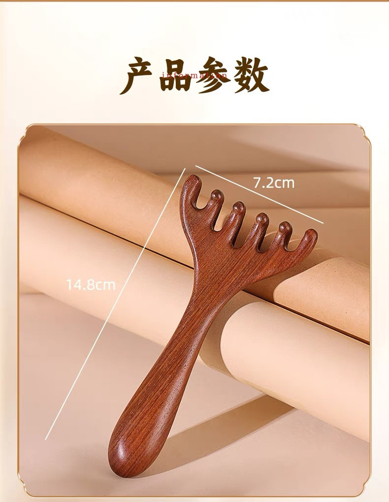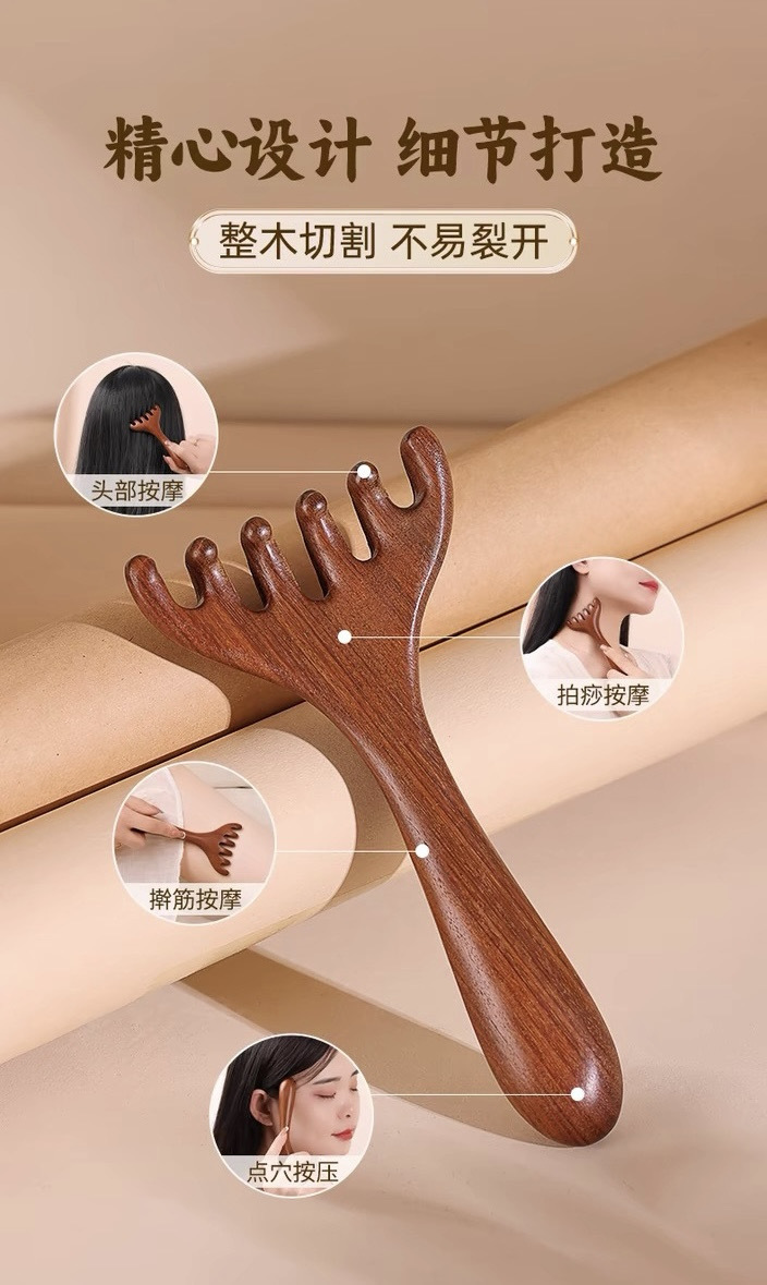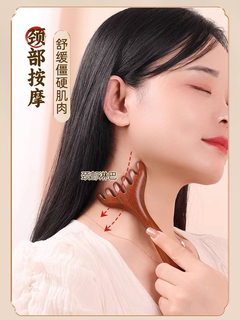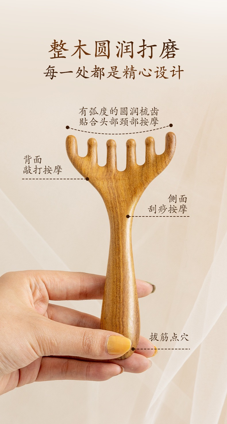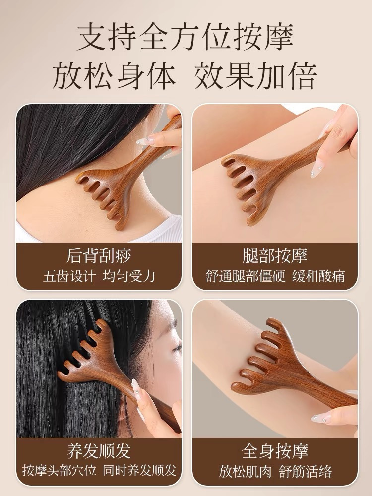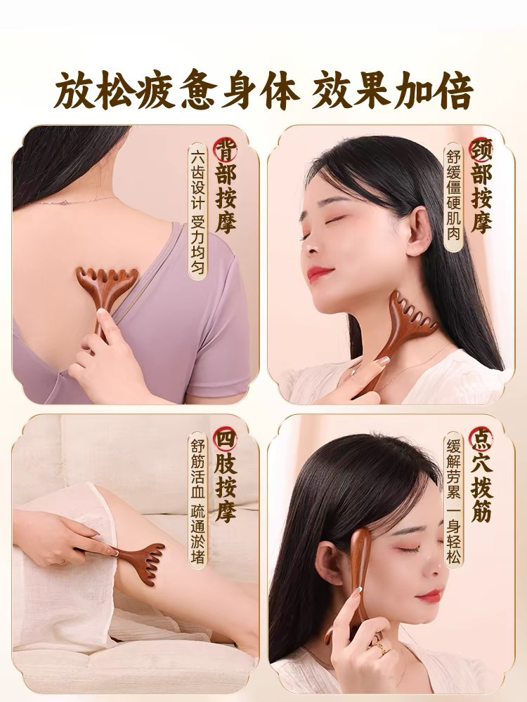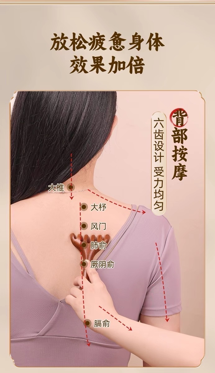 【买一送一】鹿角六齿檀木按摩梳 从头保养到脚的养生神器 A-2726