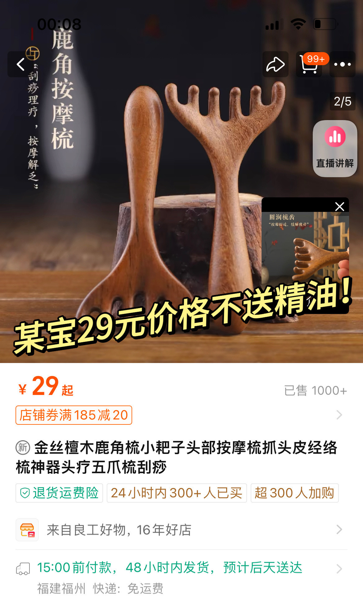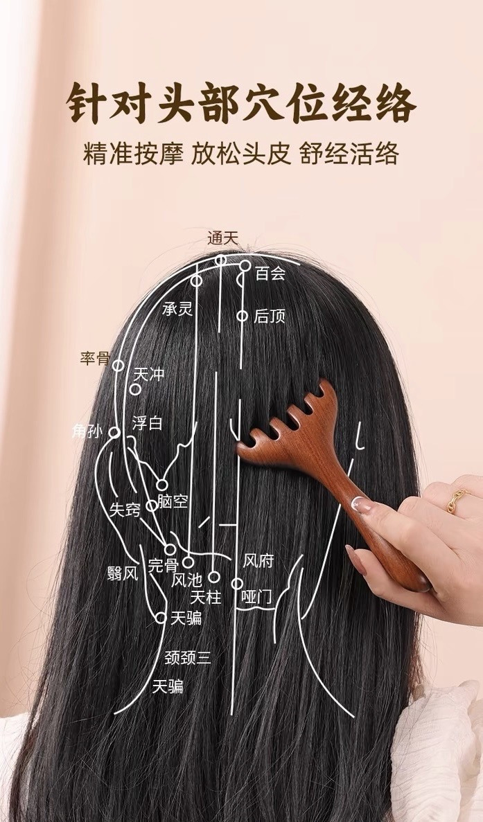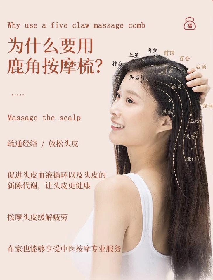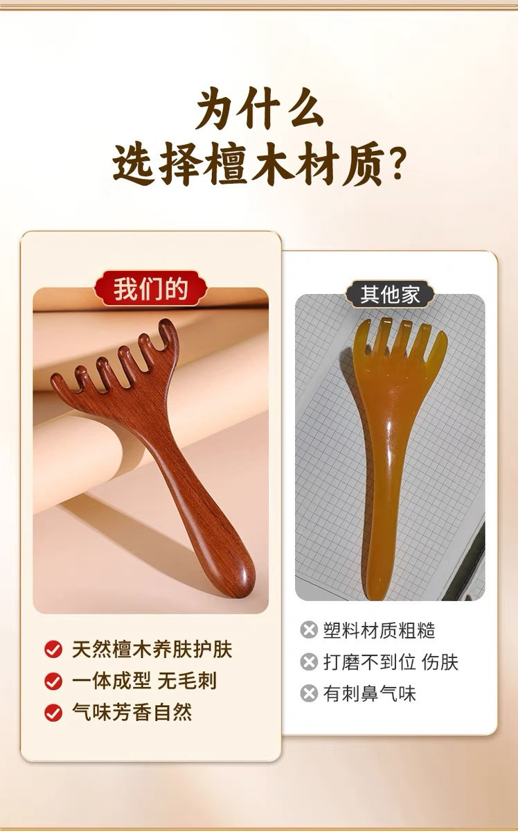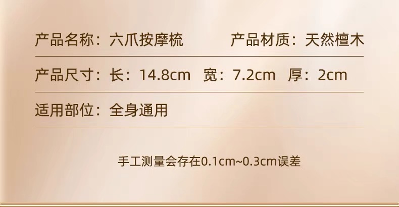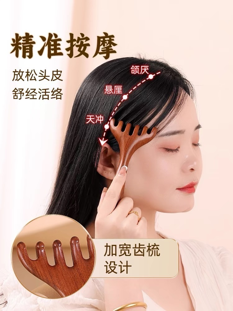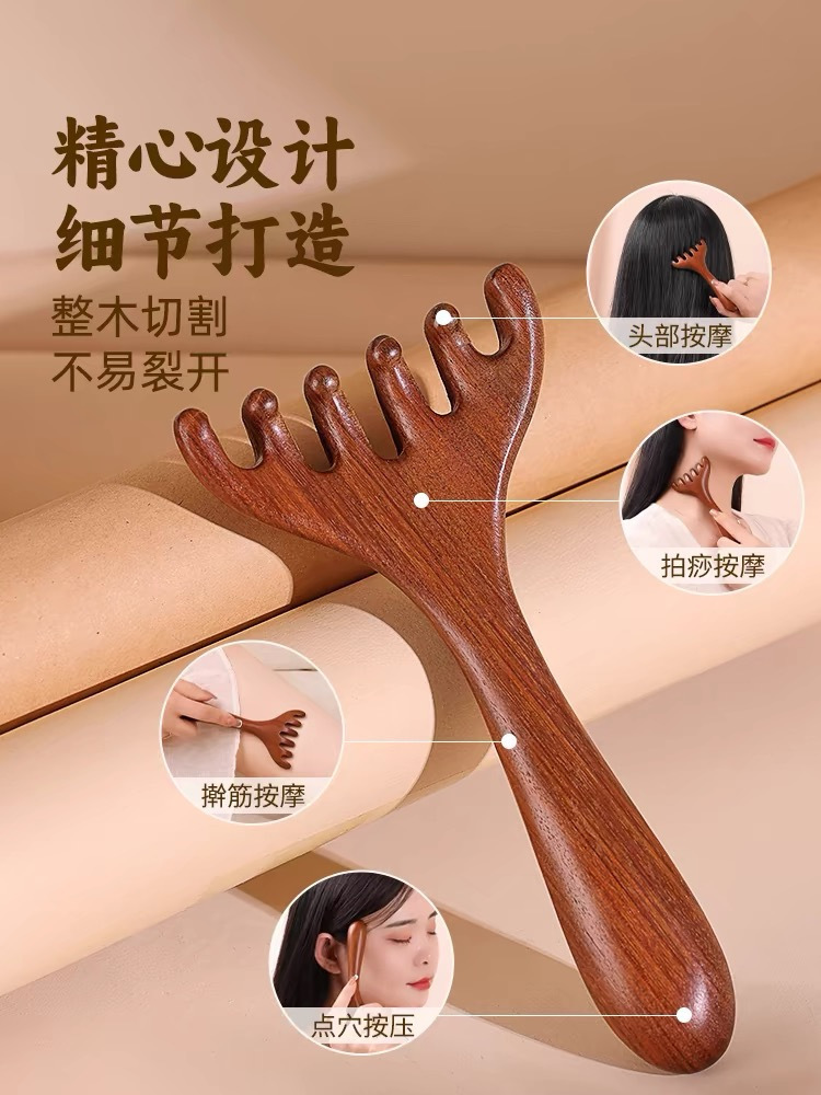 【买一送一】鹿角六齿檀木按摩梳 从头保养到脚的养生神器 A-2726