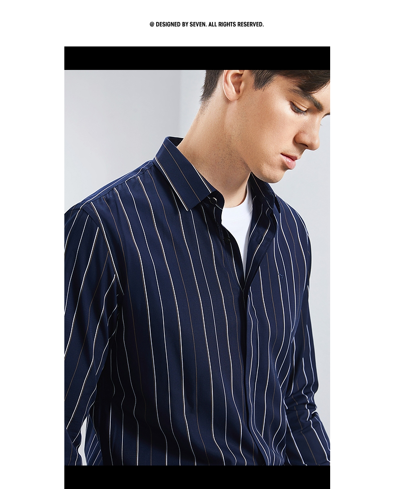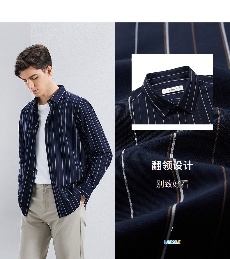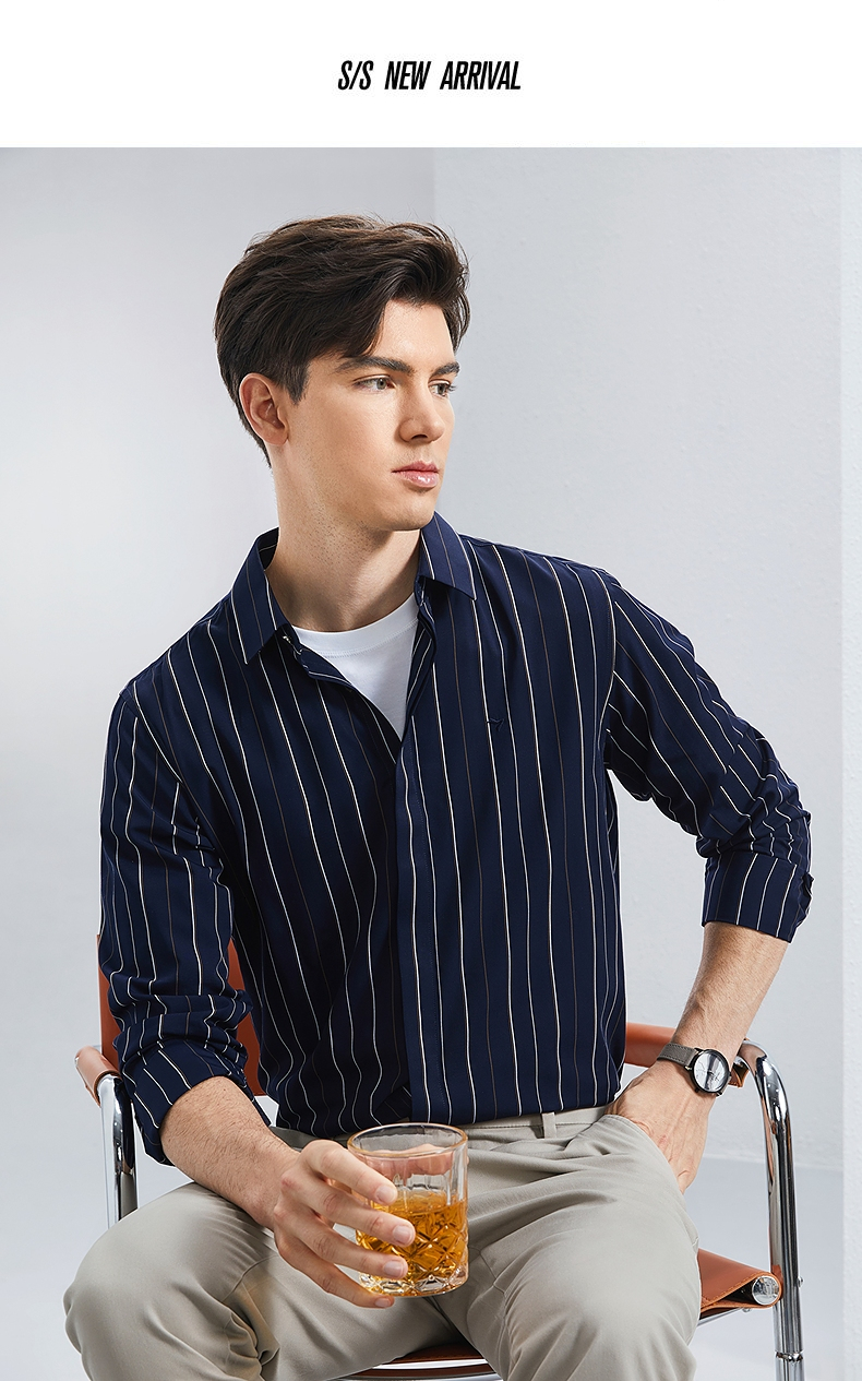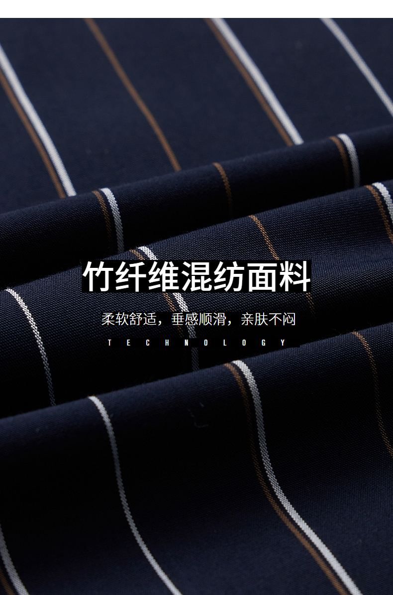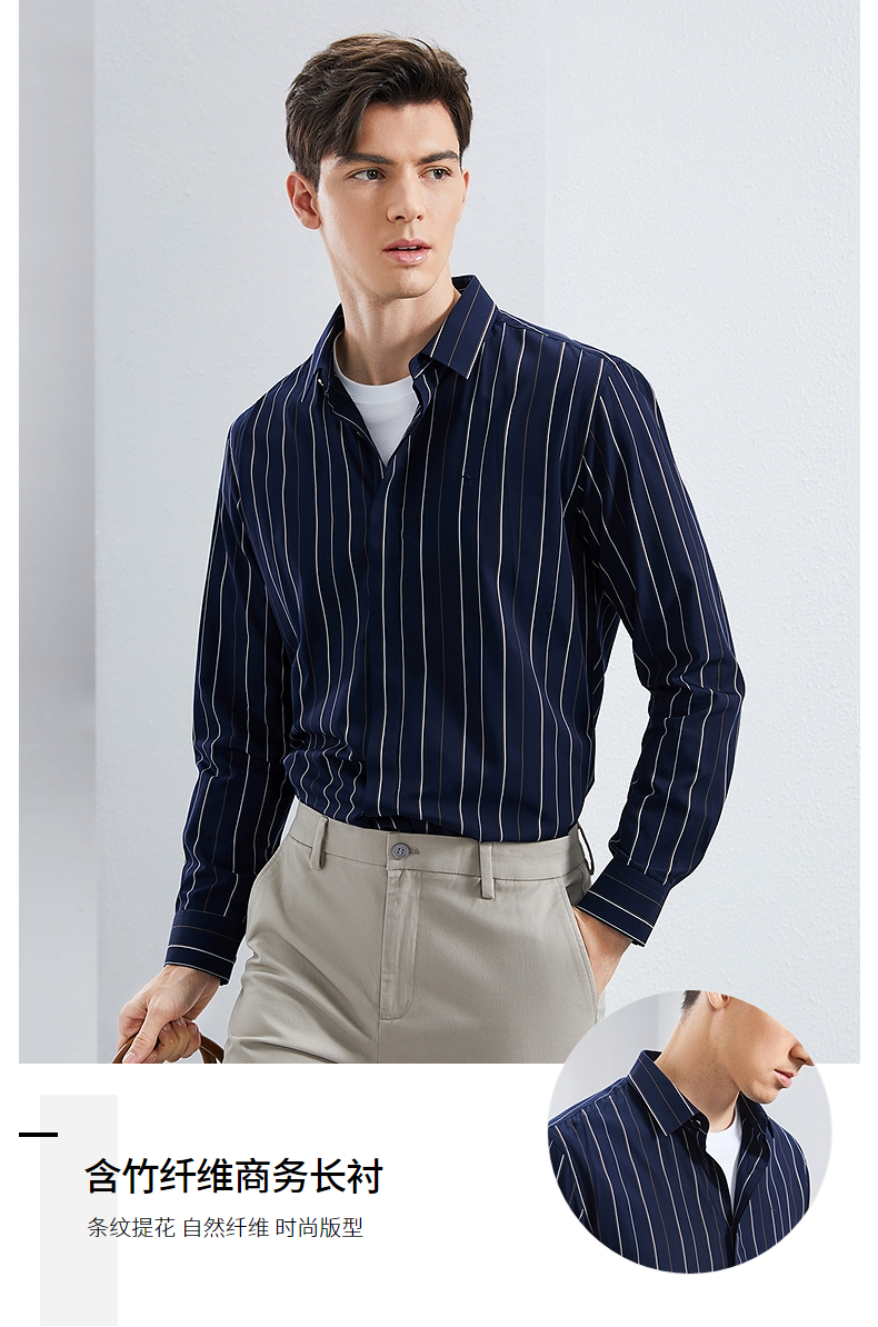 【含竹纤维】柒牌男装长袖衬衫春秋新款撞色条纹商务休闲方领衬衣 126A70660