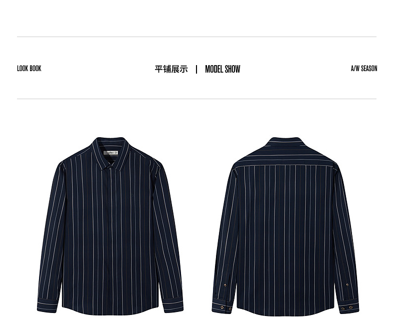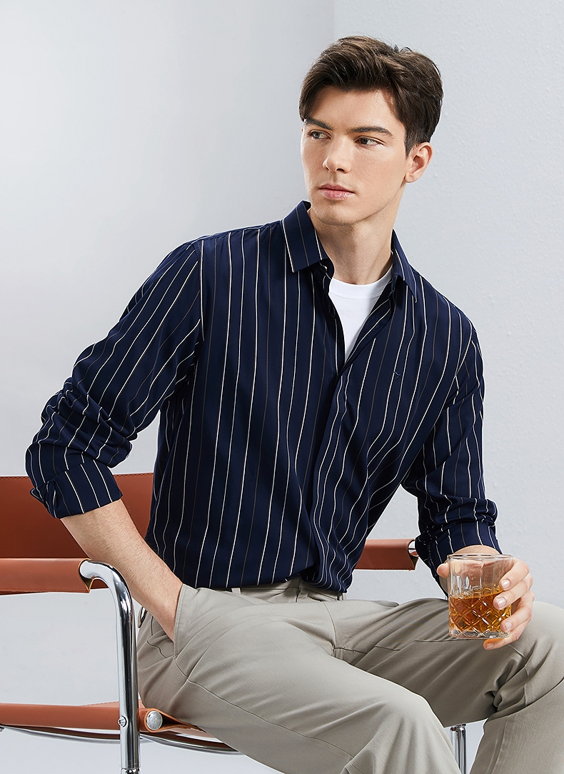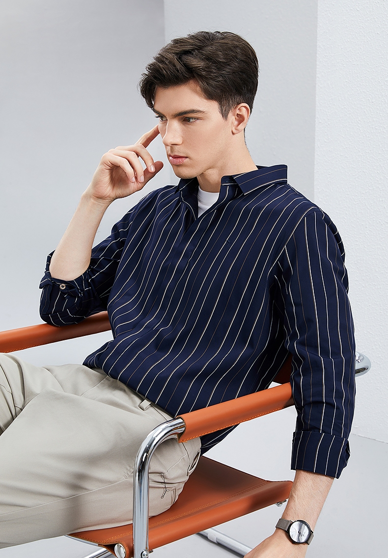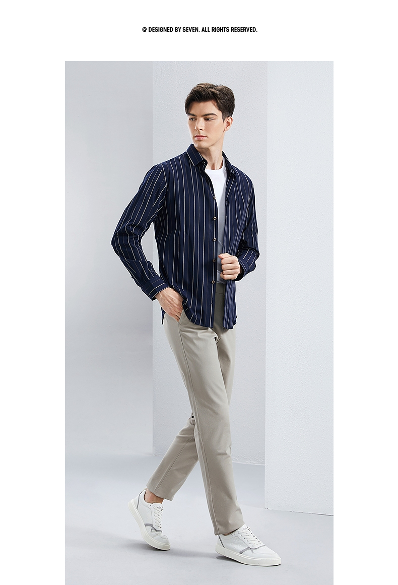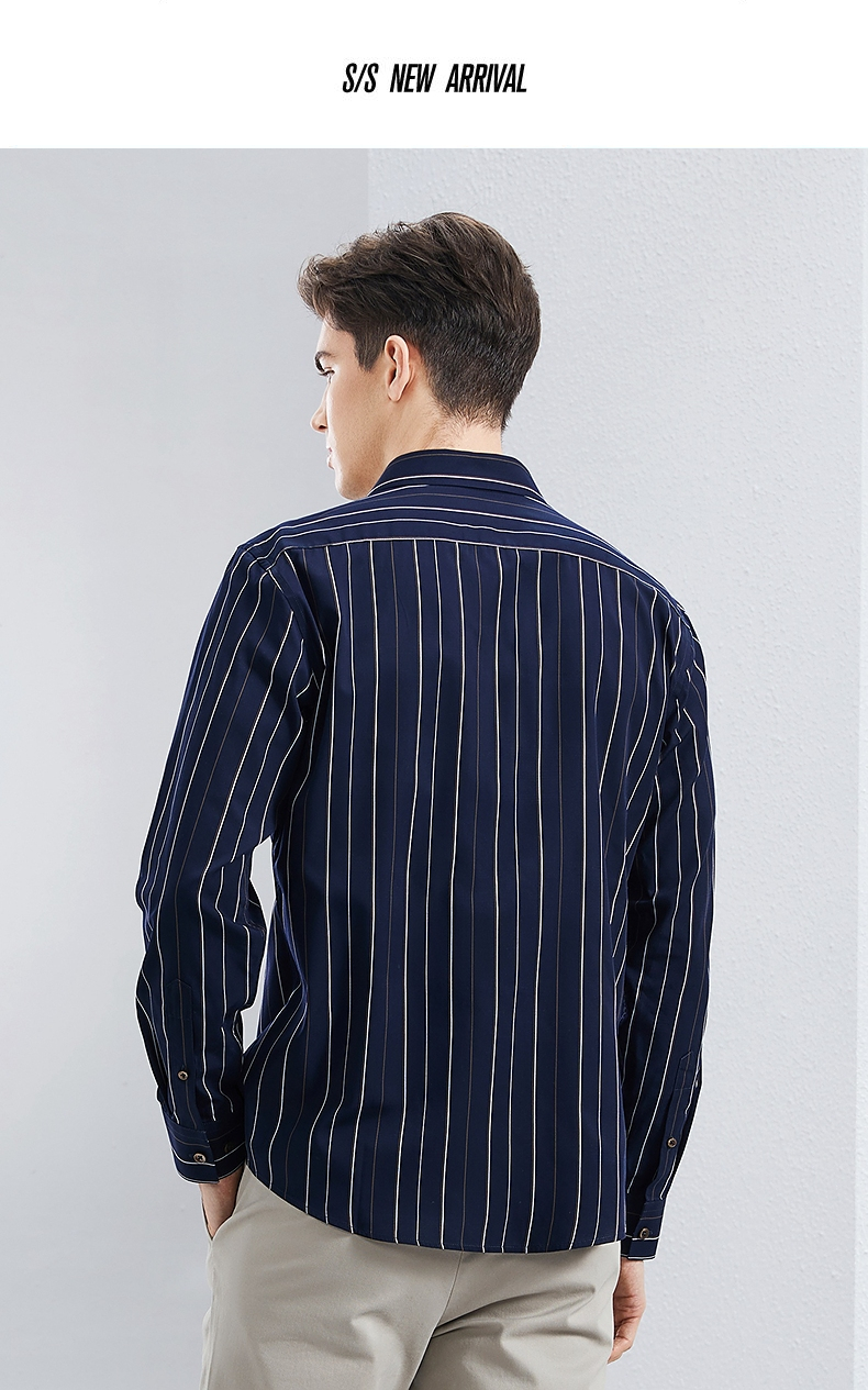 【含竹纤维】柒牌男装长袖衬衫春秋新款撞色条纹商务休闲方领衬衣 126A70660
