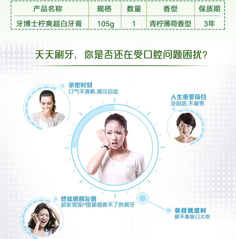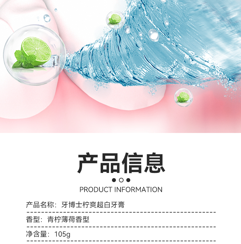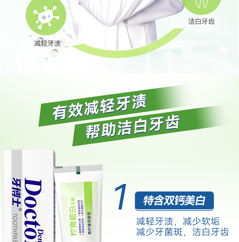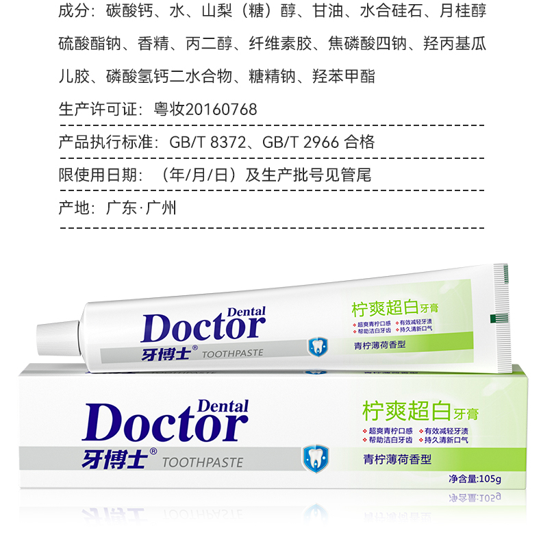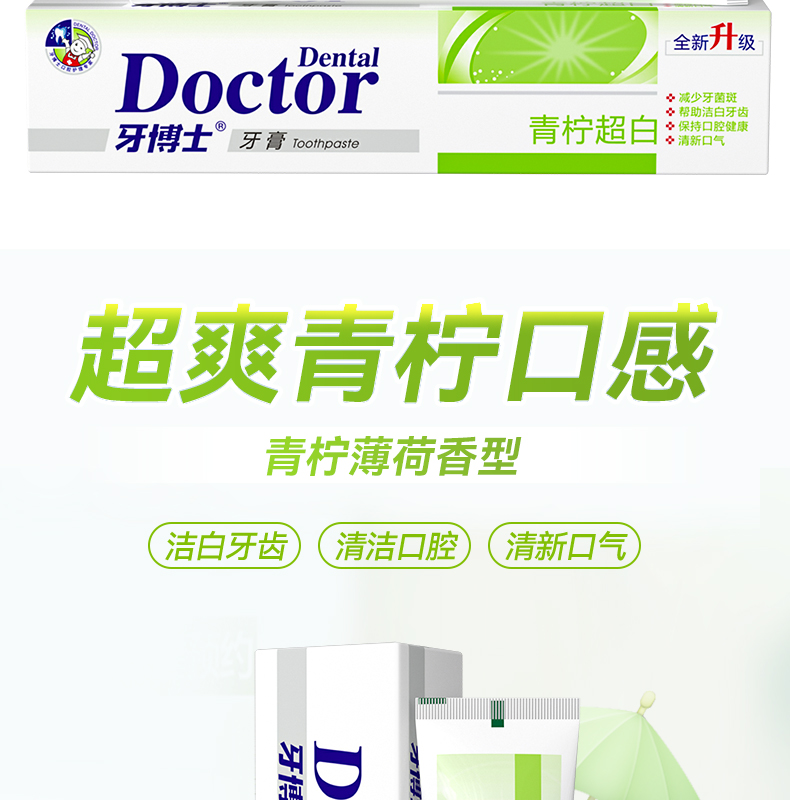 牙博士柠爽超白牙膏 105g 青柠薄荷香型
