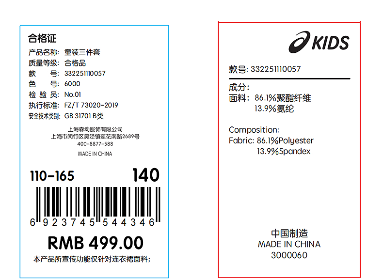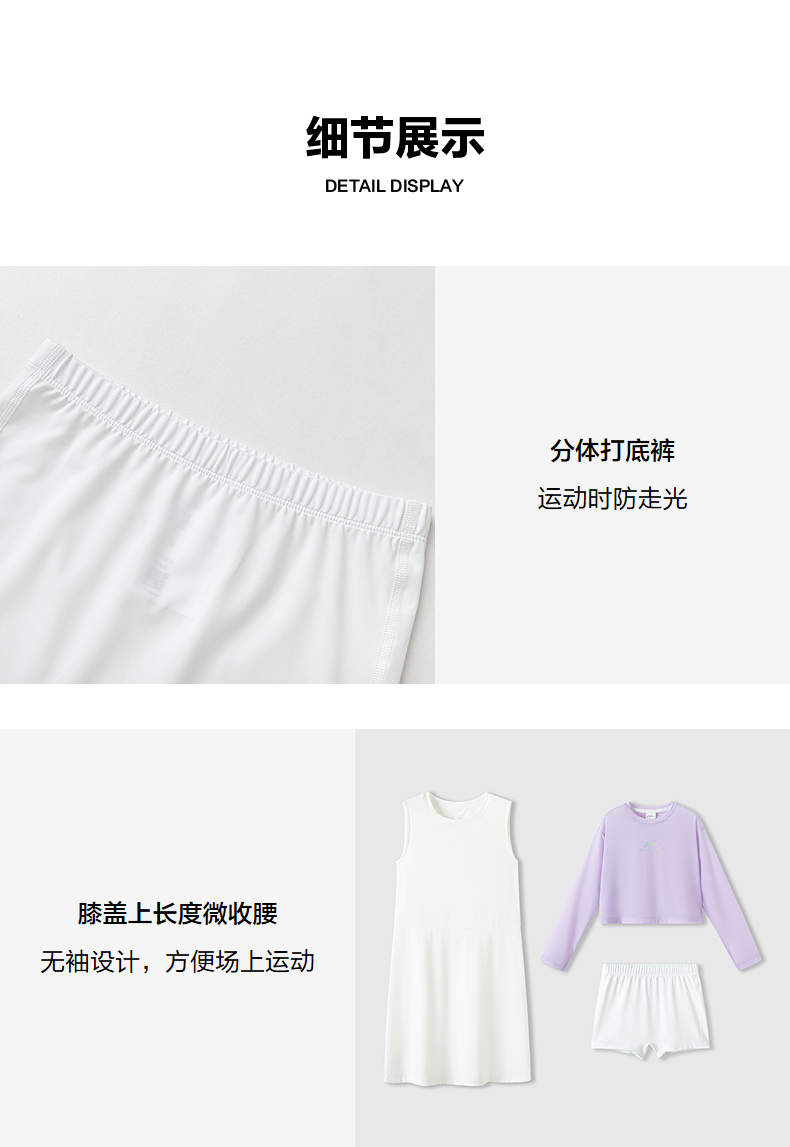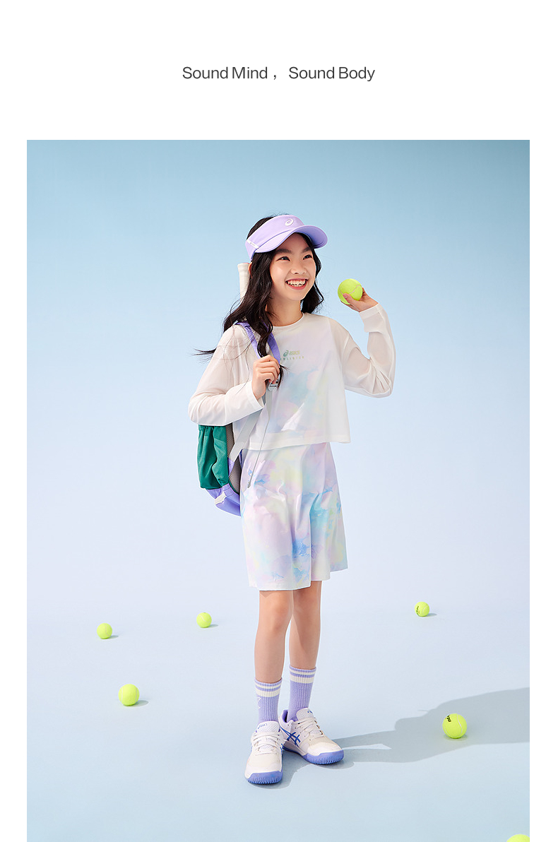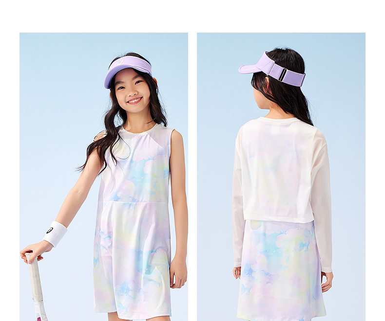 ASICS/亚瑟士童装25年夏季新款女童印花针织弹力透气连衣裙三件套