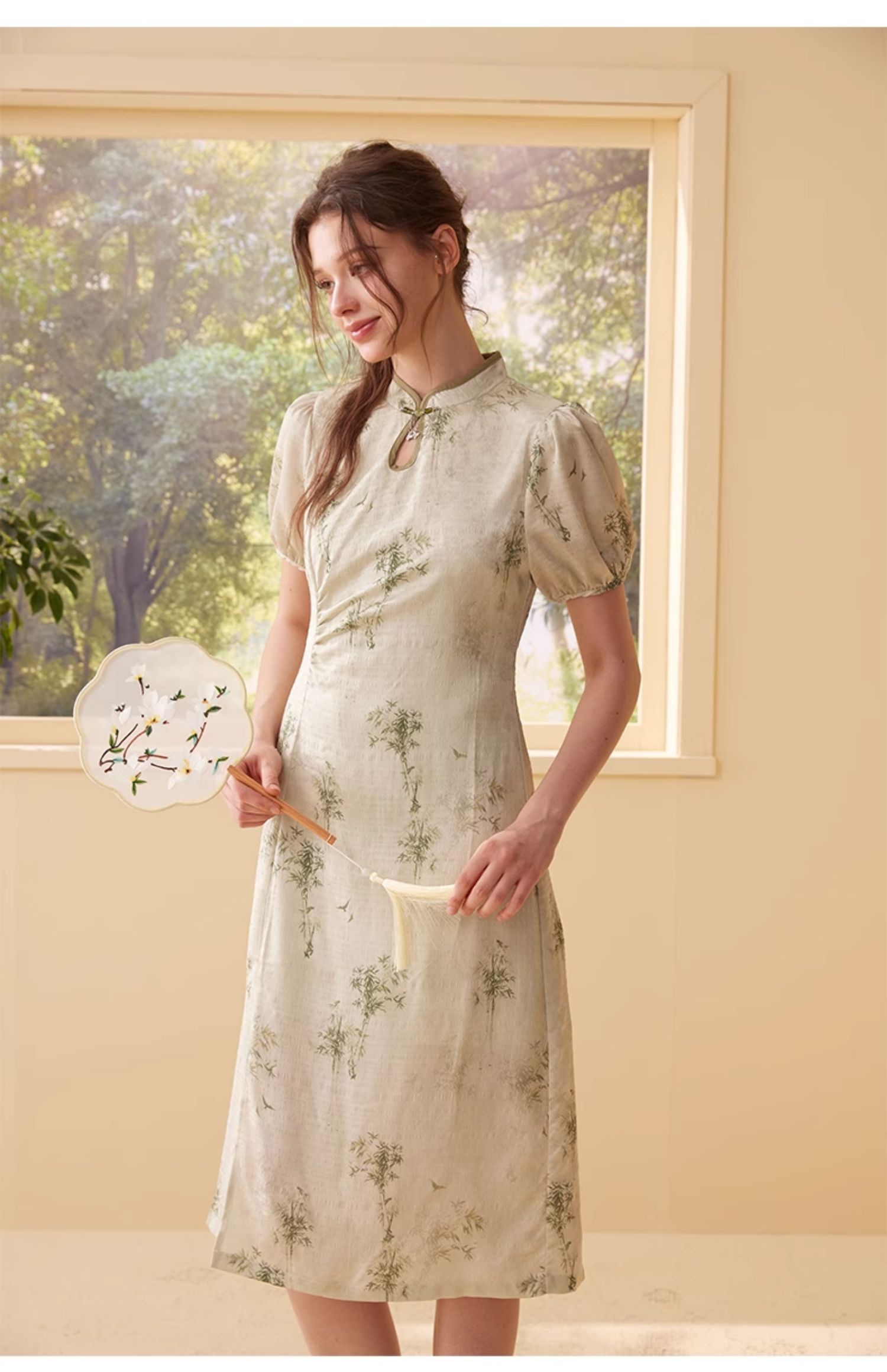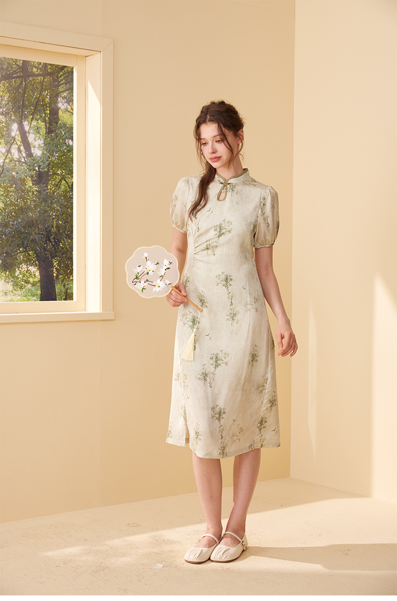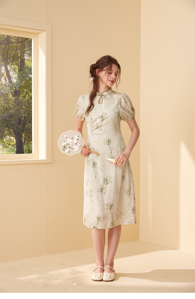 mc2复古新中式国风盘扣改良收腰连衣裙女装2024夏季新款时尚显瘦