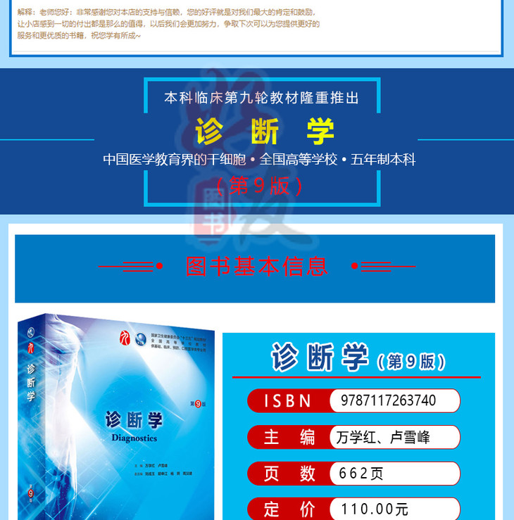 诊断学第9九版 万学红搭配内科外科妇产儿科本科临床教材 诊断学理论与基础 第9轮 人民卫生出版社9787117263740
