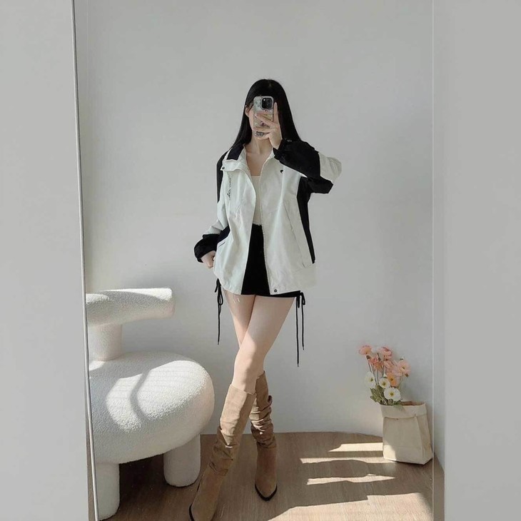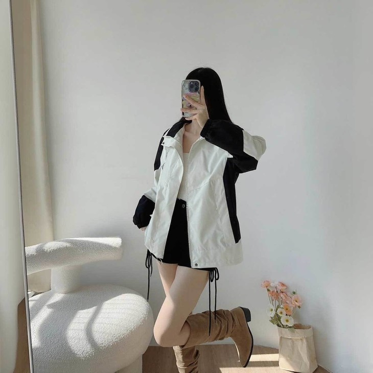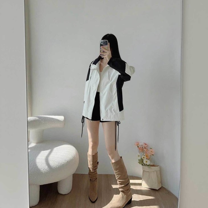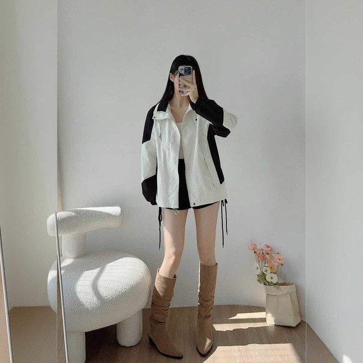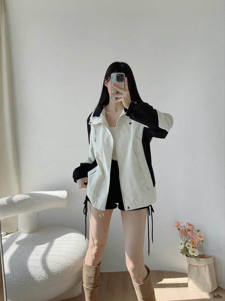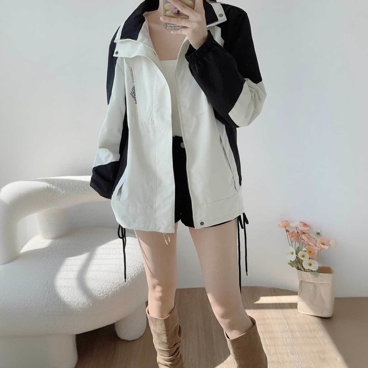 黑白撞色不可否认是不会出错的颜色,休闲、耐看、百搭,不挑身材不挑人, 长度刚好在大腿的位置,显得腿又细又长。