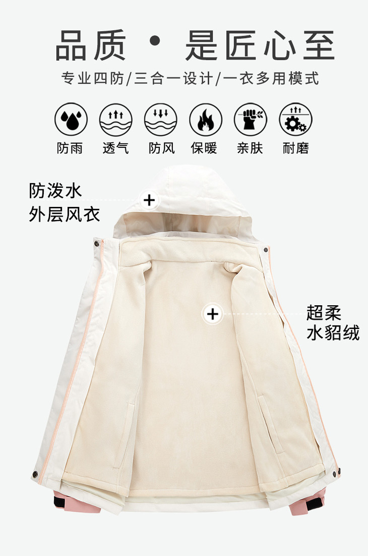 内胆通过拉链和外套连接,穿脱方便,脱下来可以单独当作粒绒的外套来穿