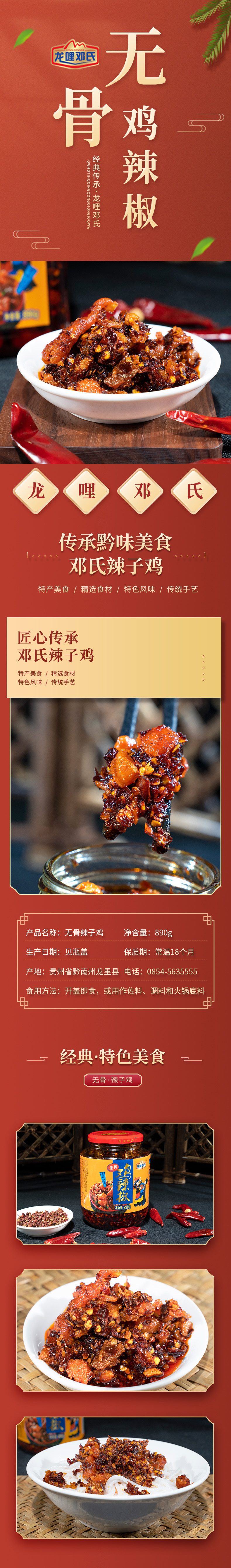 【黔南好物】龙哩邓氏无骨鸡辣椒 罐装890g 【厂家直发】
