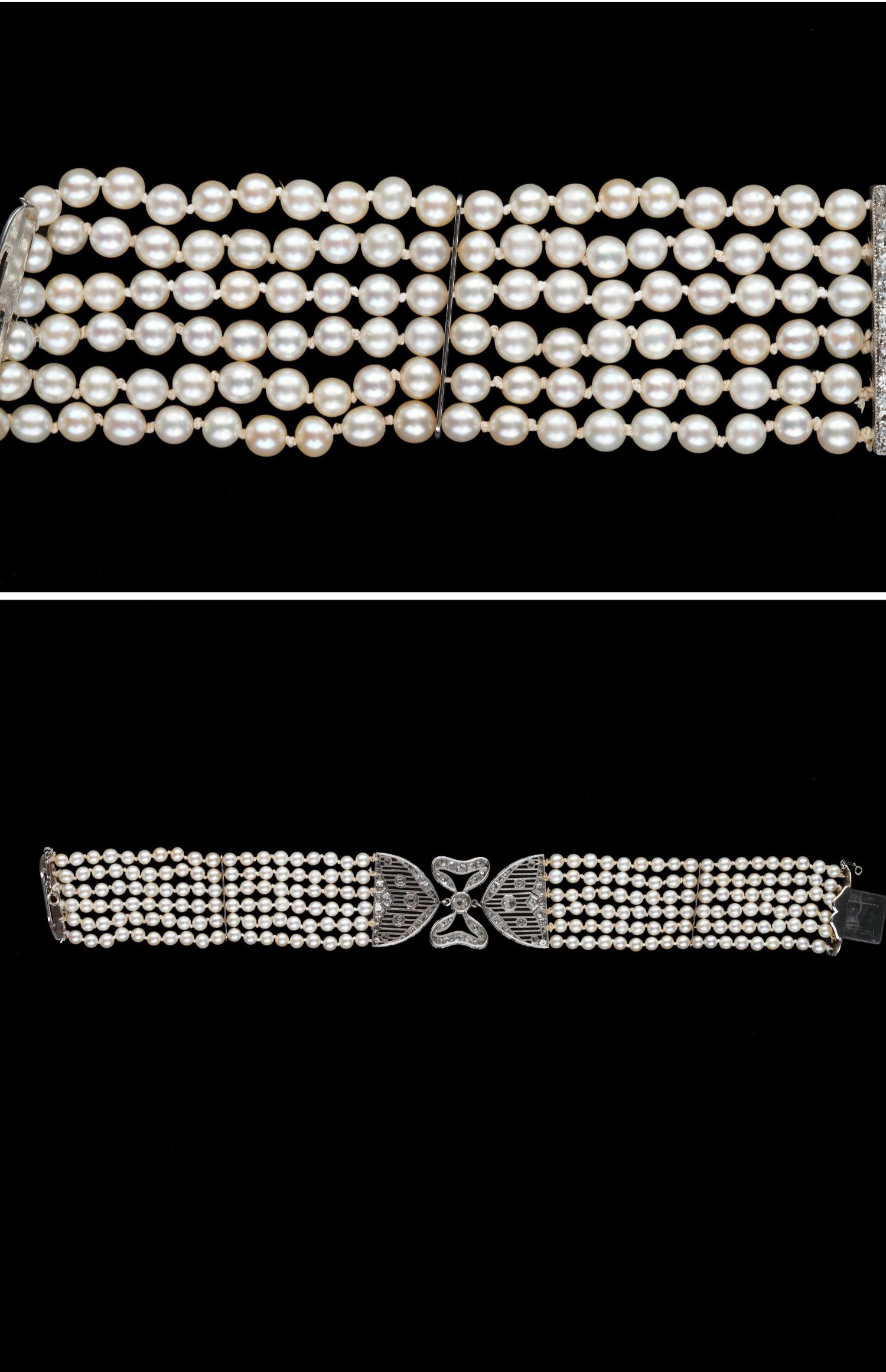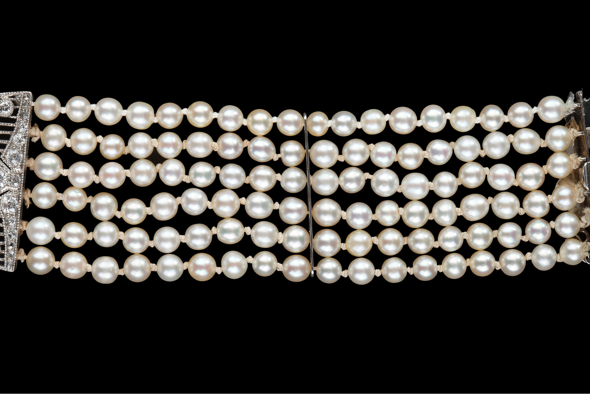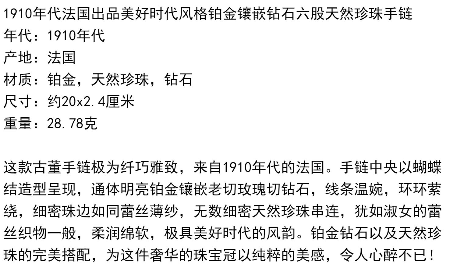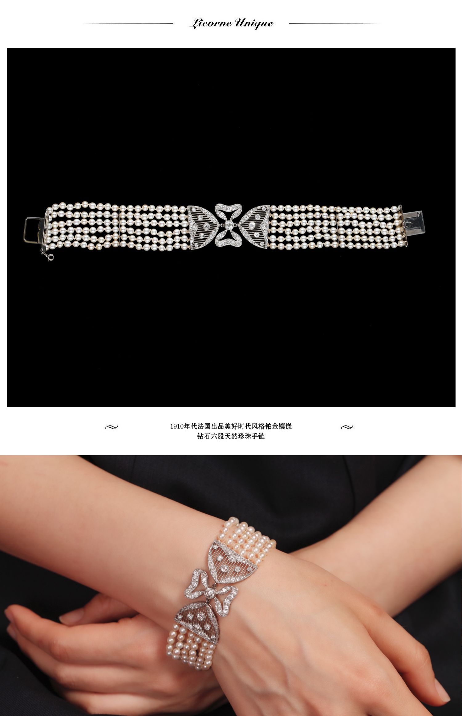 独角鹿西洋古董珠宝法国美好时代铂金镶嵌钻石六股天然珍珠手链
