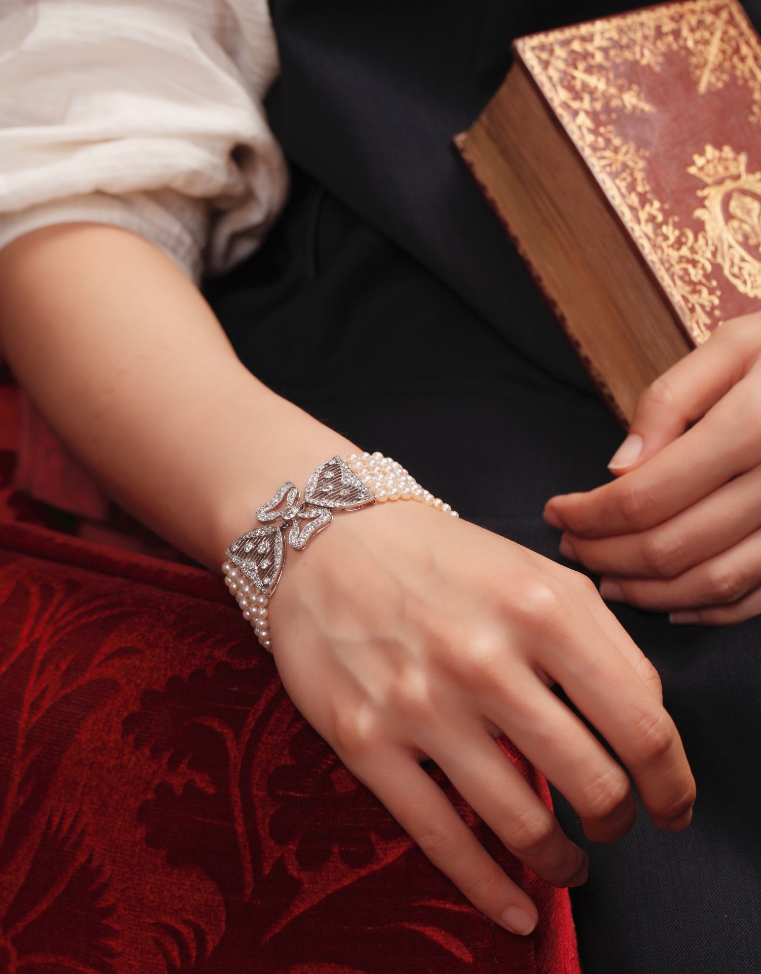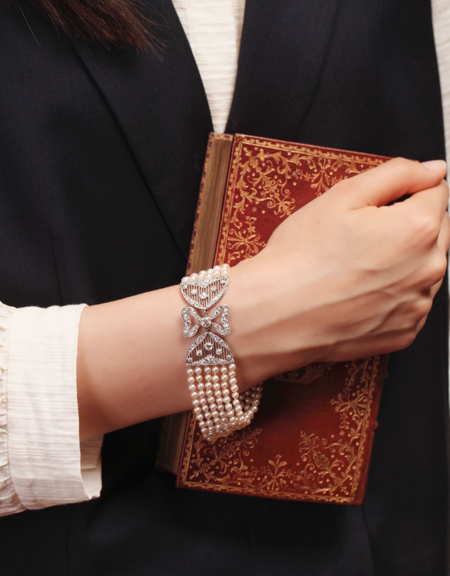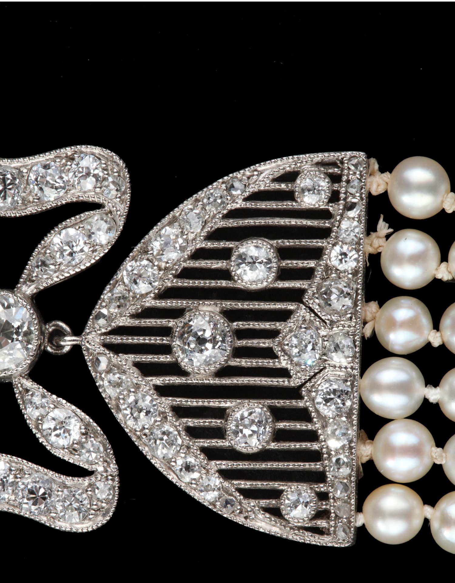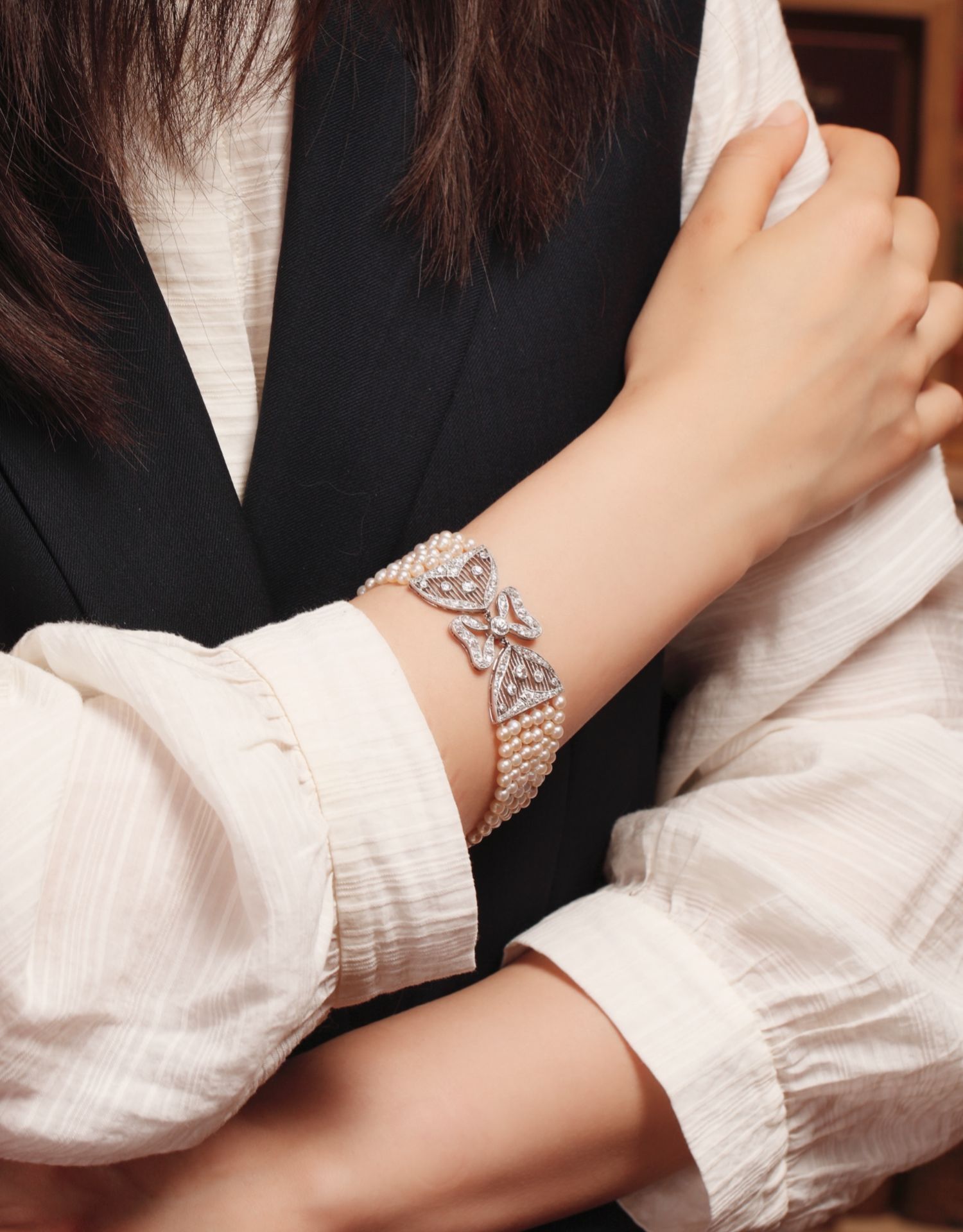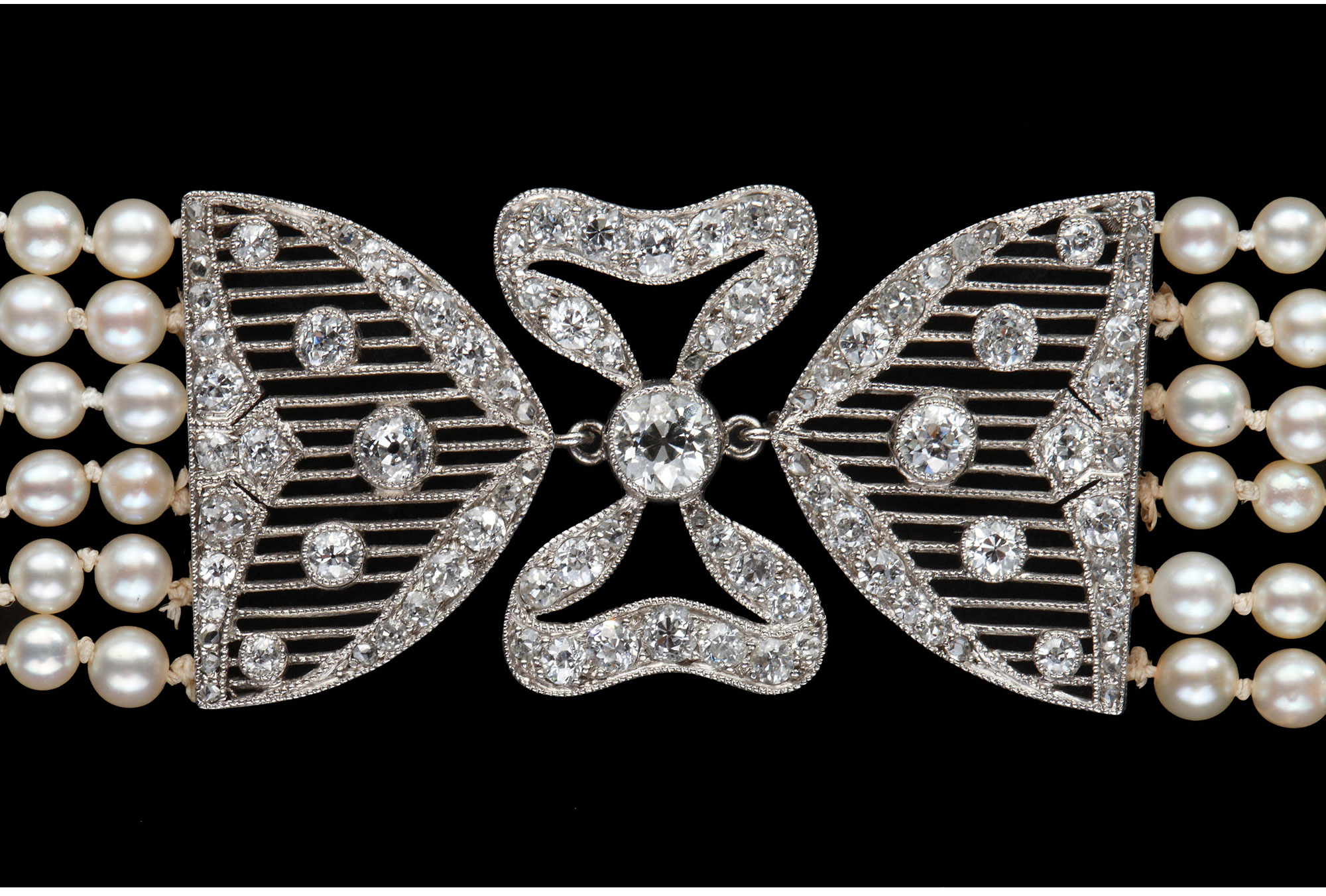 独角鹿西洋古董珠宝法国美好时代铂金镶嵌钻石六股天然珍珠手链