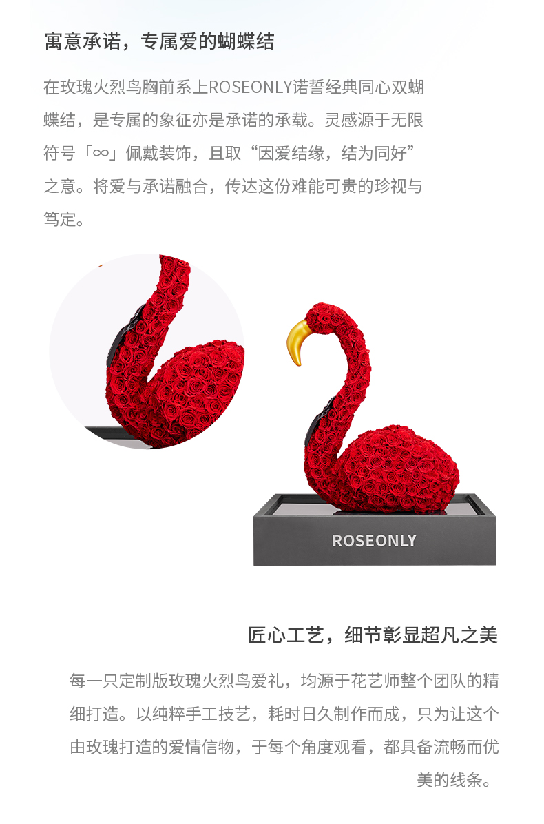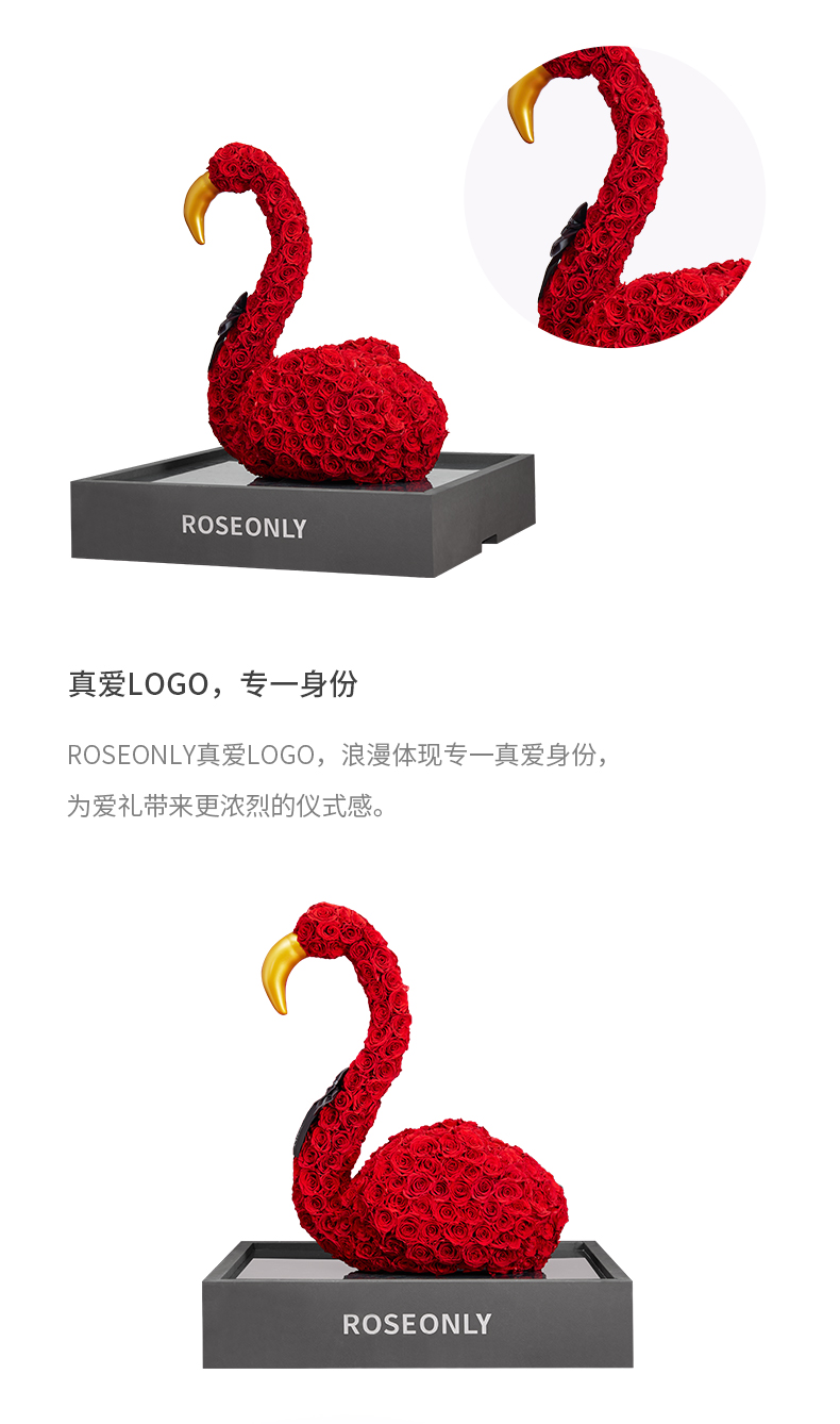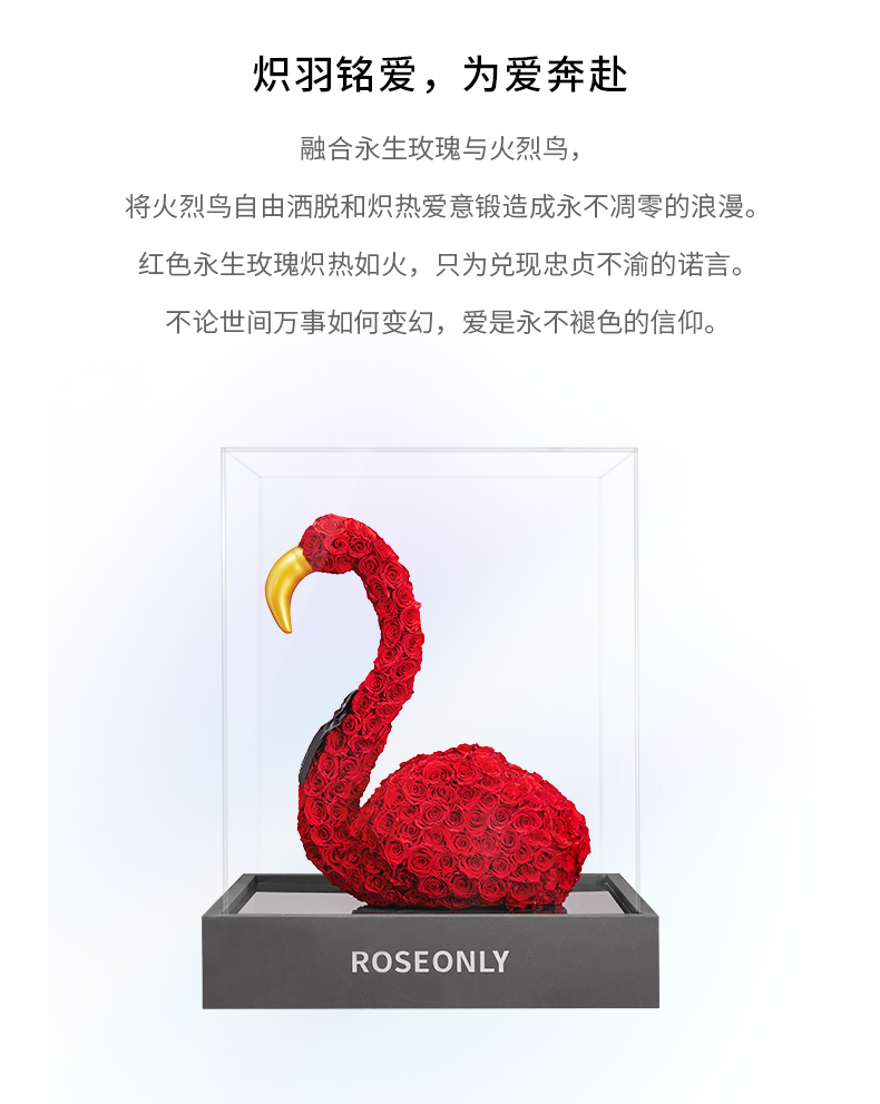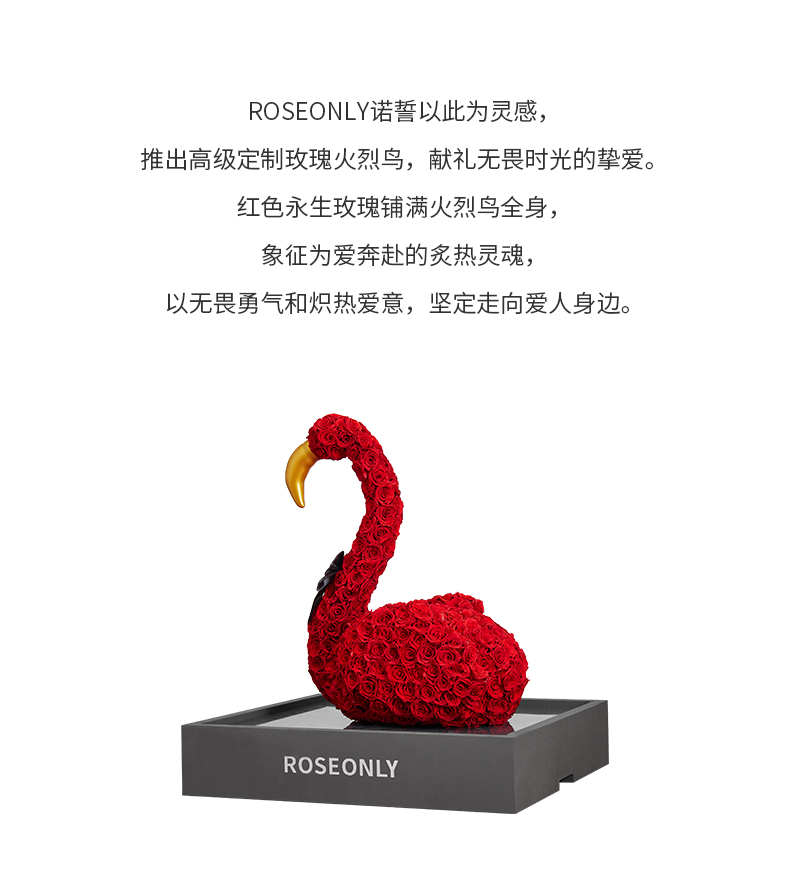 【新品爱礼】ROSEONLY诺誓 高端定制 永生玫瑰 公仔系列 玫瑰火烈鸟 送朋友 情人节礼物