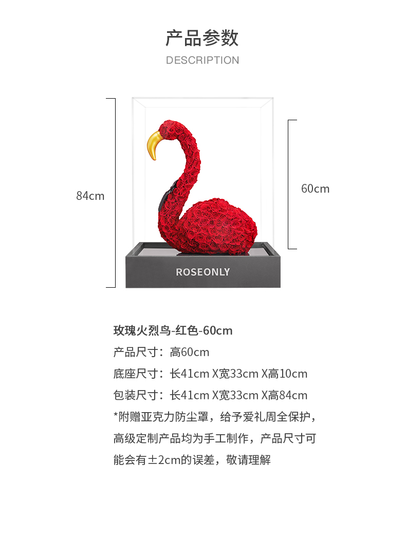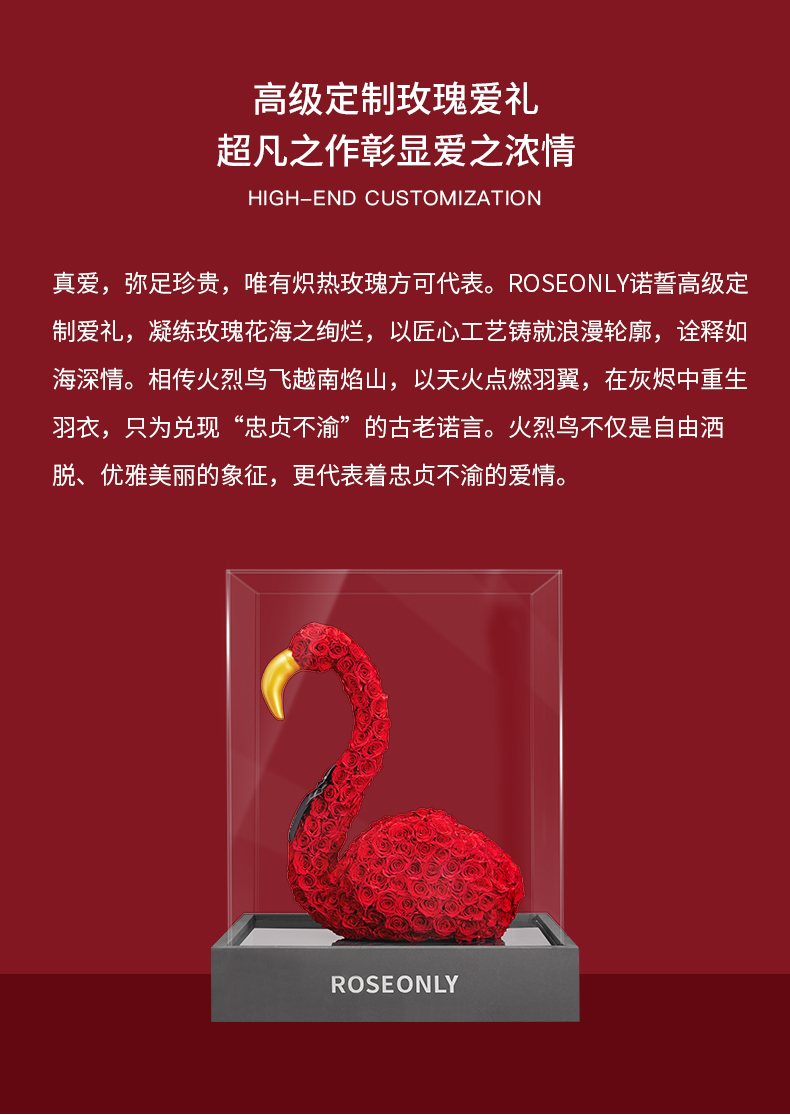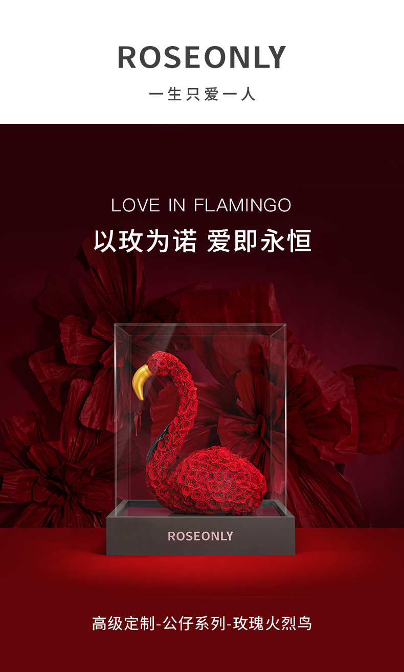 【新品爱礼】ROSEONLY诺誓 高端定制 永生玫瑰 公仔系列 玫瑰火烈鸟 送朋友 情人节礼物