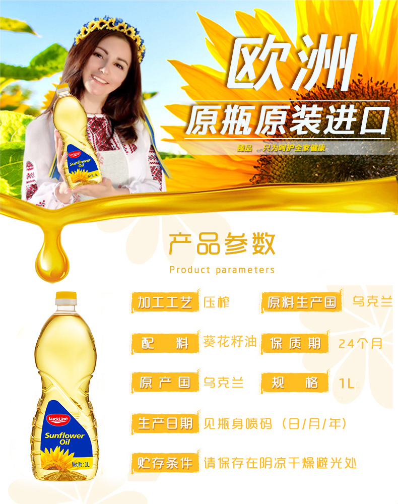 洛克莱物理压榨葵花籽油乌克兰原瓶原装进口食用油1L