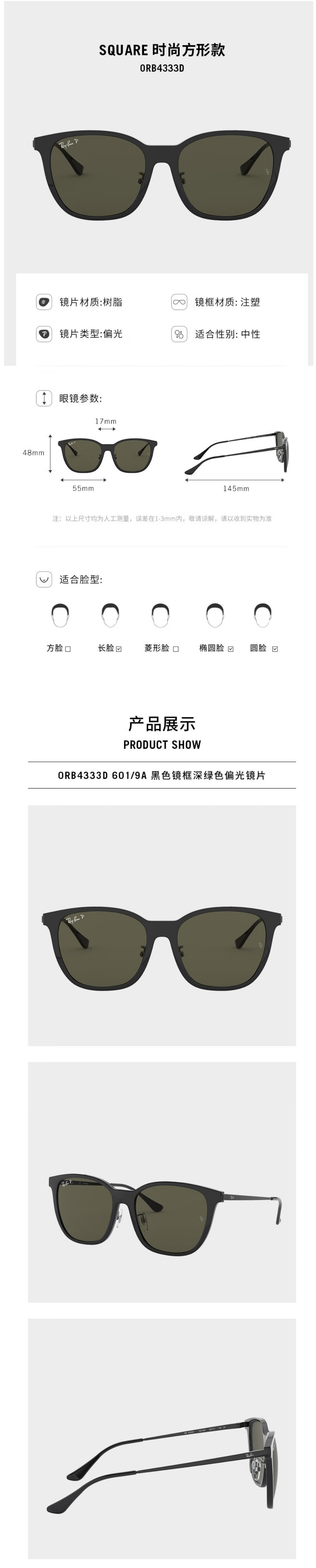 雷朋Ray-ban太阳镜0RB4333D-TC