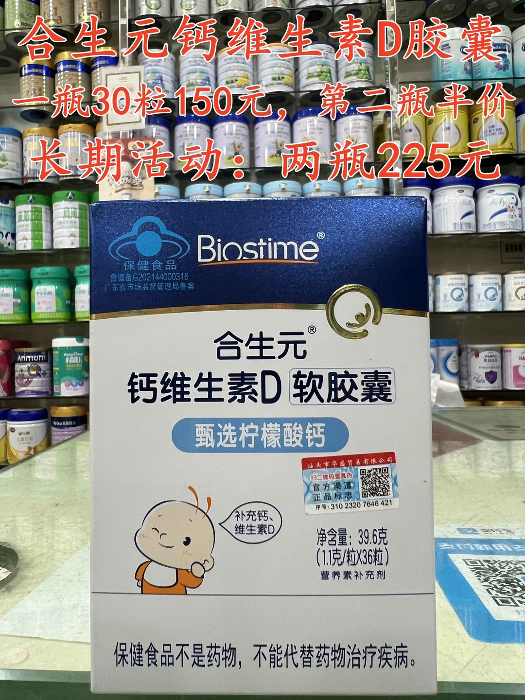【买一瓶第二瓶半价】合生元钙维生素D胶囊,一瓶36粒150元